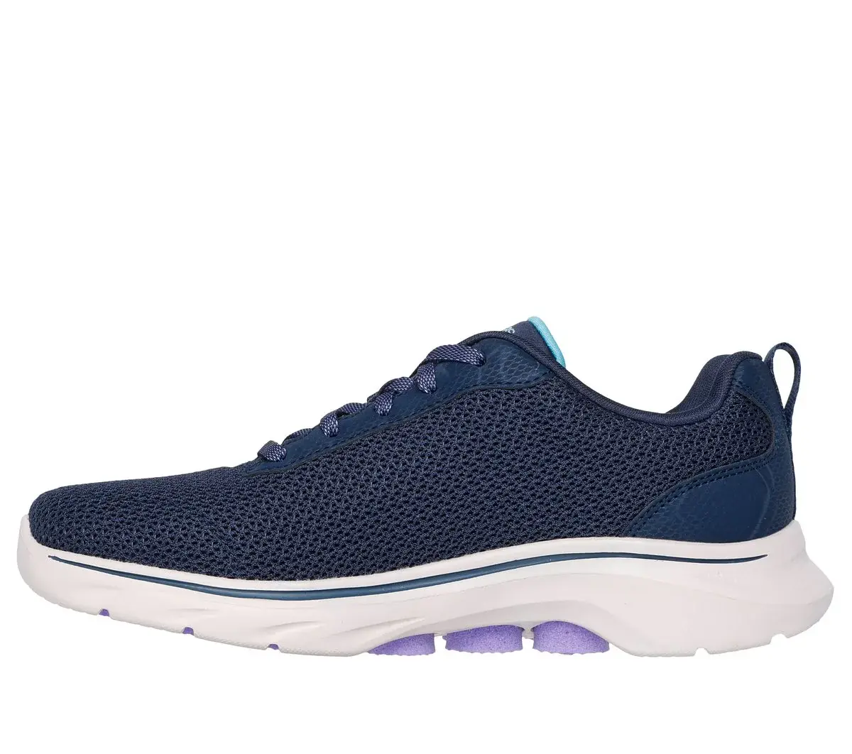 Walk in easy-wearing comfort with Skechers GO WALK 7™ – Kaylor. This vegan walking lace-up features an athletic mesh upper with a Skechers Air-Cooled Goga Mat™ insole, lightweight ULTRA GO® cushioning, and high-rebound Hyper Pillar Technology™ for added support.