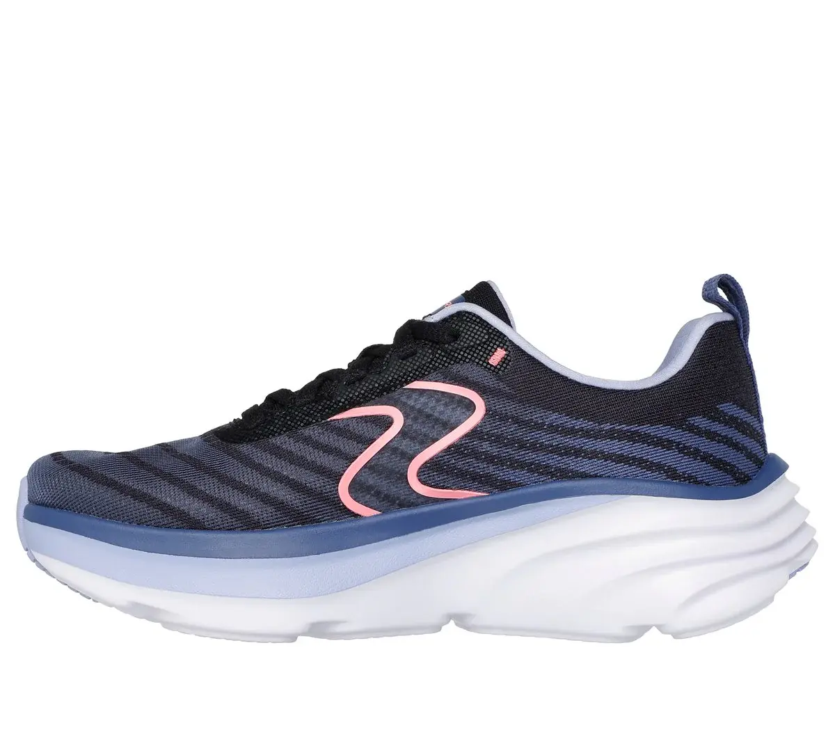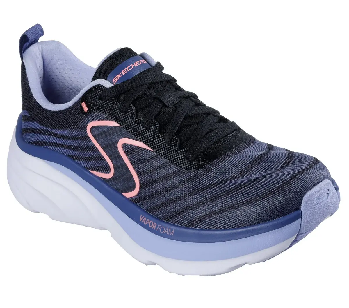 Get the lightest in well-cushioned sporty comfort wearing Skechers Relaxed Fit®: D’Lux Vapor – Cool Breeze. This breathable vegan lace-up features a striped monomesh upper with a lightweight Vapor Foam™ midsole, a Skechers Air-Cooled Memory Foam® insole, and is machine washable.