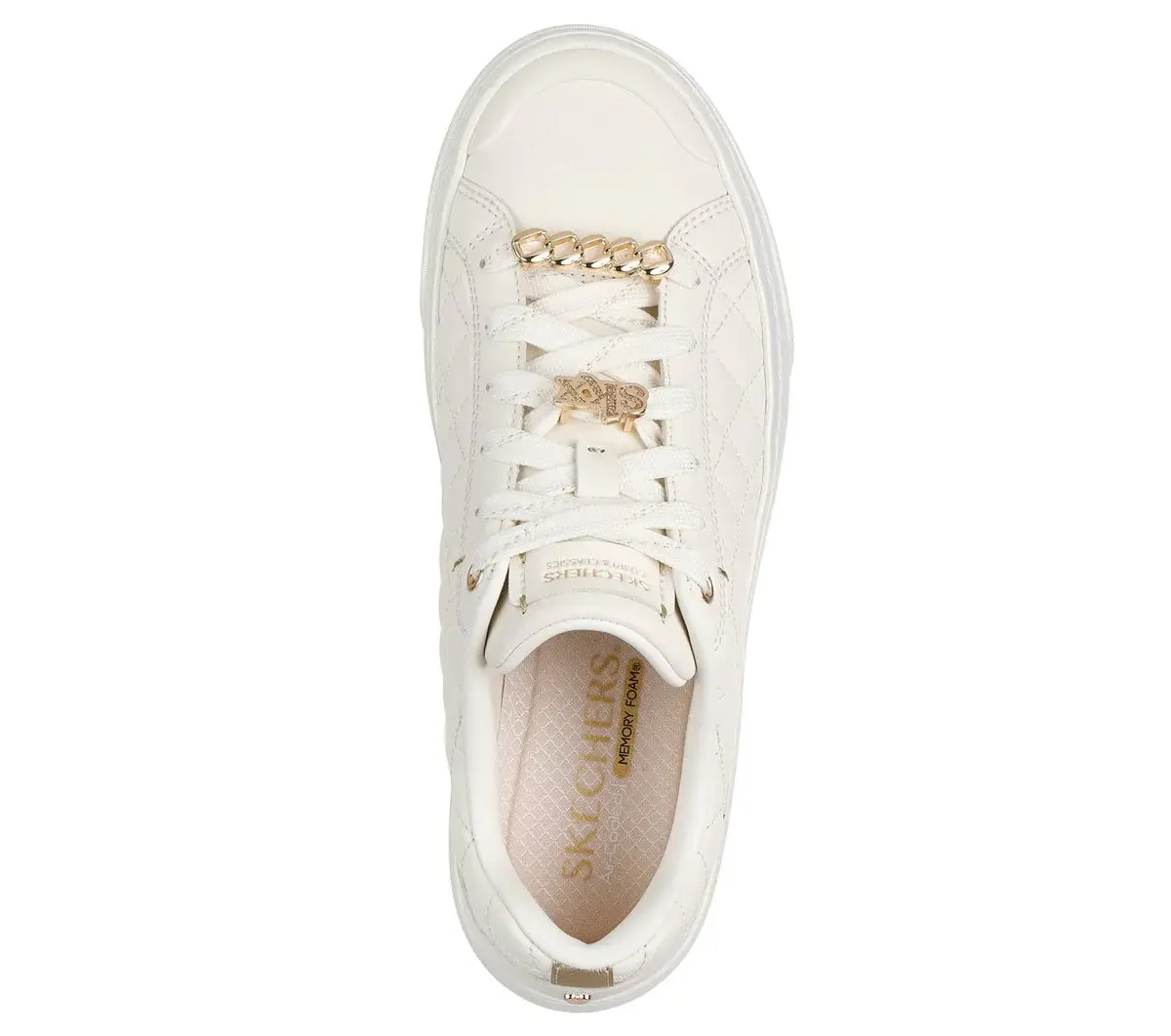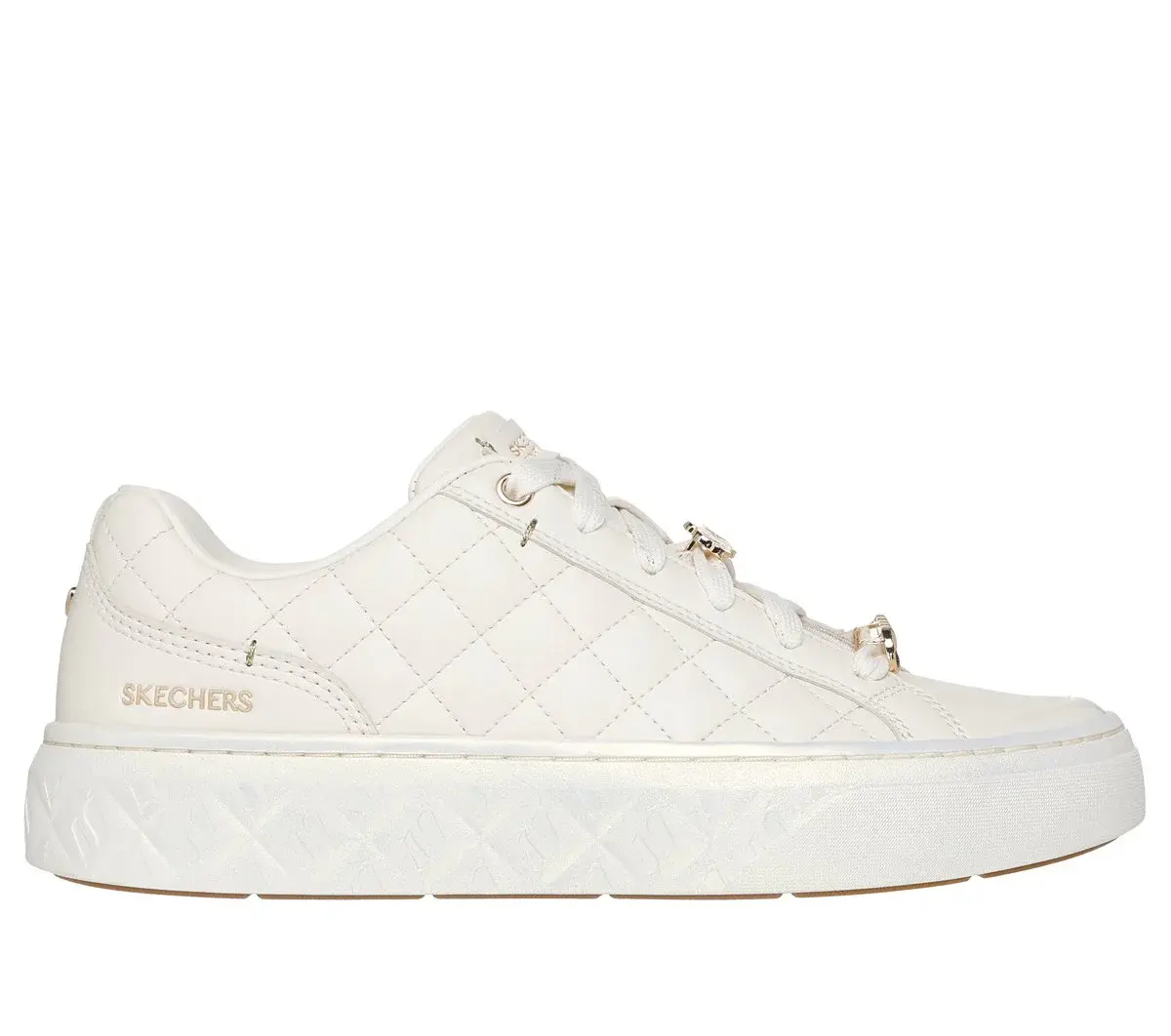 Turn up the style and the comfort wearing Skechers Rubie – Quilted Love. This fashion court lace-up features a quilted duraleather upper with removable lace charms and our signature Air-Cooled Memory Foam® insole.