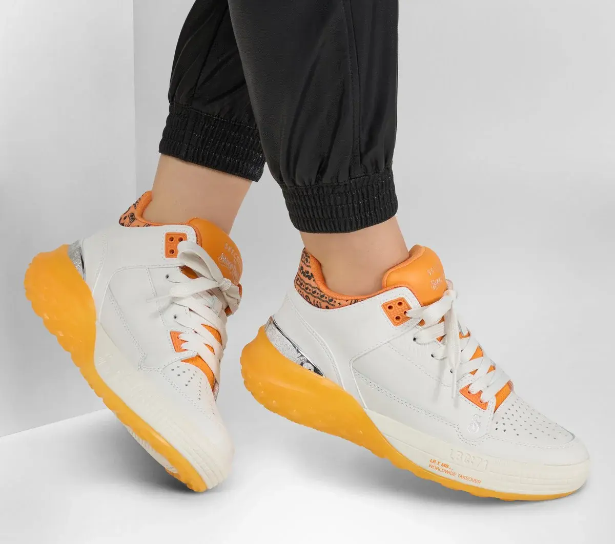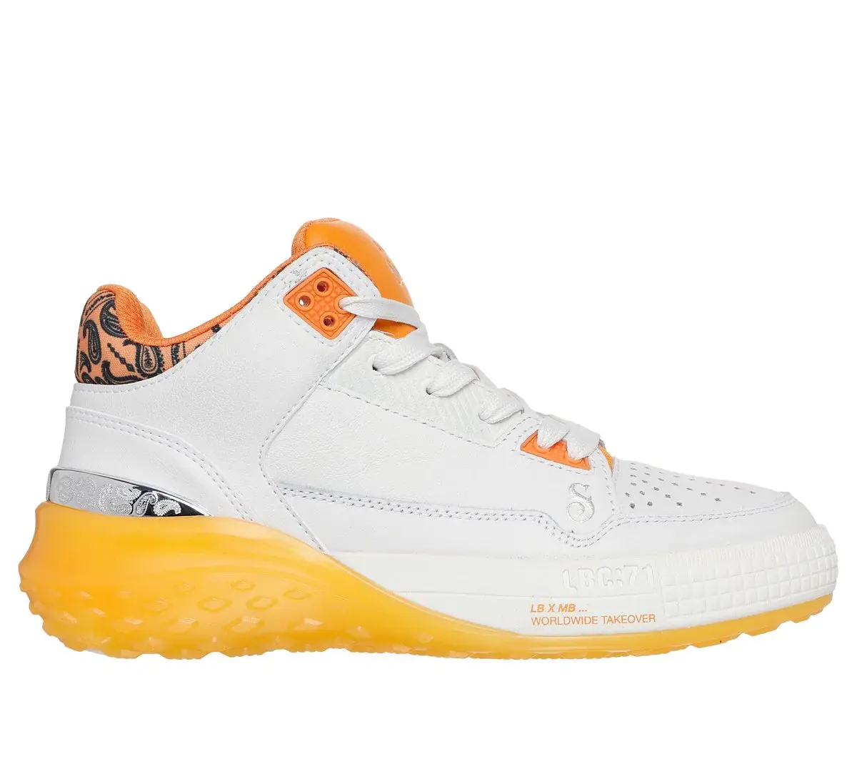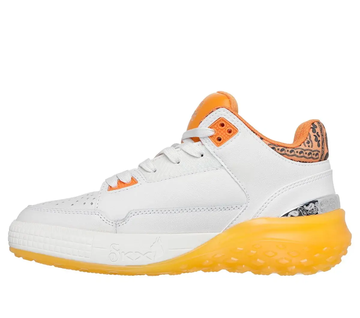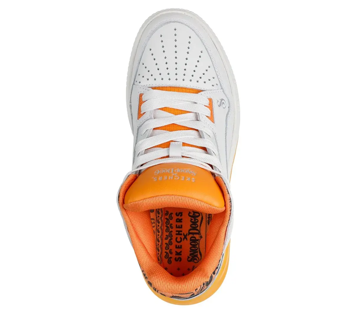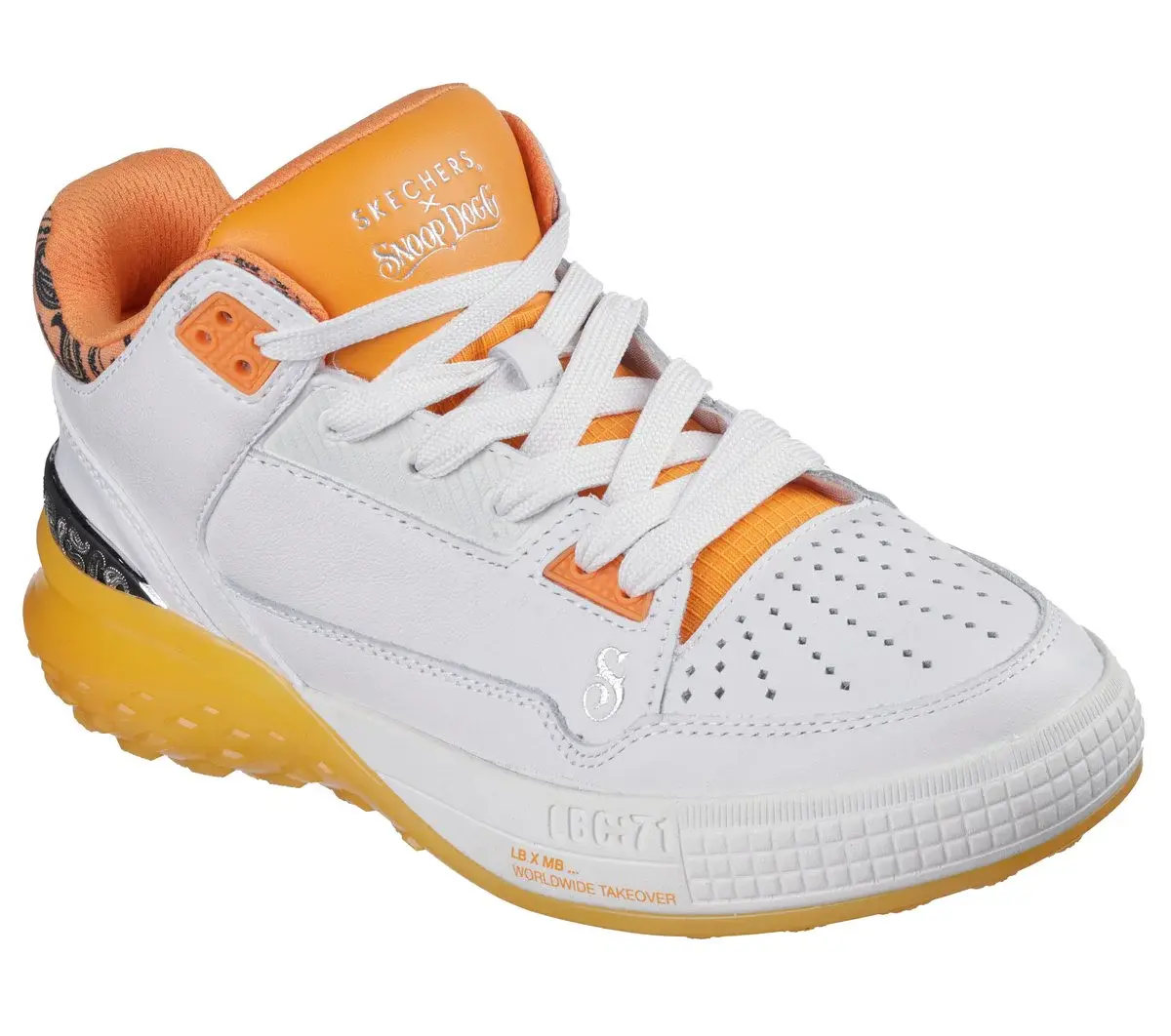 Dropping like it’s hot: Skechers x Snoop Dogg: Sizzle – Buckets OG. This fly and fresh mid-top court style is as unique as the D-O-Double G himself. Featuring a smooth and perforated premium leather upper with paisley print collar detail, metallic heel trim, and an oh-so-cushy Skechers Air-Cooled Memory Foam® insole.