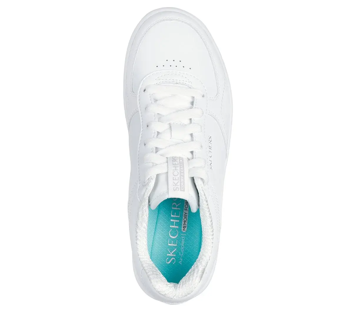 Casual modern style and comfort combine in Skechers Sport Court 2.0 – Core Essential. Featuring a sleek court silhouette, lace-up duraleather upper and a cushioned Skechers Air-Cooled Memory Foam® insole.