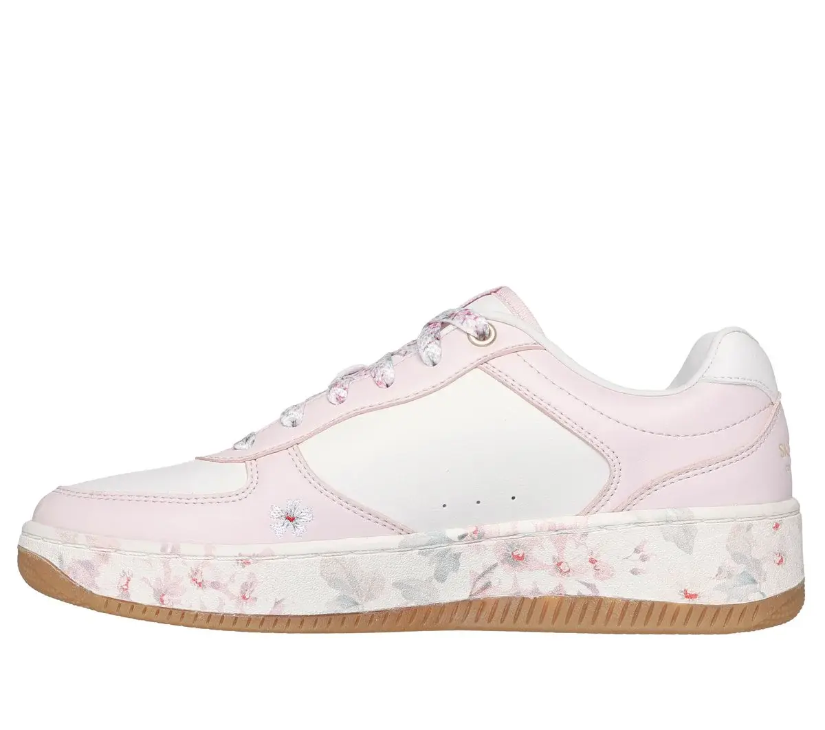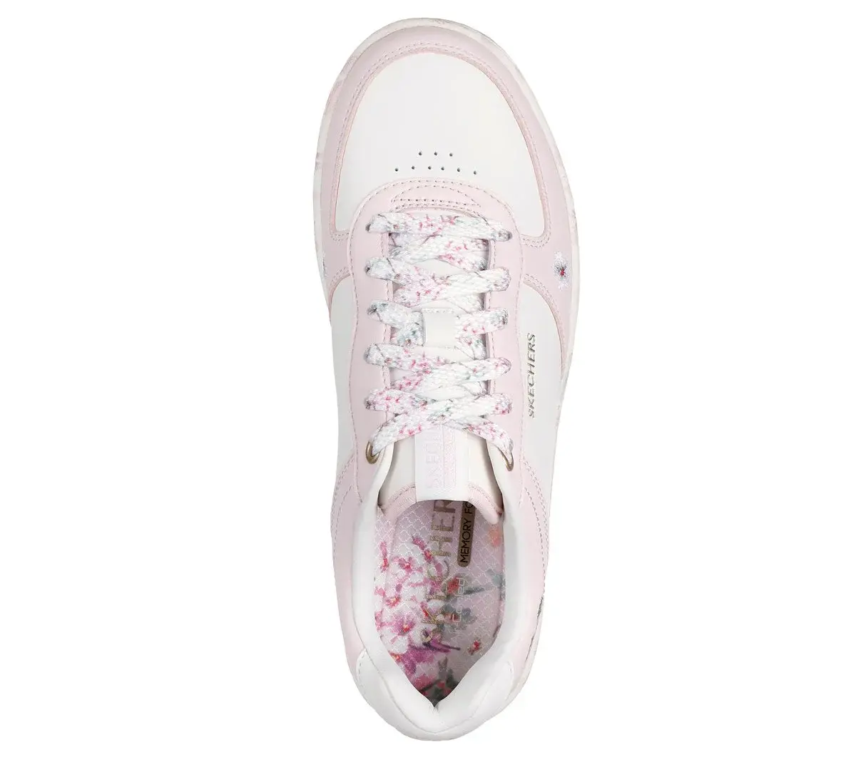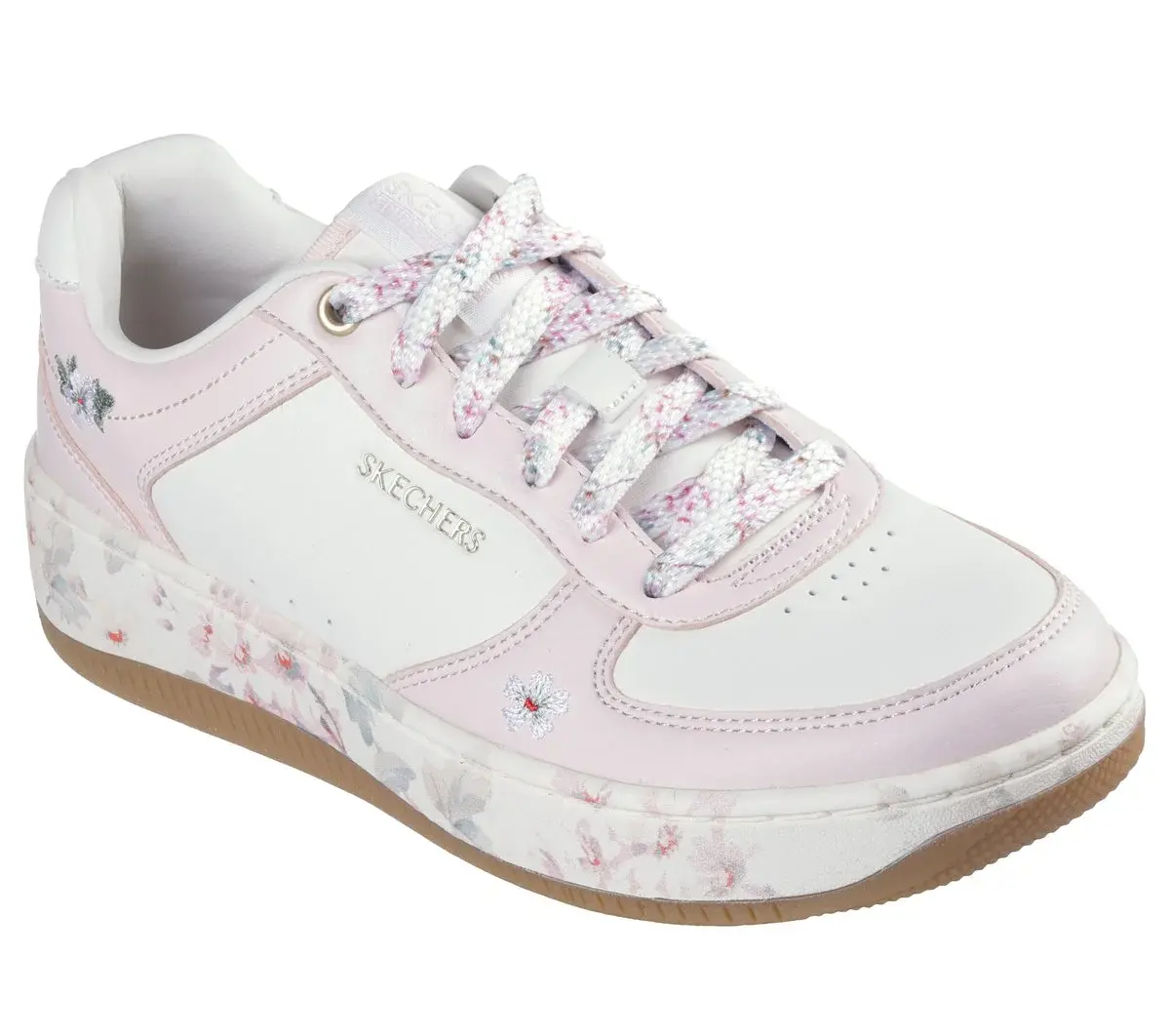 Watch your style bloom with Skechers Sport Court 2.0 – Floral Frenzy. This lace-up court style features a duraleather upper, floral print along the midsole, and a cushioned Skechers Air-Cooled Memory Foam® insole.