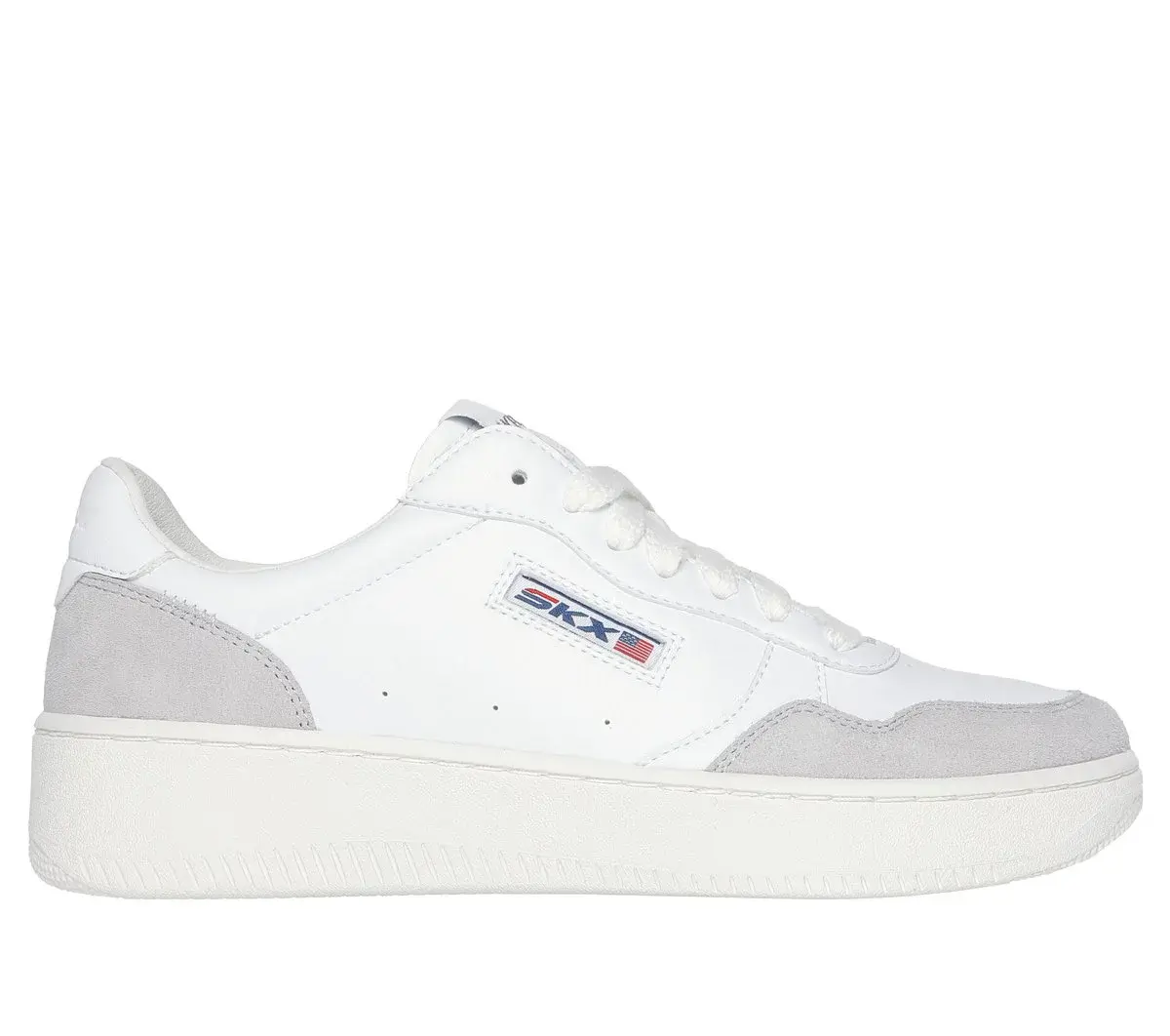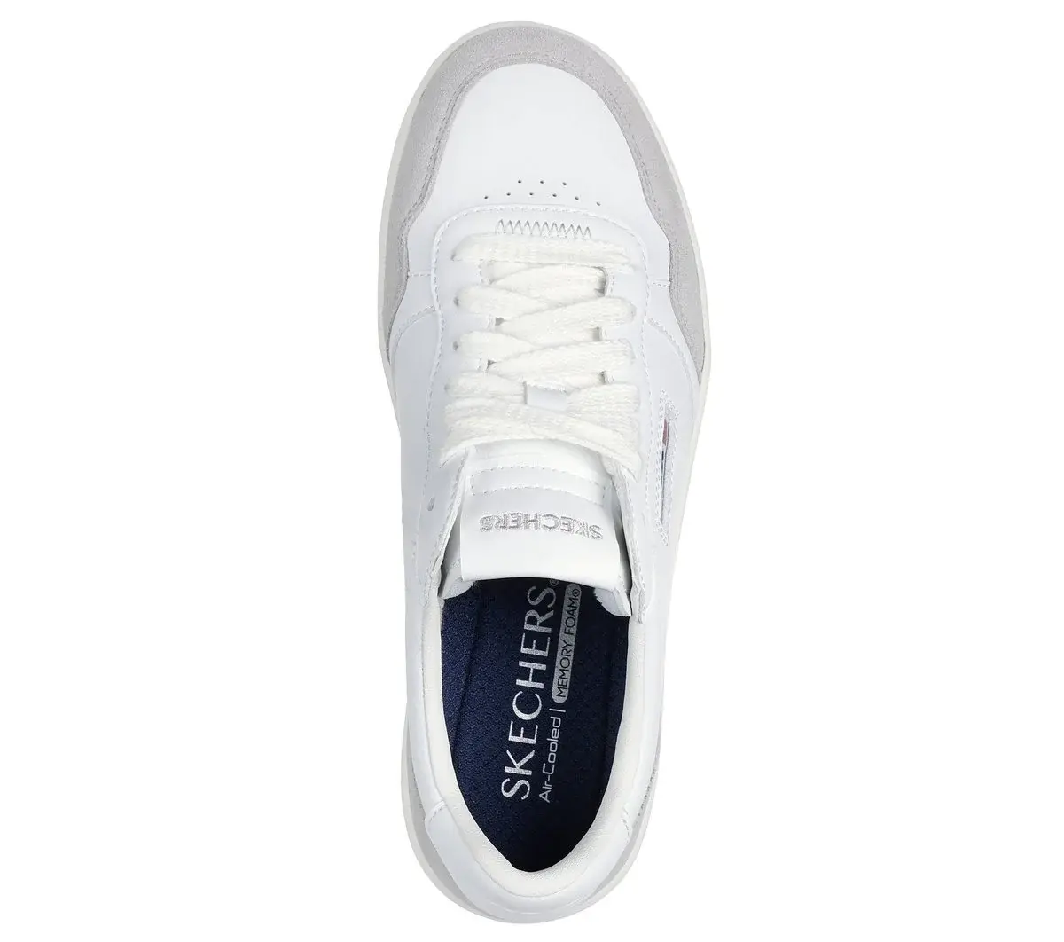 Casual modern style and comfort combine in Skechers Sport Court 2.0 – On The Block. Featuring a sleek court silhouette, this lace-up boasts a duraleather and suede upper, complemented by a cushioned Skechers Air-Cooled Memory Foam® insole.