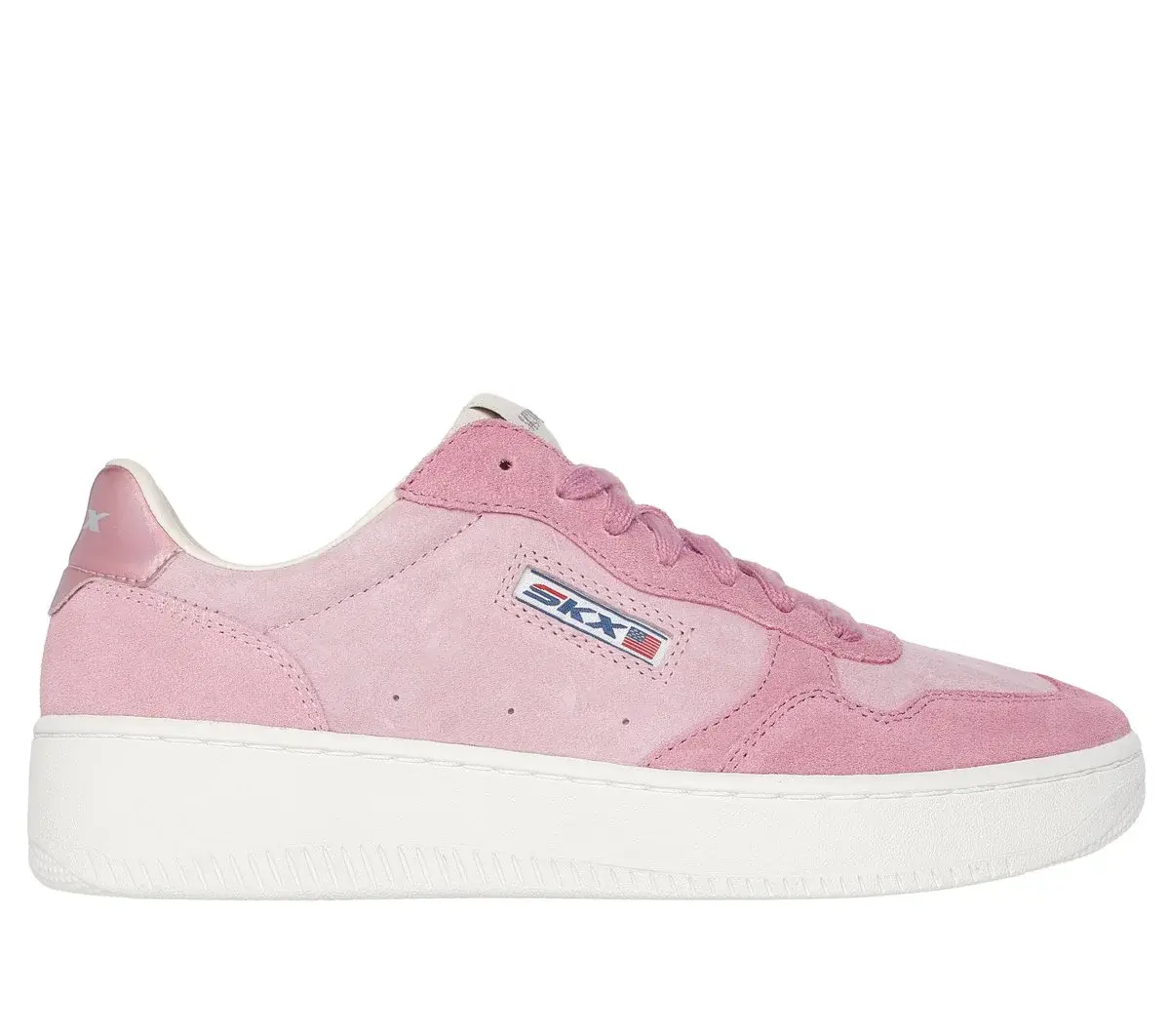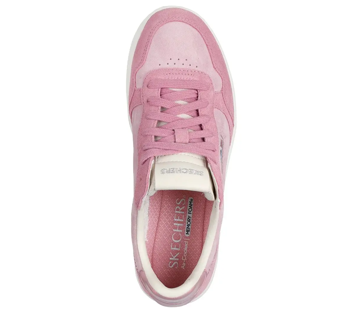 Casual modern style and comfort combine in Skechers Sport Court 2.0 – Smooth Sparkle. Featuring a sleek court silhouette, lace-up pig suede upper with metallic trim and a cushioned Skechers Air-Cooled Memory Foam® insole.