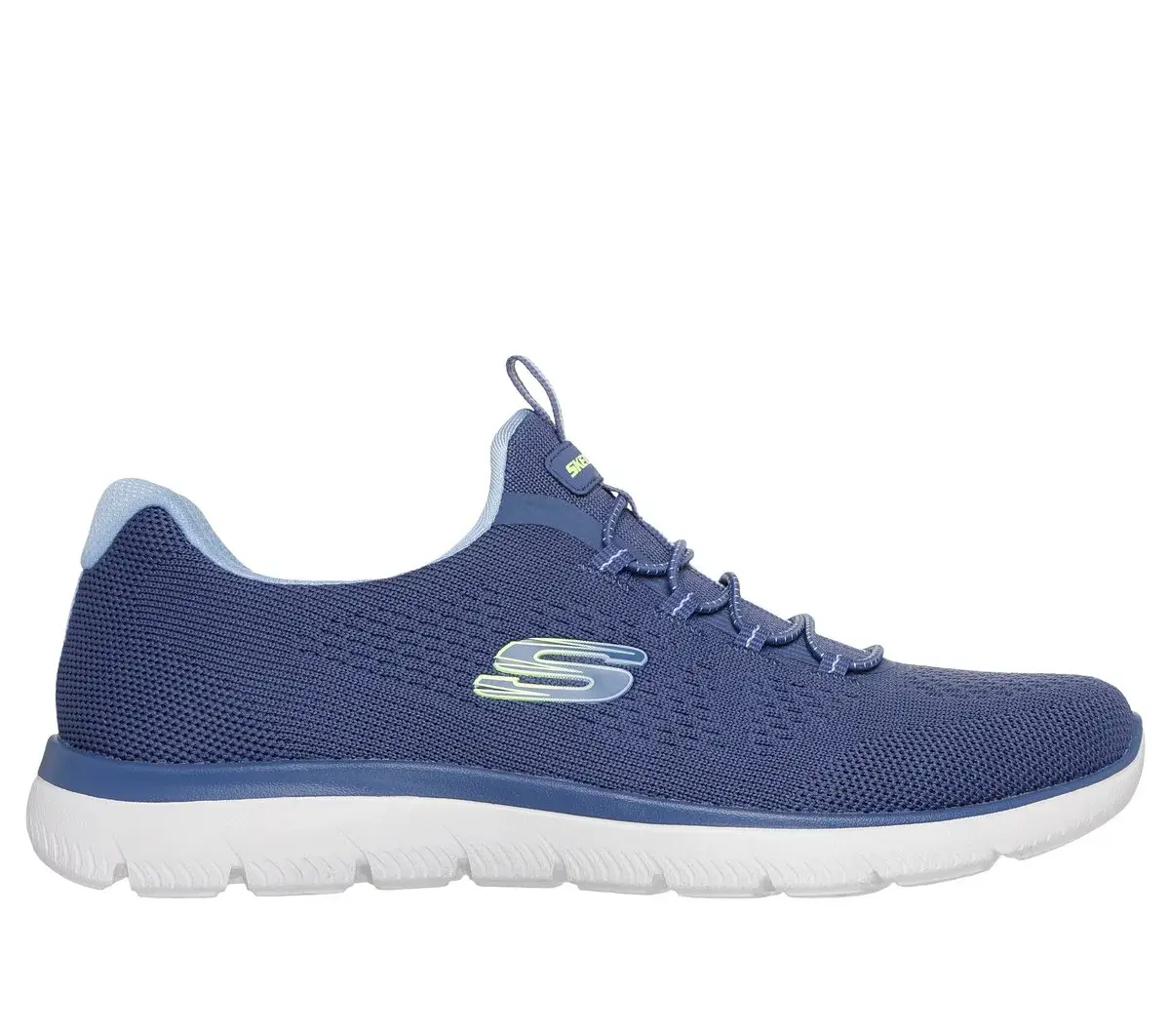 Reach the height of comfort and athletic style with Skechers Summits – Radiant Flow. This easy-on vegan design features an engineered knit upper with a stretch-lace front and a Skechers Memory Foam™ cushioned comfort insole.
