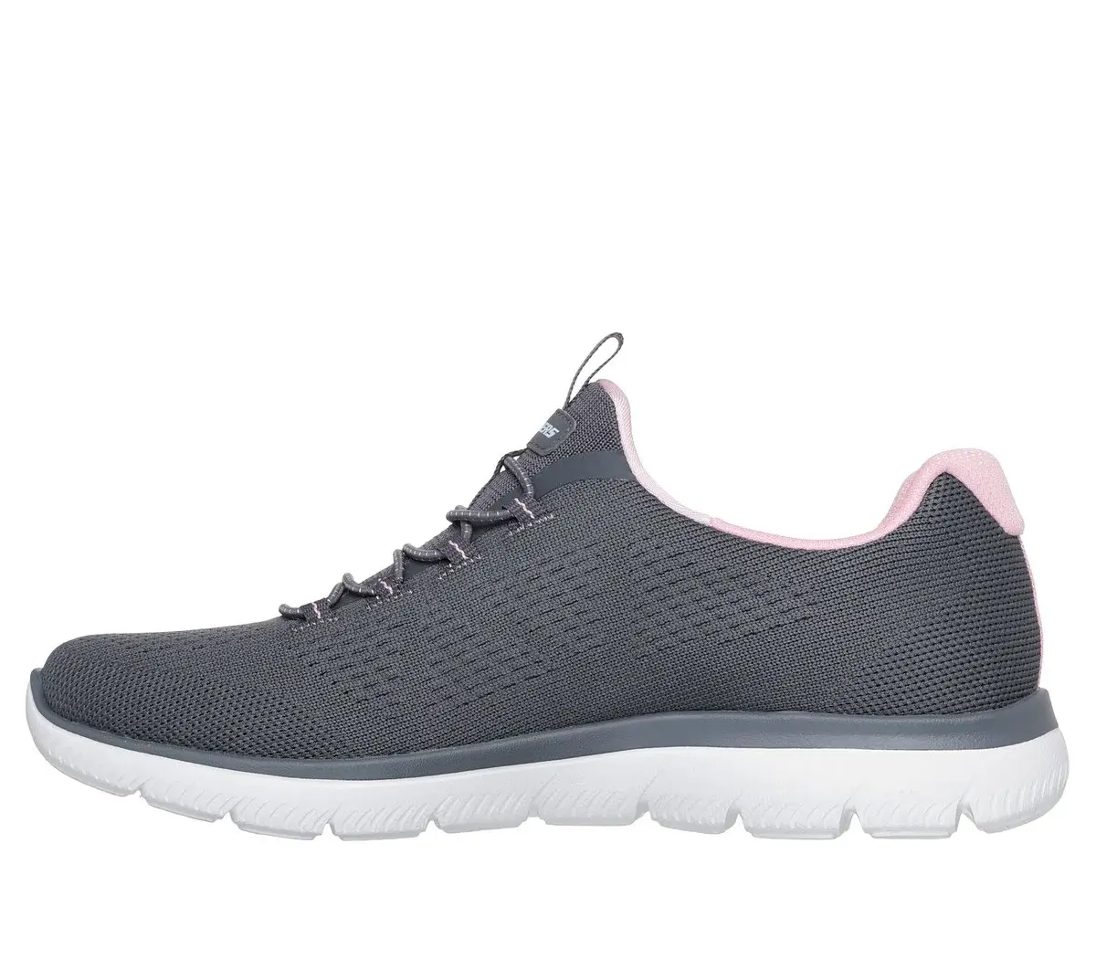 Reach the height of comfort and athletic style with Skechers Summits – Radiant Flow. This easy-on vegan design features an engineered knit upper with a stretch-lace front and a Skechers Memory Foam™ cushioned comfort insole.