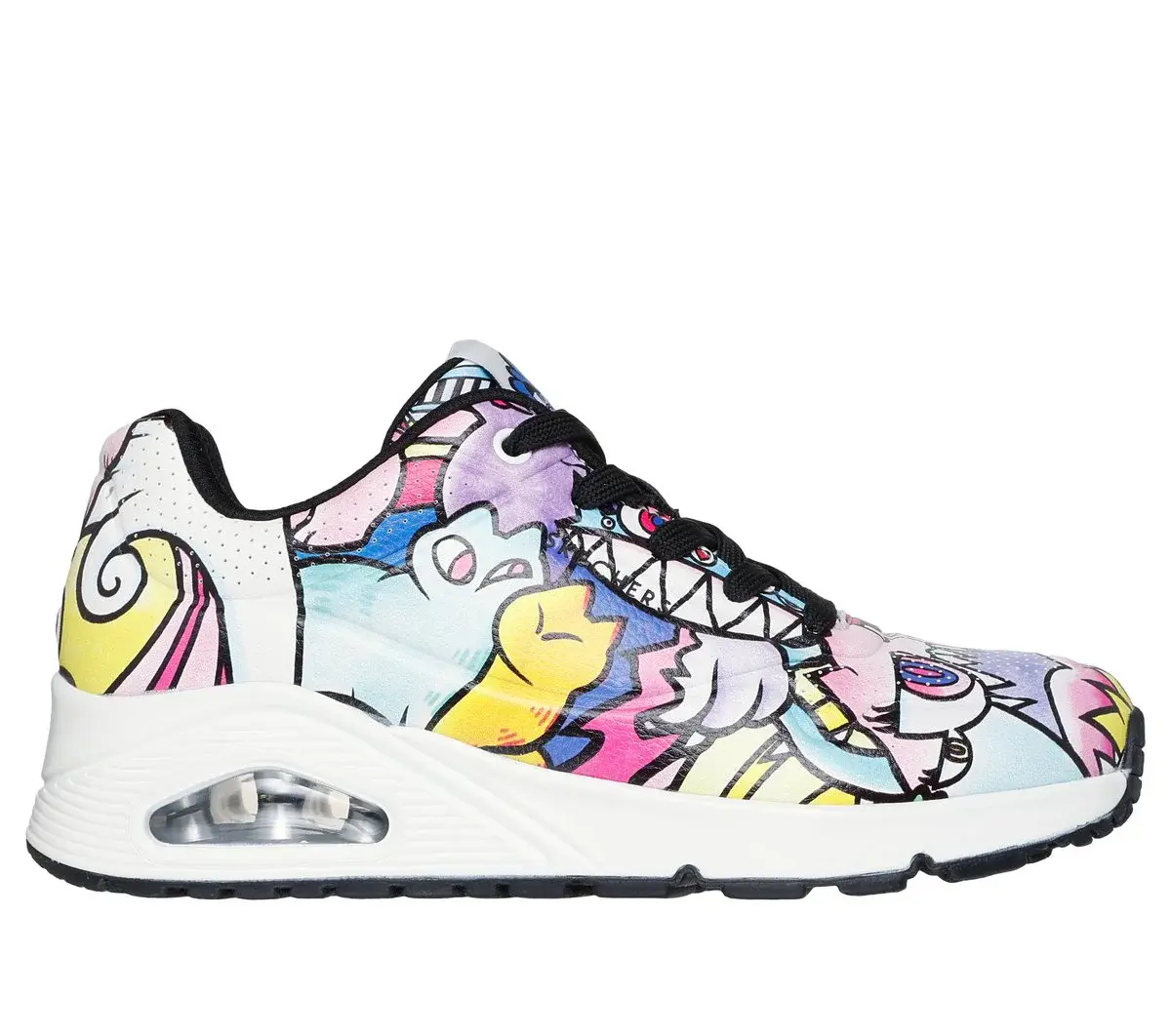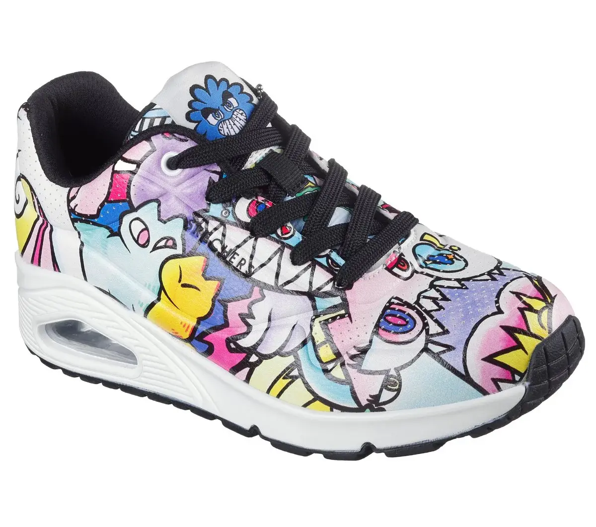 Get drawn into the imaginative world of Skechers Street™ x Vexx with our latest collaboration! Vexx has made Skechers his personal canvas, fusing his signature ‘doodles’ seamlessly with our iconic footwear and apparel to create a collection bursting with vibrant colors and playful imagery. Drawing inspiration from the artist’s design process, the Uno – Color Doodle fashion sneaker features a synthetic durabuck upper with Vexx’s signature ‘doodles’, Skechers Air-Cooled Memory Foam® insole and a visible Skech-Air® air-cushioned midsole.