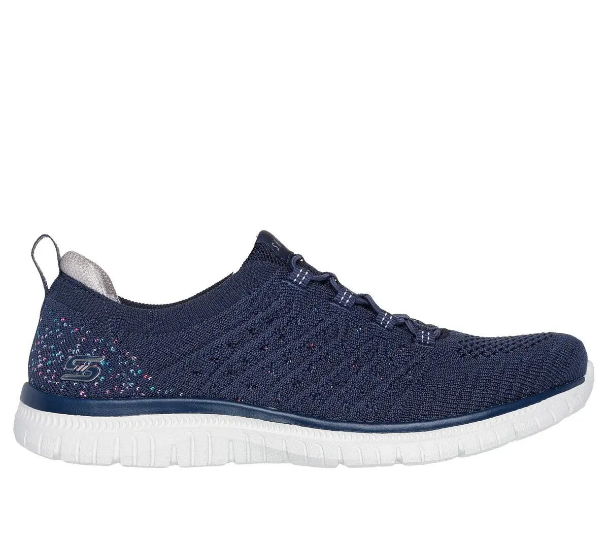 Enjoy your walks in easy-wearing comfort with Skechers Virtue – Show Runner. This sporty design features a Space Dye Knit upper with stretch laces and a cushioned Skecher Memory Foam™ insole.