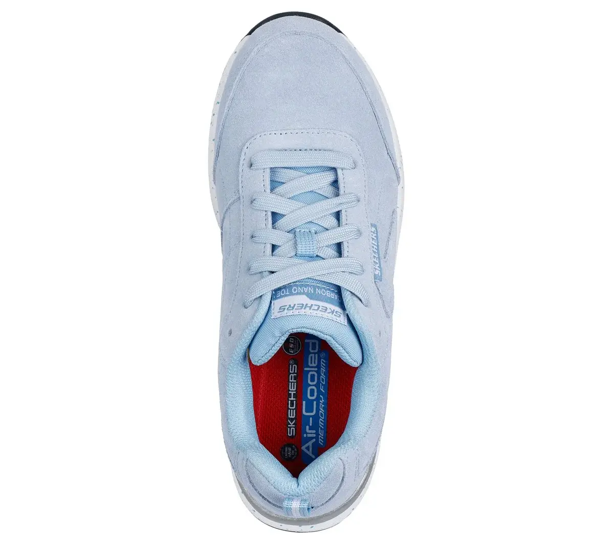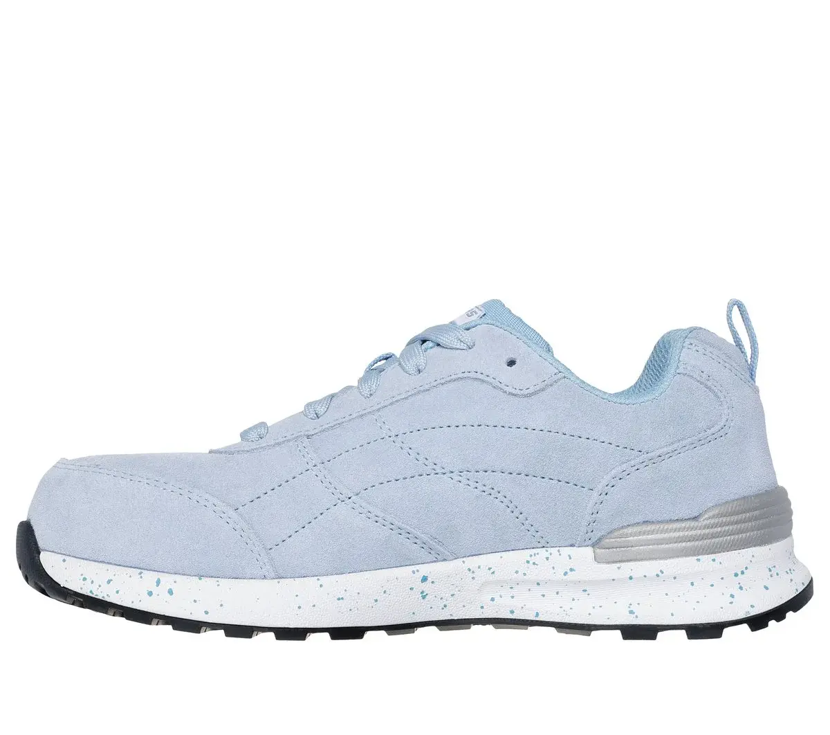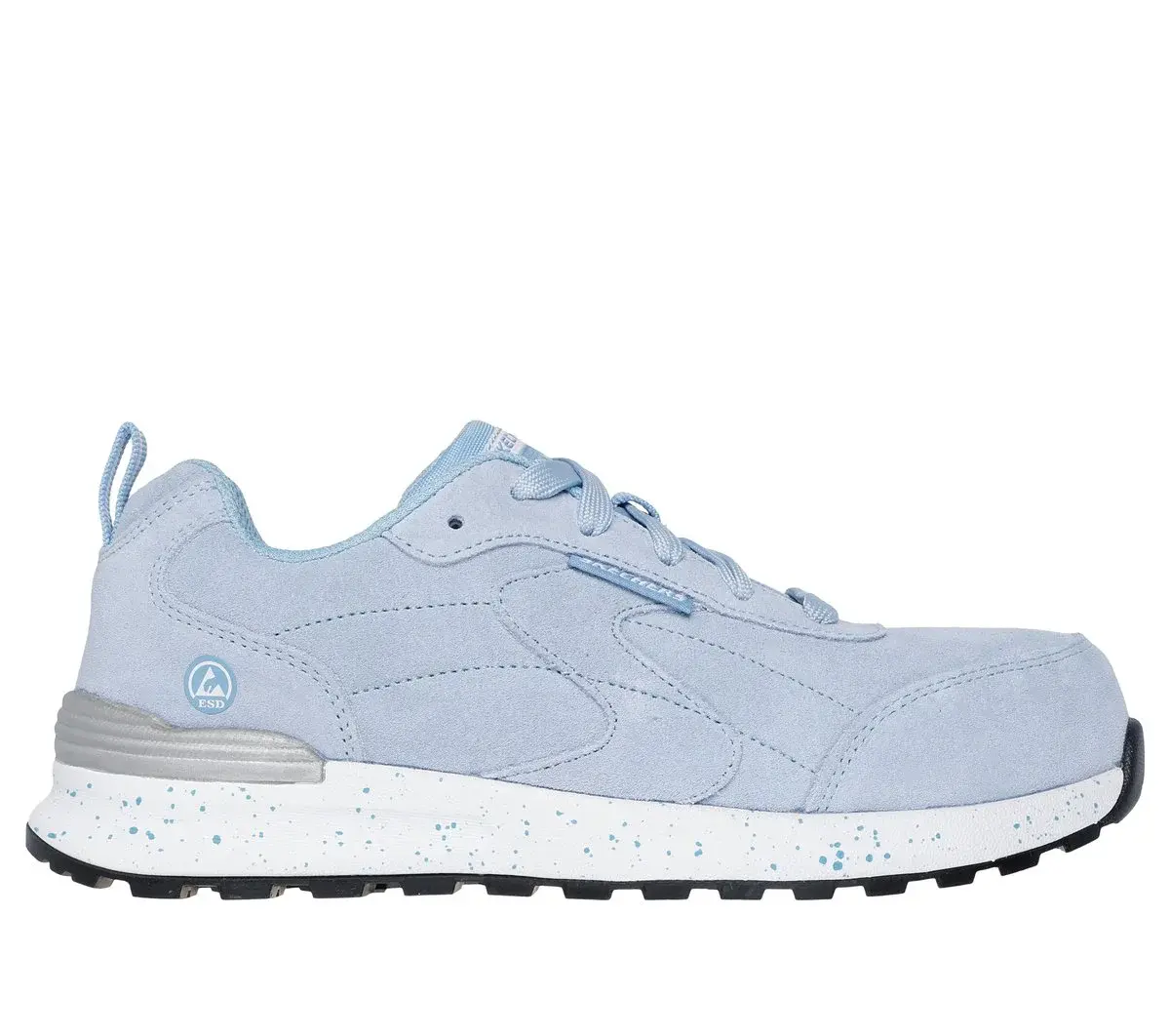 Start your shift in surefooted protective comfort with Skechers Work™: Bulklin – Haidly. This slip-resistant work sneaker features a genuine suede upper with a lace-up front, cushioned Skechers Air-Cooled Memory Foam® insole, and a non-metallic carbon nano safety toe.