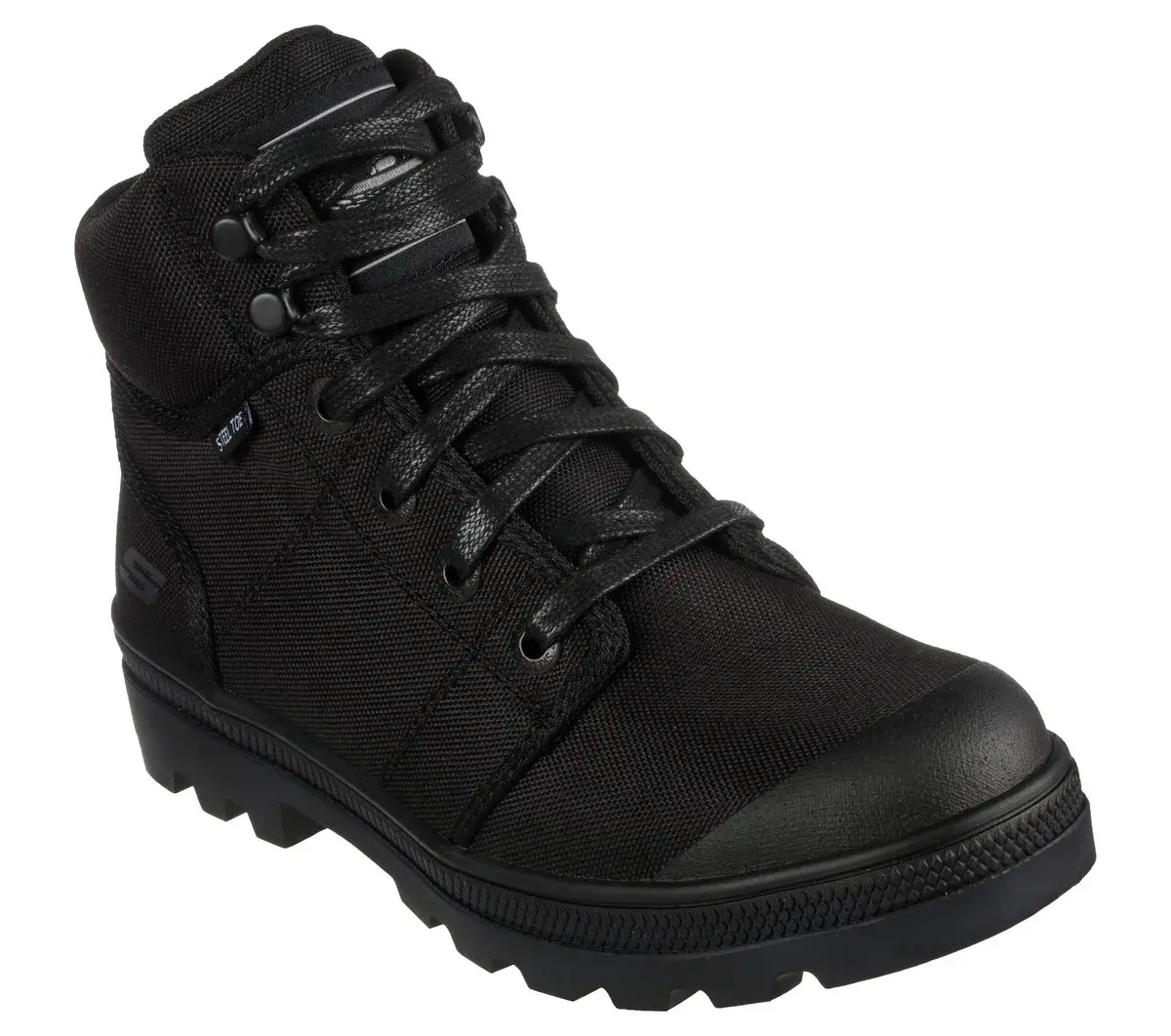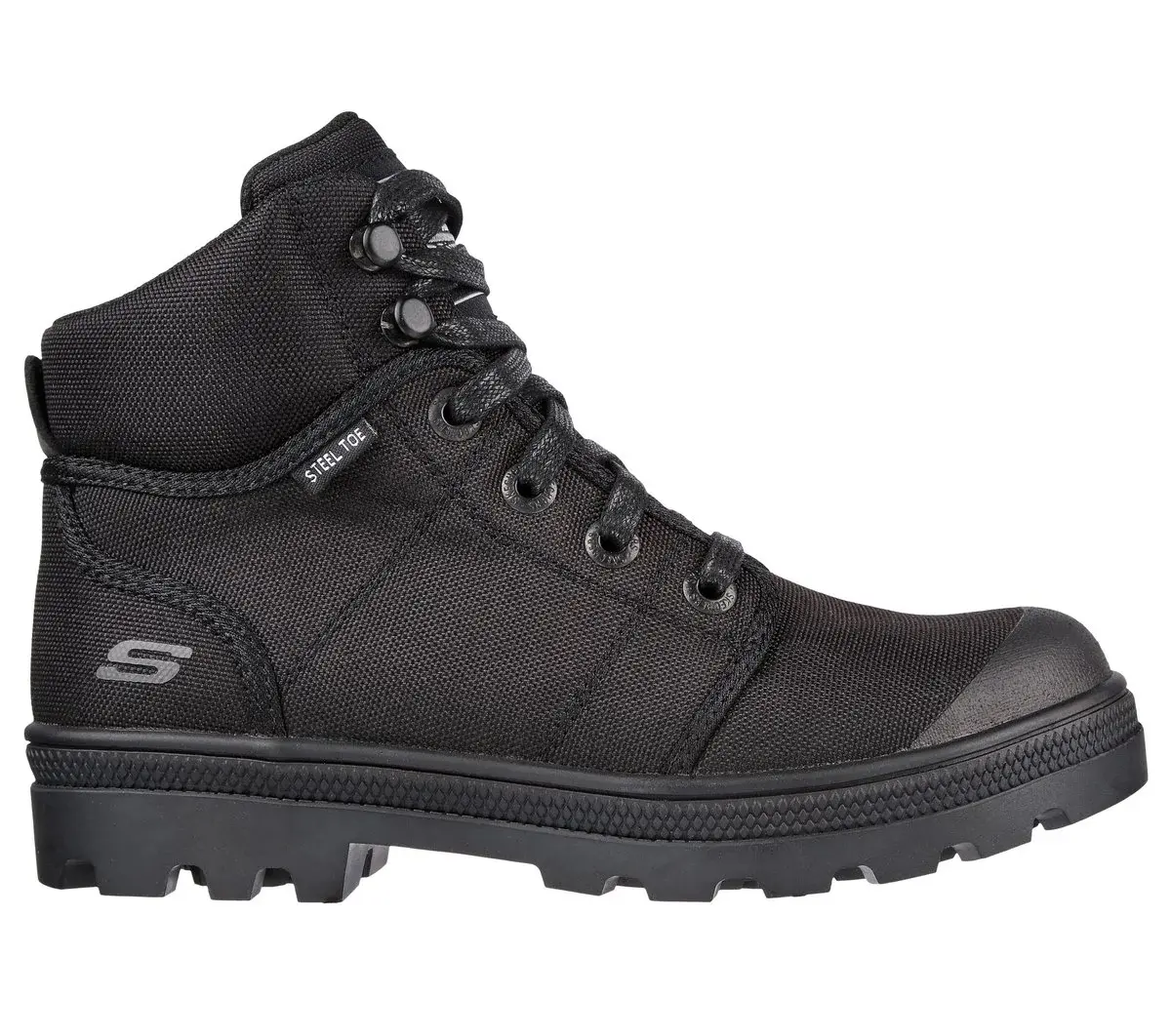 Dependable comfort and safety combine in Skechers Work: Rotund – Darragh ST. This lace-up sneaker boot features a durable canvas and synthetic upper with cushioned Skechers Air-Cooled Memory Foam® insole and a steel safety toe.