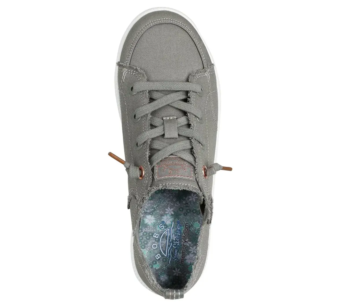 Easy-wearing classic style and comfort combine in BOBS® from Skechers® B Cute 2.0. This casual vegan design features a cotton canvas upper with frayed edge details, tied-off decorative laces, and a cushioned Skechers Memory Foam™ insole. BOBS® from Skechers® is committed to saving the lives of pets in need.