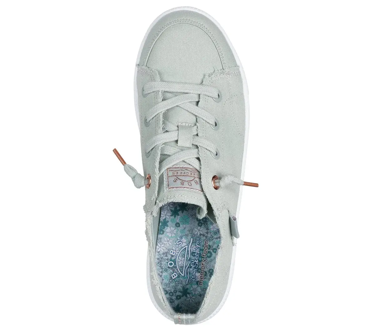 Easy-wearing classic style and comfort combine in BOBS® from Skechers® B Cute 2.0. This casual vegan design features a cotton canvas upper with frayed edge details, tied-off decorative laces, and a cushioned Skechers Memory Foam™ insole. BOBS® from Skechers® is committed to saving the lives of pets in need.