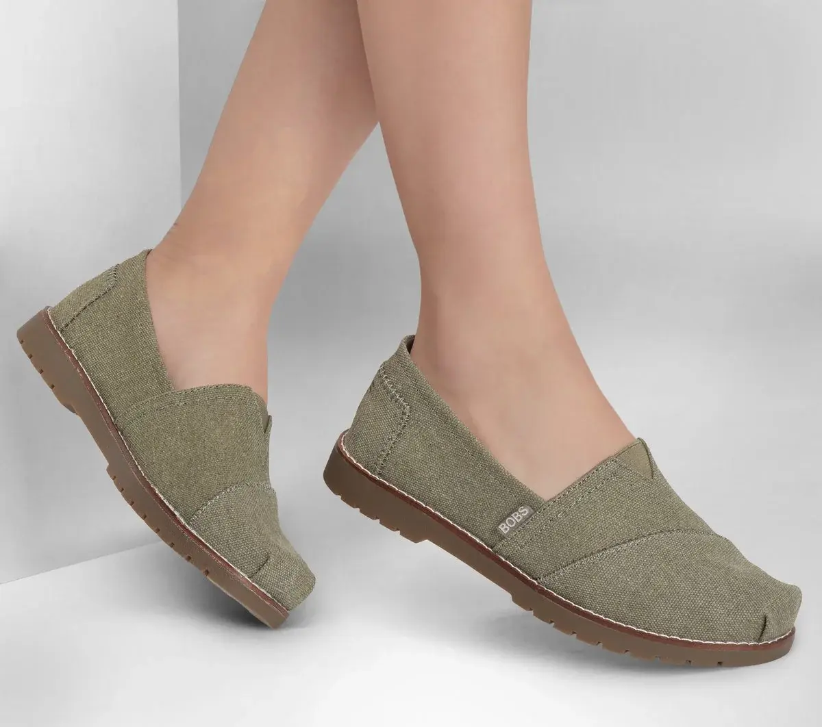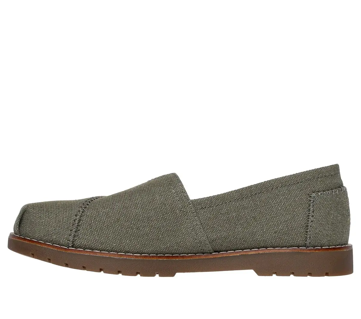 Easy-wearing classic style and comfort combine in BOBS® from Skechers® Chill Lugs – Familiar Turf. This casual vegan design features a washed canvas upper with decorative ‘patch-look’ stitching details, a mini V-notched gore instep panel, Skechers Memory Foam™ insole, plus a lightweight, lug-look flexible traction outsole. BOBS® from Skechers® is committed to saving the lives of pets in need.