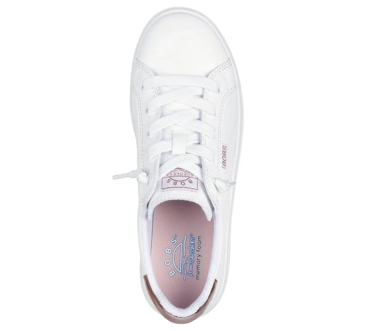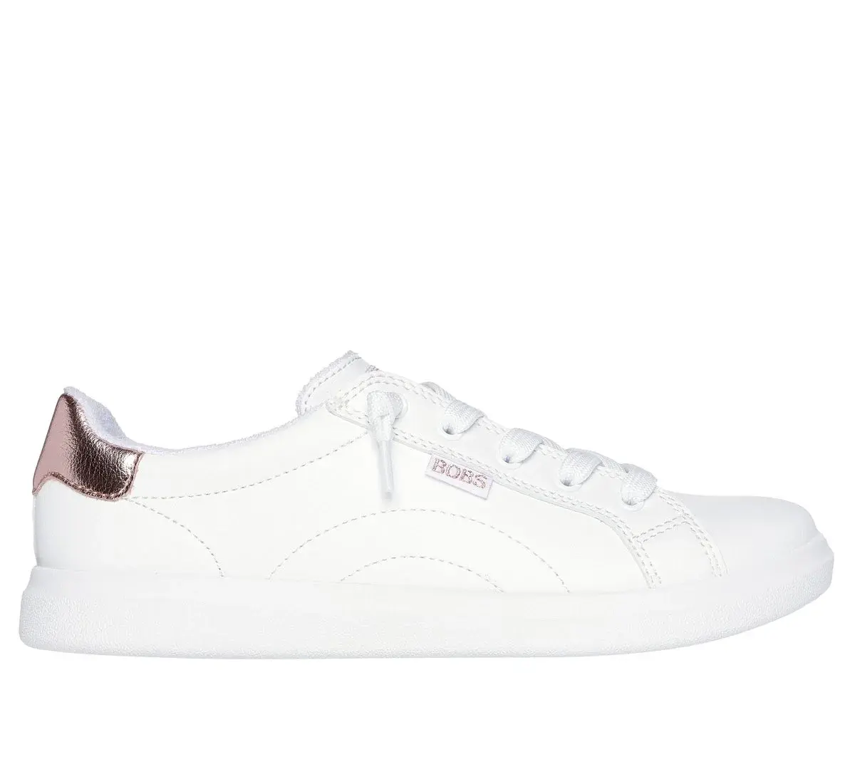 Sleek classic style and comfort combine in BOBS® from Skechers® D’Vine – Daring Charm. This casual design features a smooth faux leather upper with metallic heel collar, stitching detail, tied-off laces, and a cushioned Skechers Memory Foam™ insole. BOBS® from Skechers® is committed to saving the lives of pets in need.