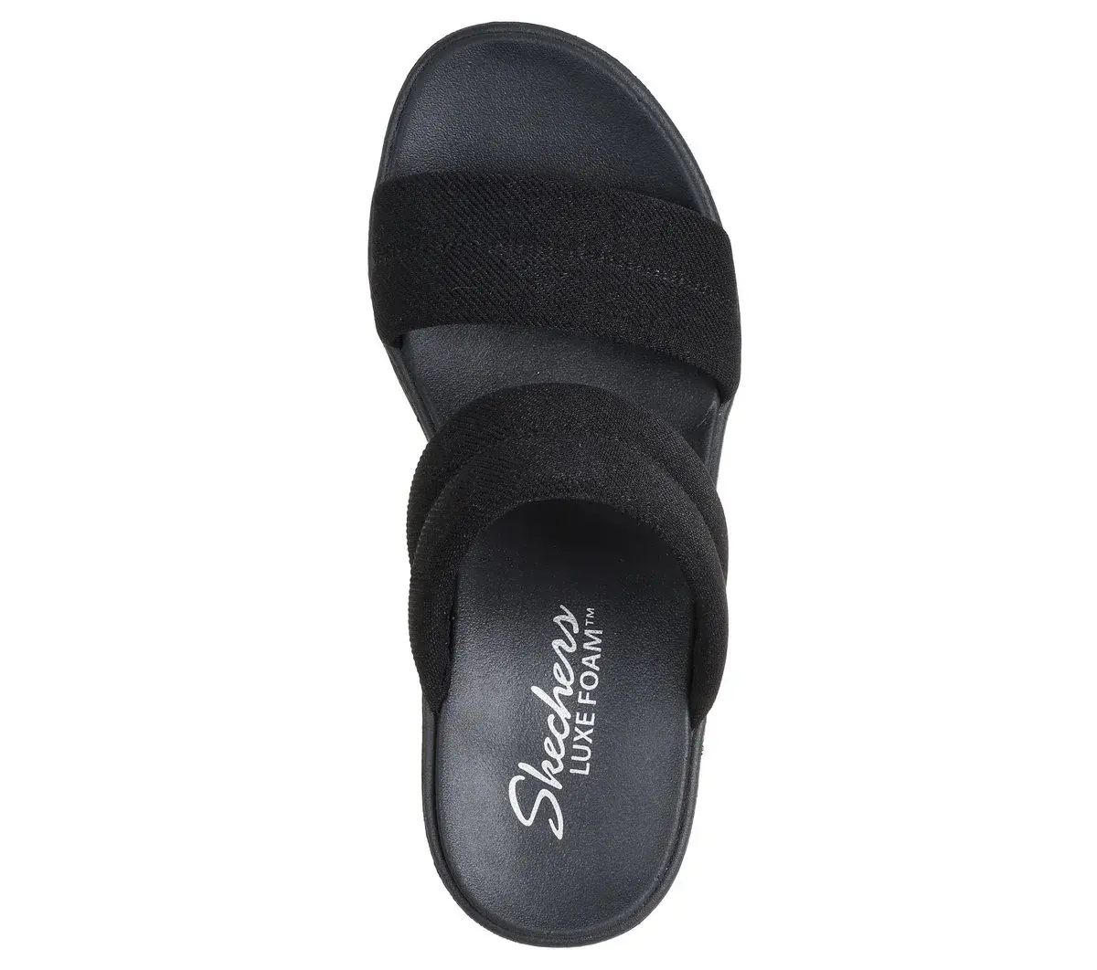 Get a fashionable boost in style and comfort with Skechers Cali® Cali Day – Staying Pretty. This vegan dual-band sandal features a lightly padded fabric upper and a Contoured Luxe Foam® cushioned comfort footbed.