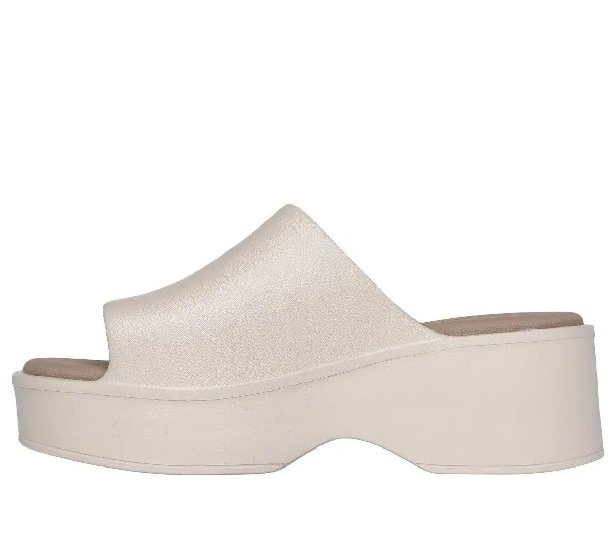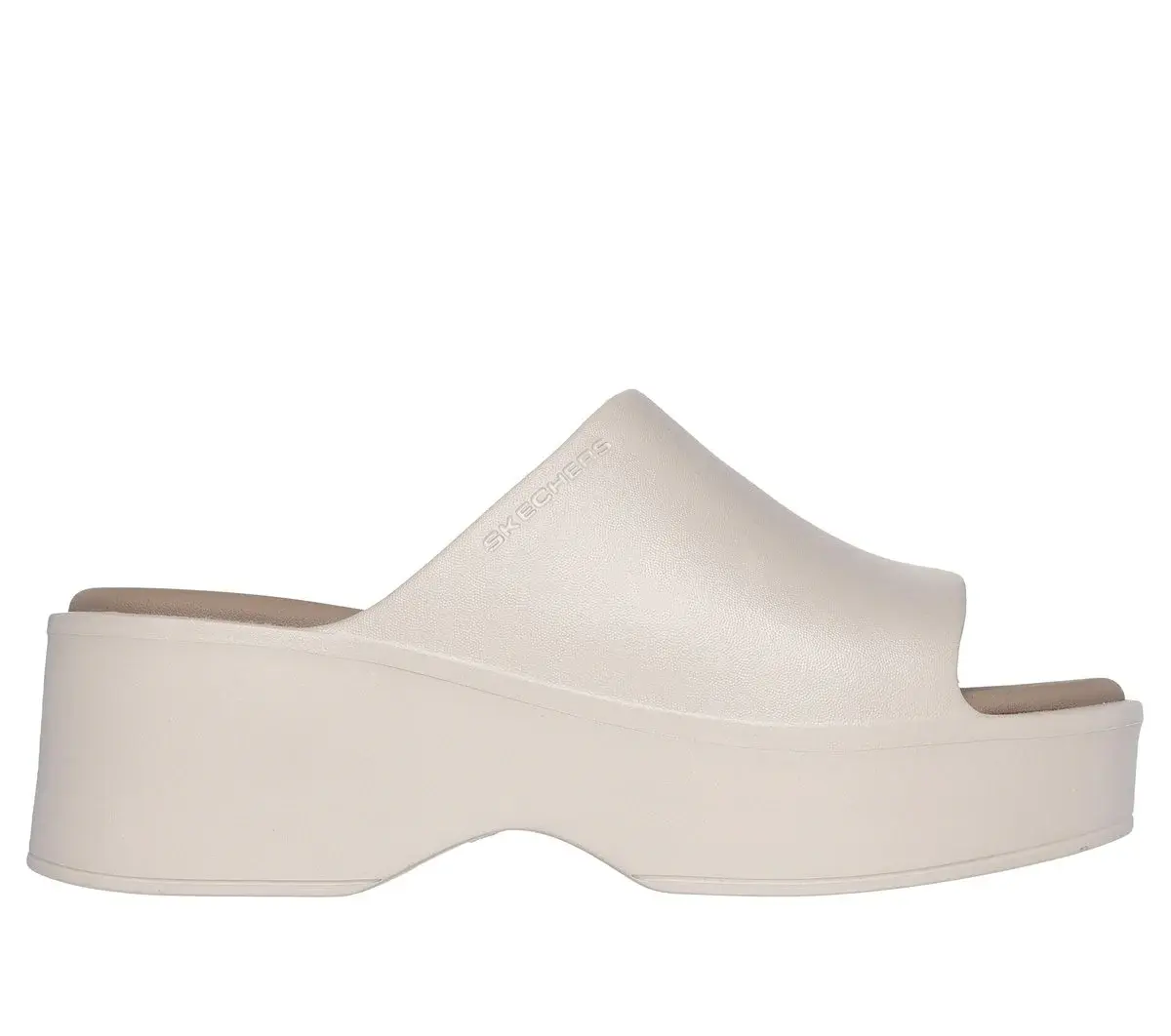 Get a fashion-worthy boost wearing Skechers Foamies®: Rave – As If. This sculpted open-toe fashion slide sandal features a flexible Foamies® EVA upper with a cushioned footbed and a platform midsole.
