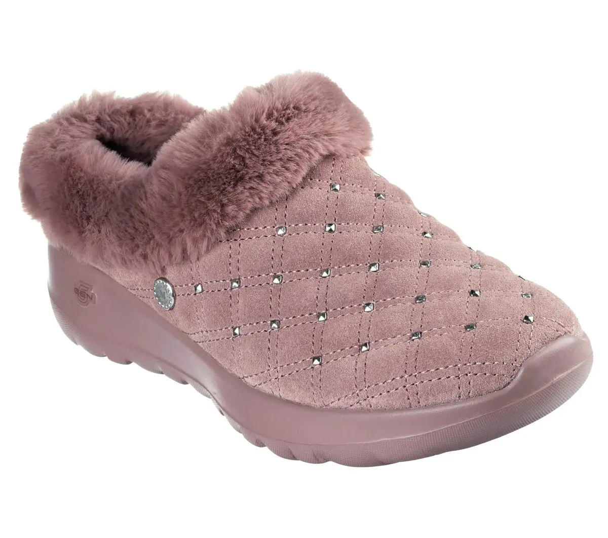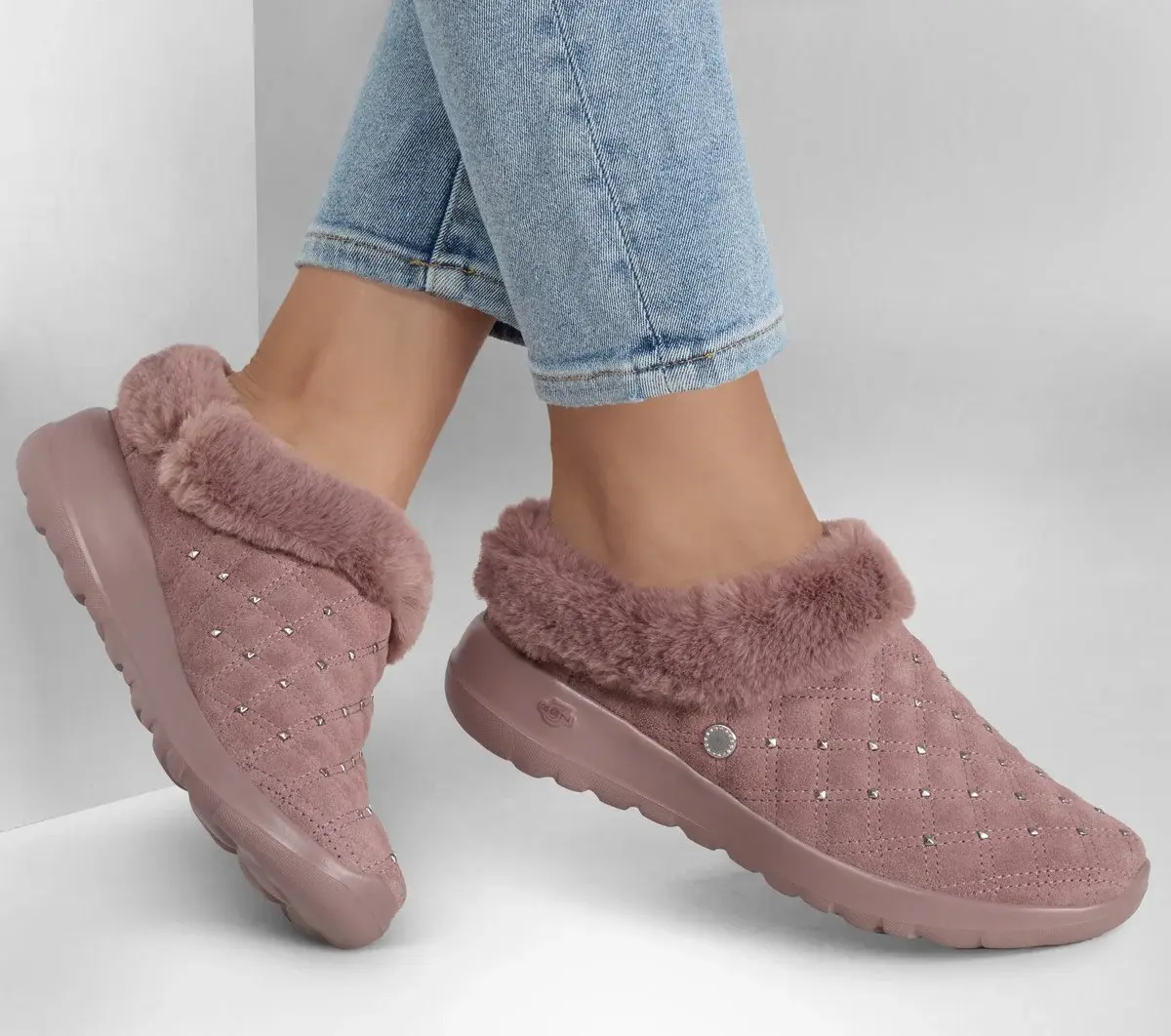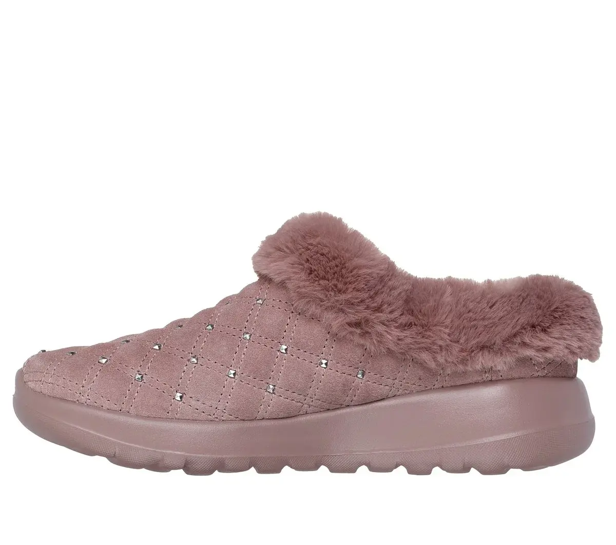 Celebrated lifestyle expert, Martha Stewart, delivers her one-of-a-kind touch to Skechers in this spirited collaboration. Lounge about in laid-back comfort wearing Martha Stewart x Skechers: On-the-GO Joy – Mallie. This casual slipper clog features a suede upper with studded embellishments, faux-fur lining, Skechers Air-Cooled Goga Mat™ insole, and lightweight 5GEN® midsole cushioning.