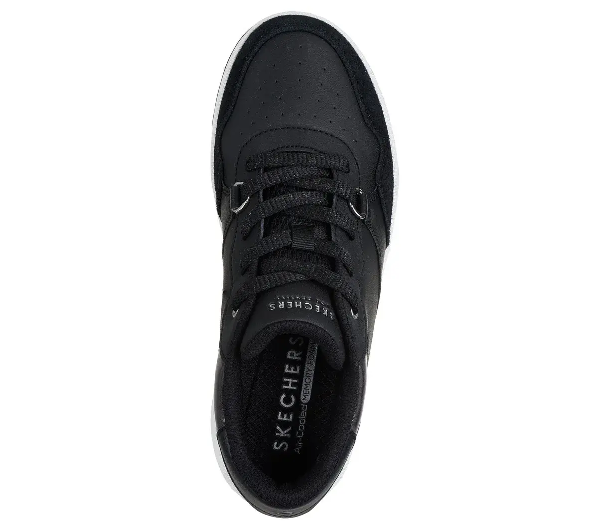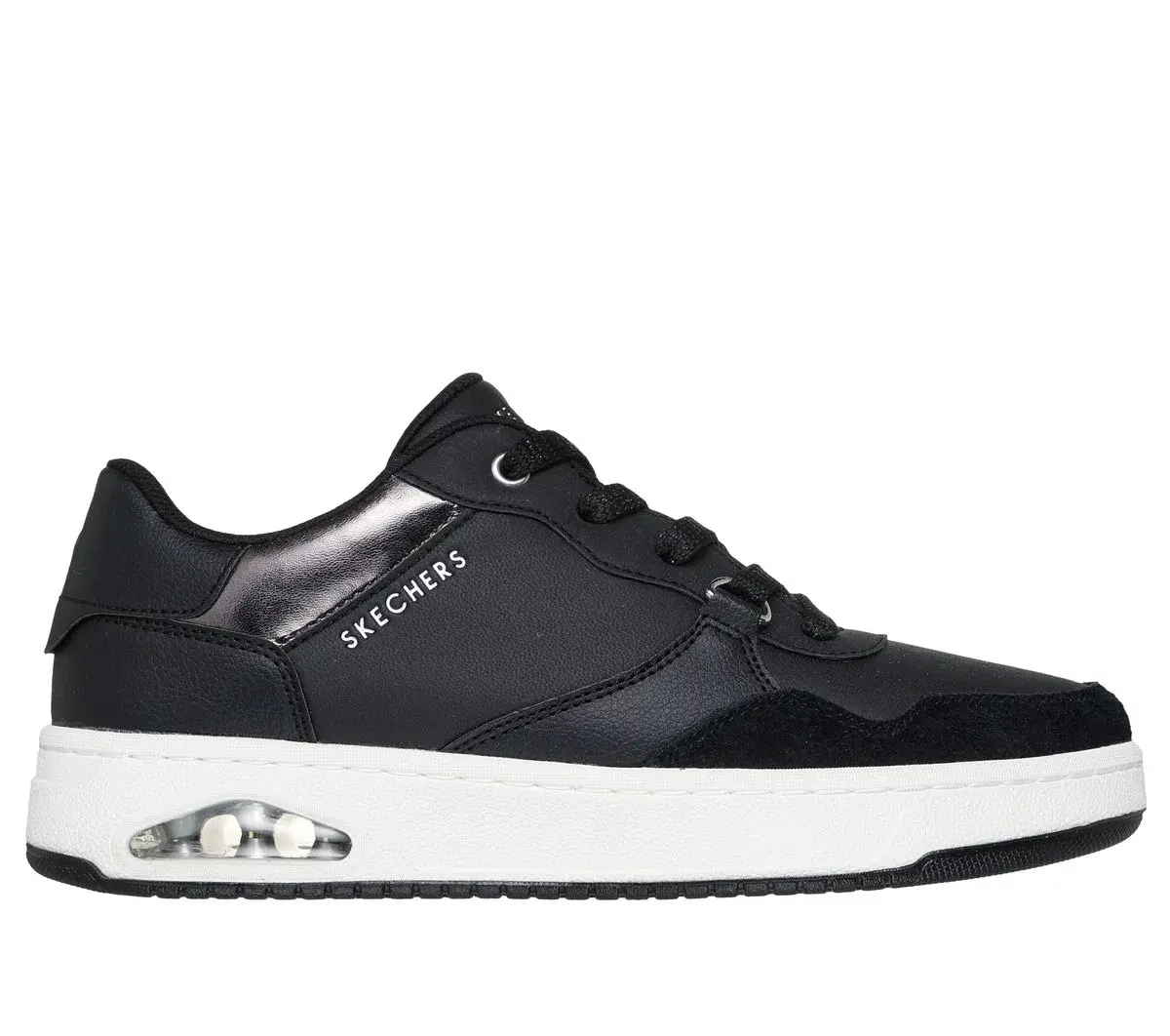 Lace into standout style and superior comfort with Skechers Street™ Uno CTL – Subtle Shimmer. This court-style fashion design features a laced duraleather and suede overlay upper with metallic detail, a cushioned Air-Cooled Memory Foam® insole, and a visible Skech-Air® airbag midsole.