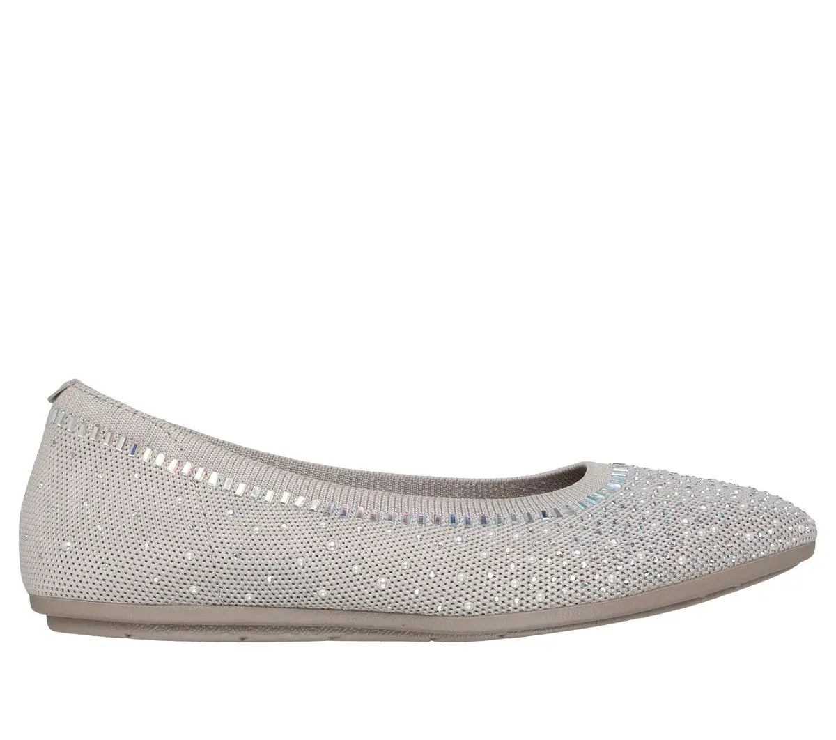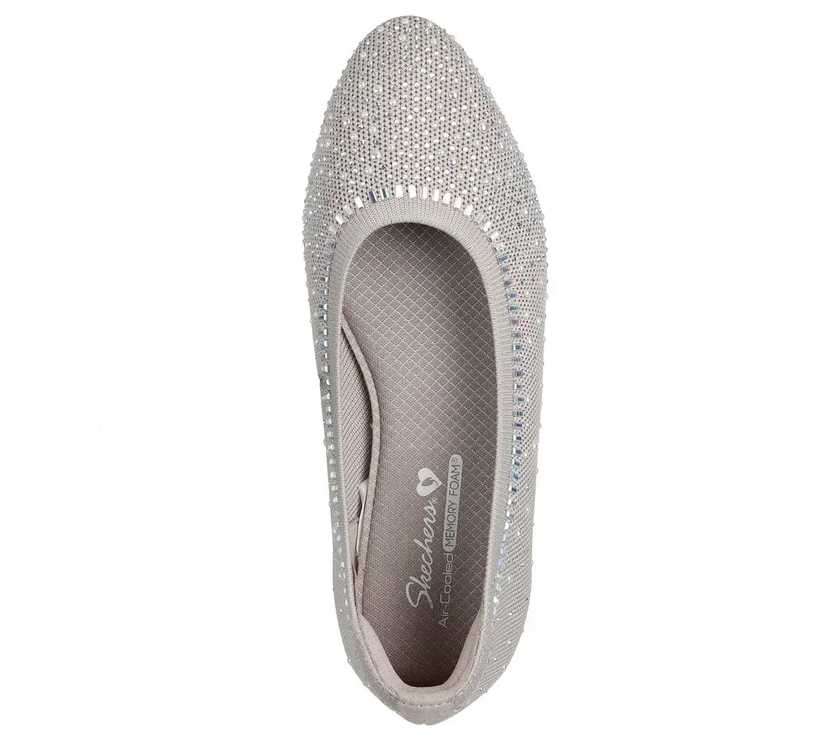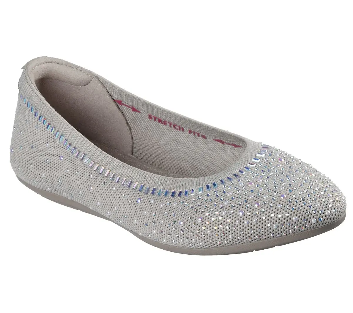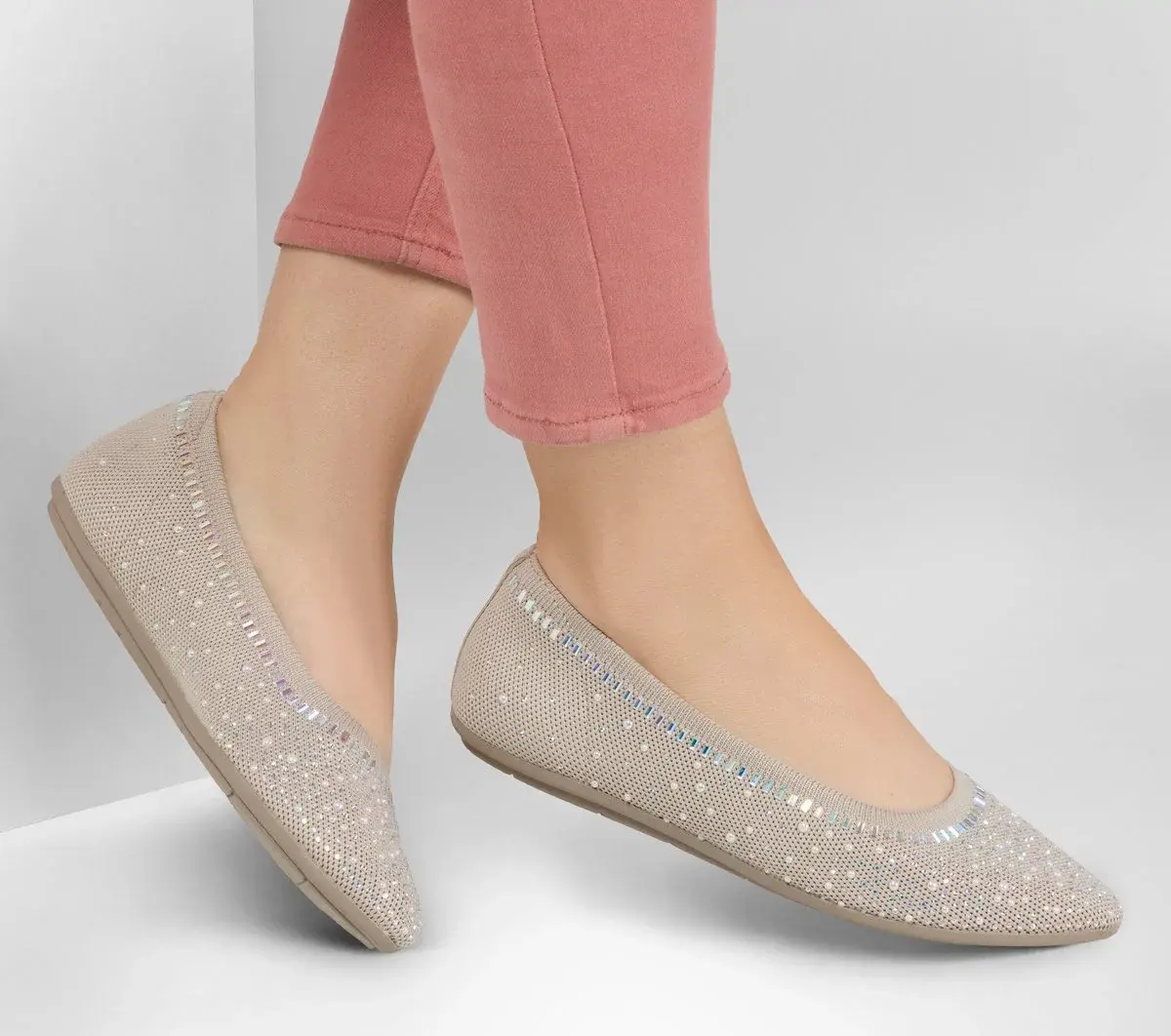 Gorgeous textured style becomes an eternal favorite in Skechers Cleo® 2.0 – Mesmerizing Nights. Designed with recycled materials, this Stretch Fit® vegan skimmer features an embellished knit upper and a cushioned Skechers Air-Cooled Memory Foam® insole. Our Planet Matters®: Good for your feet. Good for the world.®
