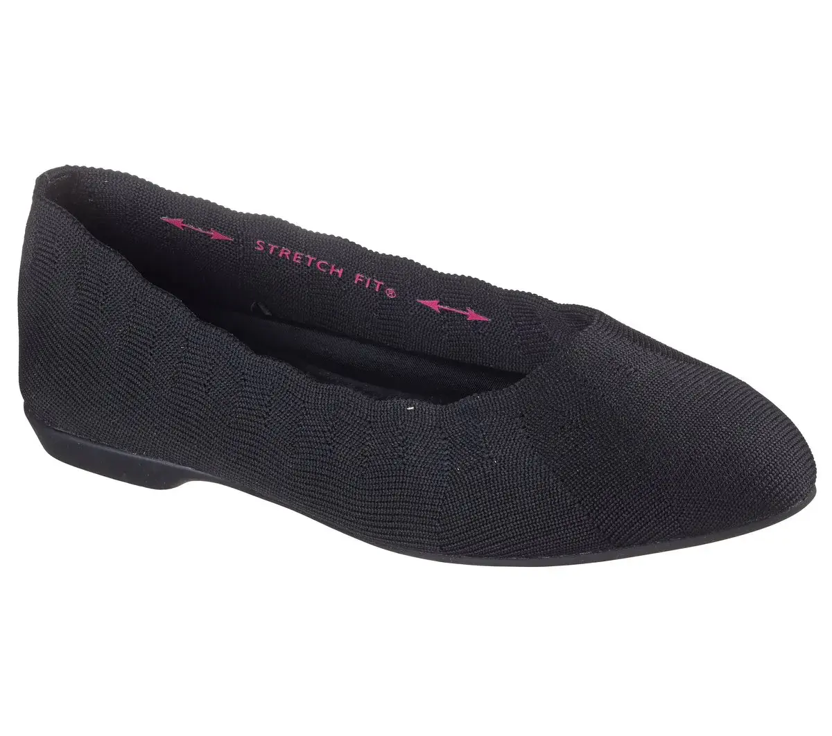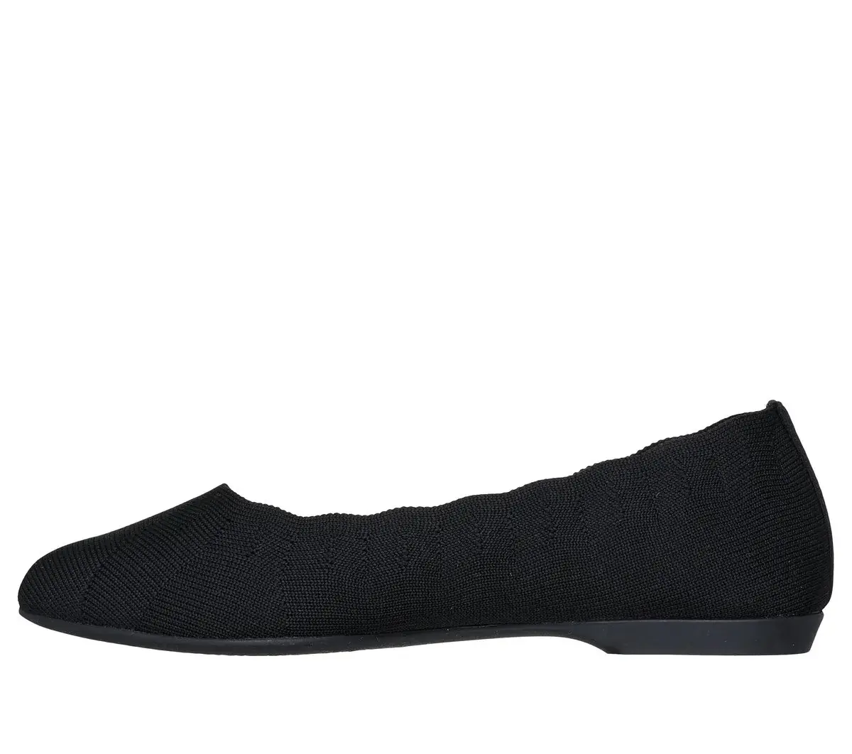 Gorgeous textured style becomes an eternal favorite in Skechers Cleo® Style. Designed with recycled materials, this Stretch Fit® vegan skimmer features a knit upper with scalloped collar trim and a cushioned Skechers Air-Cooled Memory Foam® insole. Our Planet Matters®: Good for your feet. Good for the world.®