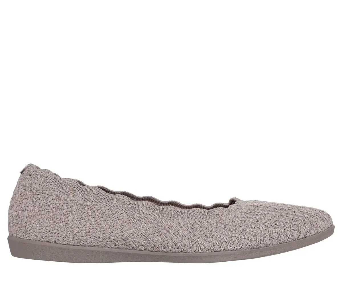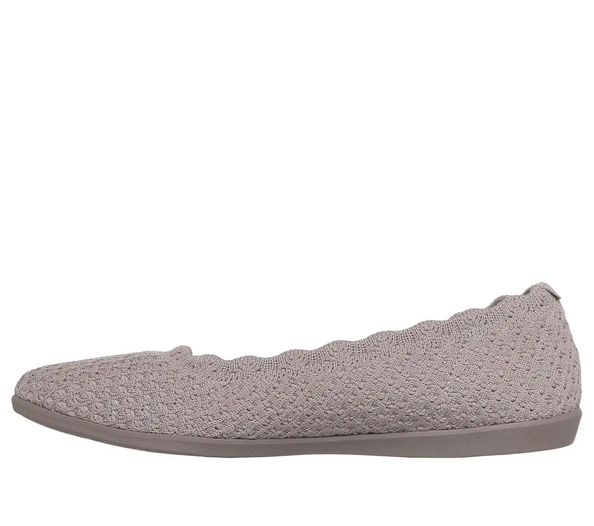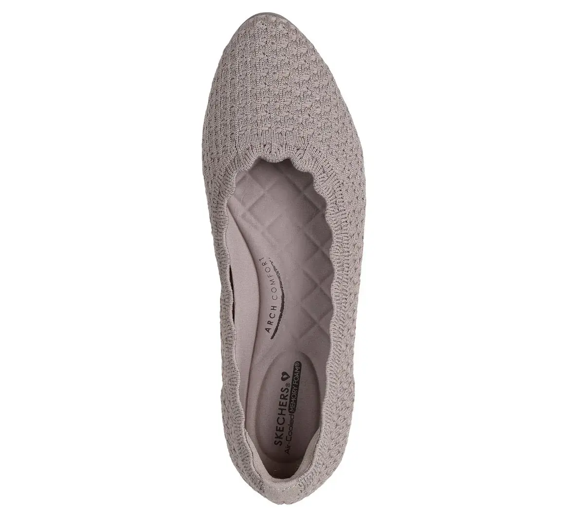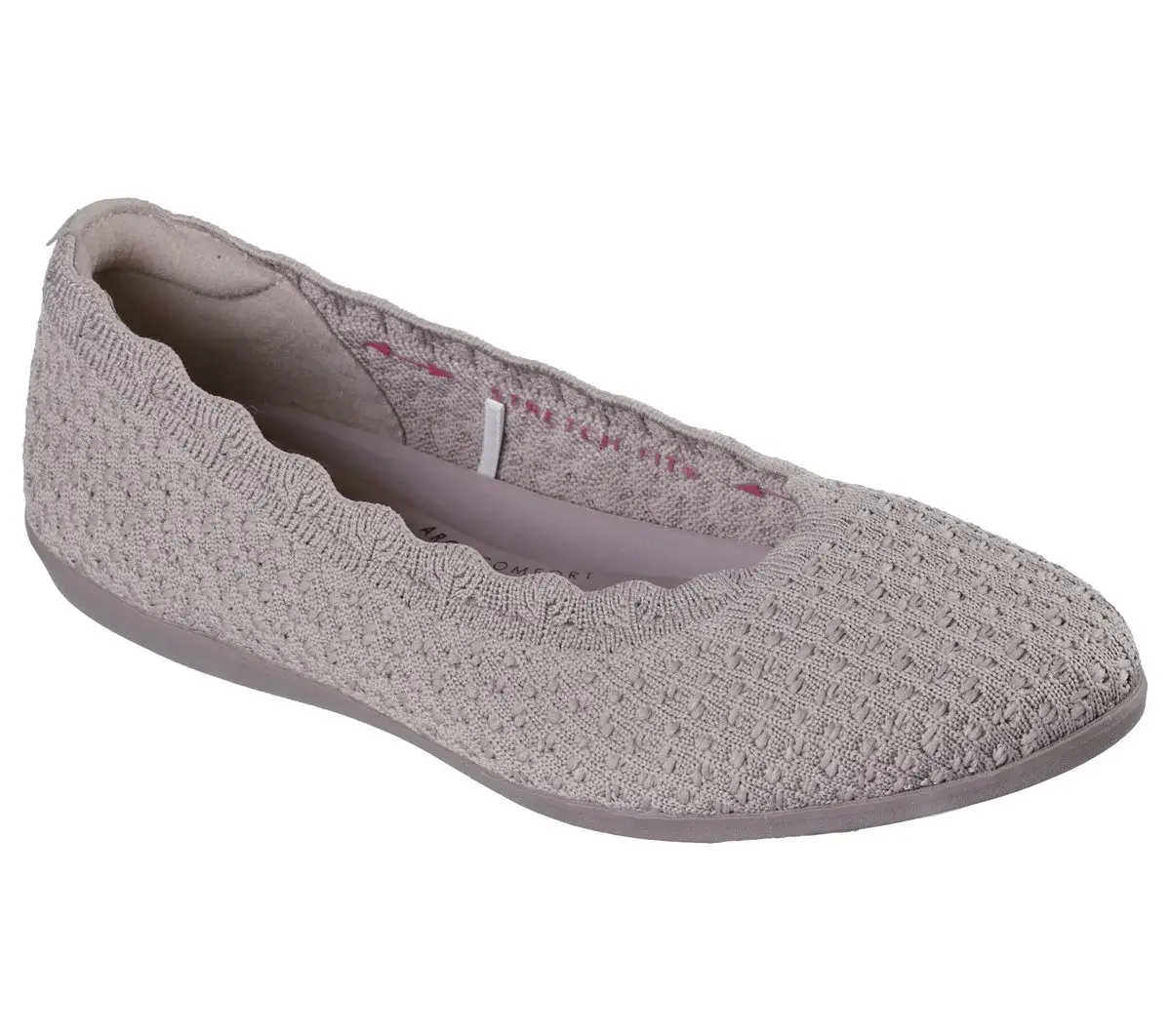 Our Planet Matters. Versatile style meets earth-friendly comfort with Skechers Cleo® Walk. Designed with recycled materials, this vegan Stretch Fit® skimmer features a recycled knit upper with scalloped trim and a cushioned Skechers Air-Cooled Memory Foam® insole with Arch Comfort™ support. Our Planet Matters®: Good for your feet. Good for the world.®