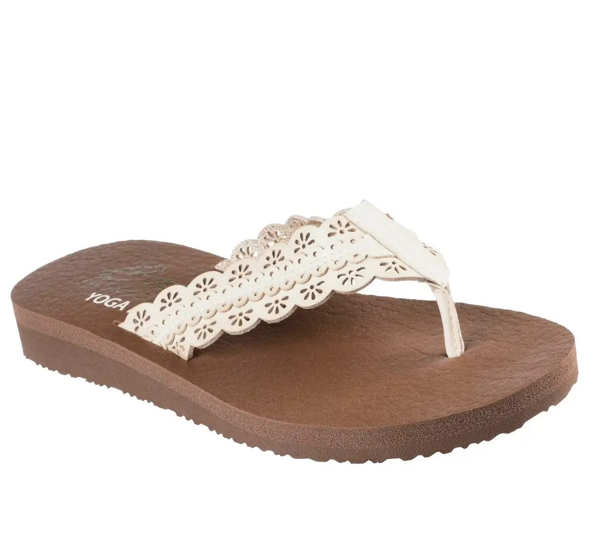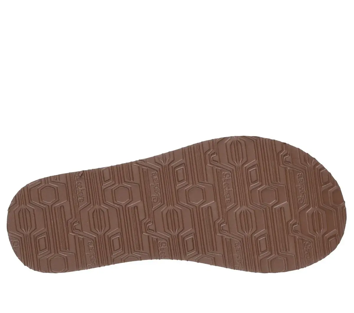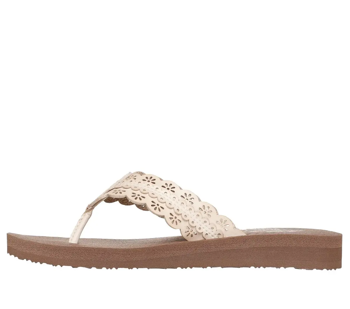 Pretty florals and comfort combine in Skechers Cali® Catching Sun. This vegan thong sandal features a floral cutout synthetic upper with a cushioned Yoga Foam® footbed.
