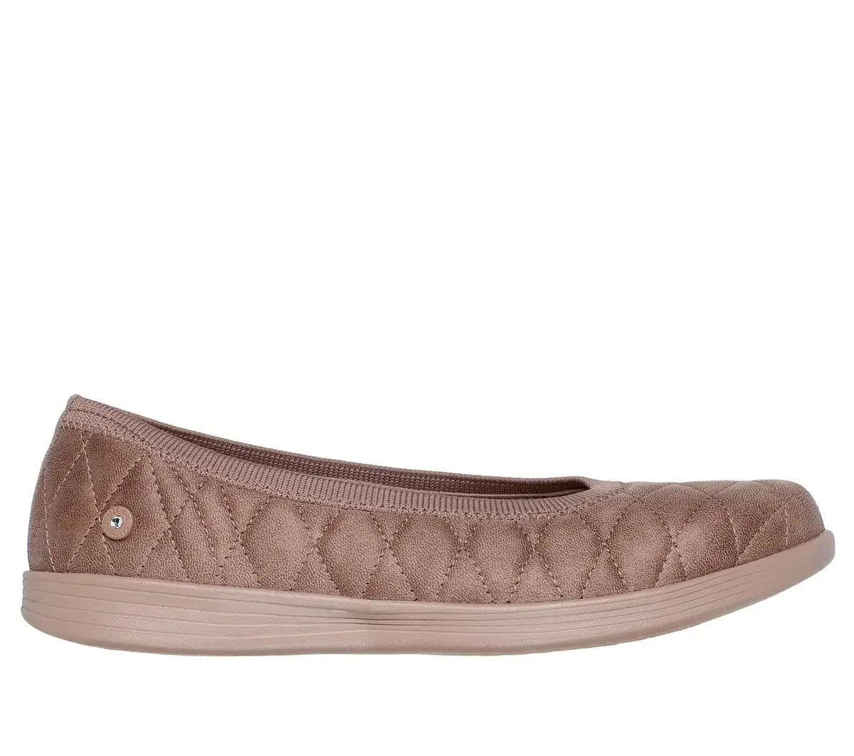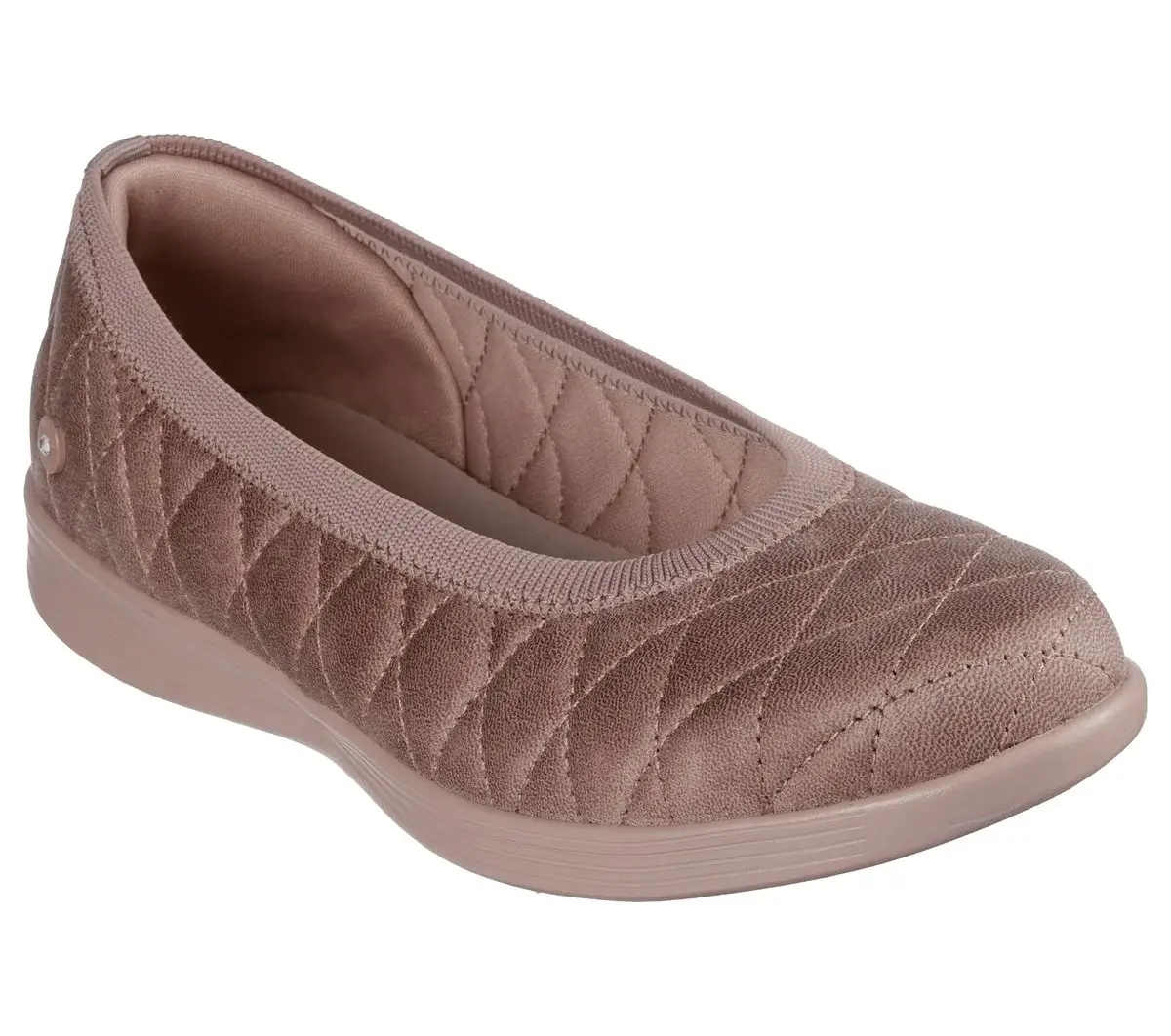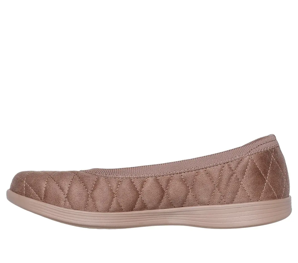 Effortless style and easy-wearing comfort combine in Skechers On-the-GO Dreamy – Sundance. This flat features a quilted vegan leather upper with a knit collar, Skechers Air-Cooled Goga Mat™ insole and a lightweight ULTRA GO® cushioned midsole.