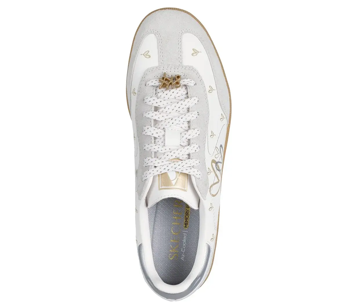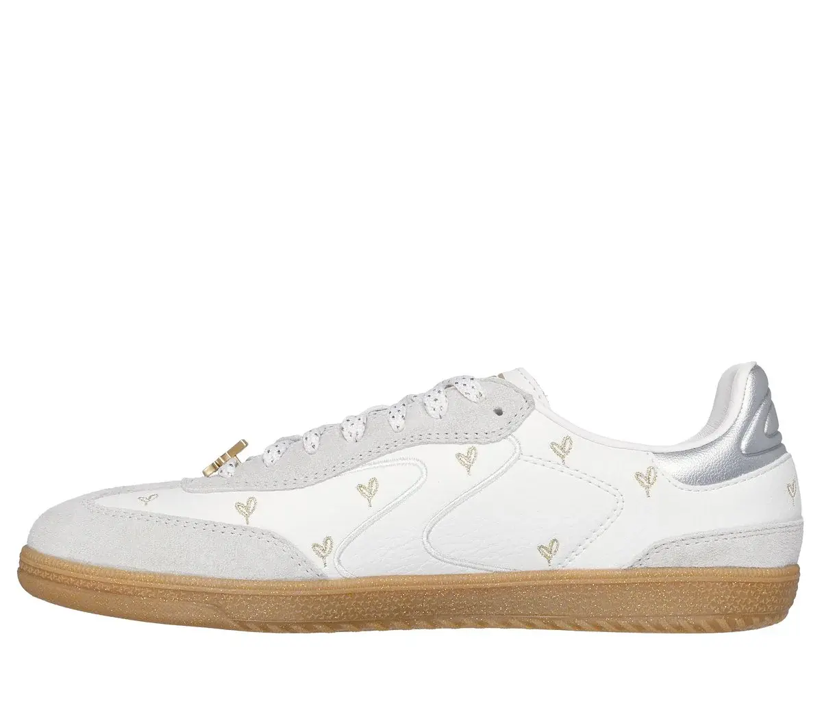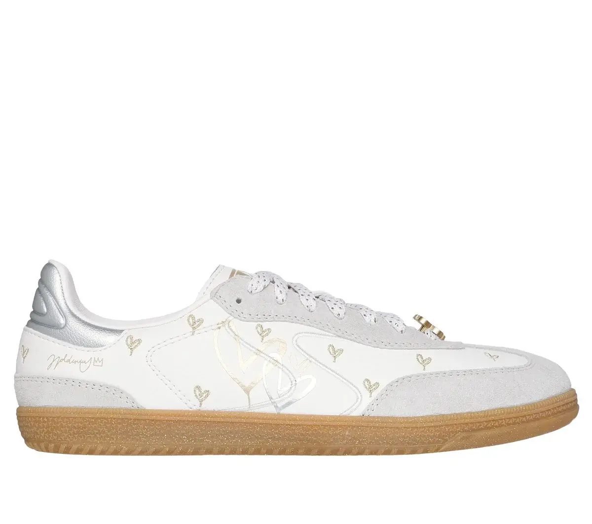 Internationally renowned muralist James Goldcrown brings his iconic #Lovewall heart designs to Skechers in this inspiring collaboration. A modern classic meets creative style with Skechers x JGoldcrown: Hotshot – Paint The Town. This lace-up Court & Classics style features the artist’s signature heart design throughout the duraleather and leather upper, metallic details, and our signature Skechers Air-Cooled Memory Foam® insole for cushioned comfort.