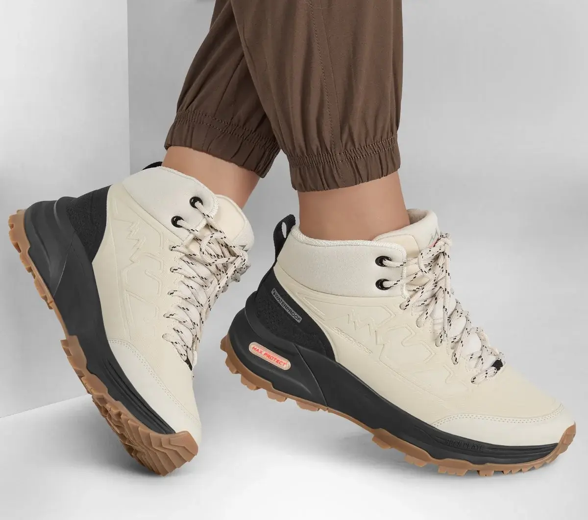 Experience all-day comfort out on the trail with Skechers Max Protect Legacy – Weekend Getaway. This waterproof outdoor trail design features a lace-up synthetic and mesh upper, Skechers Air-Cooled Memory Foam® insole, and a rock plate midsole for added protection on tougher terrains.