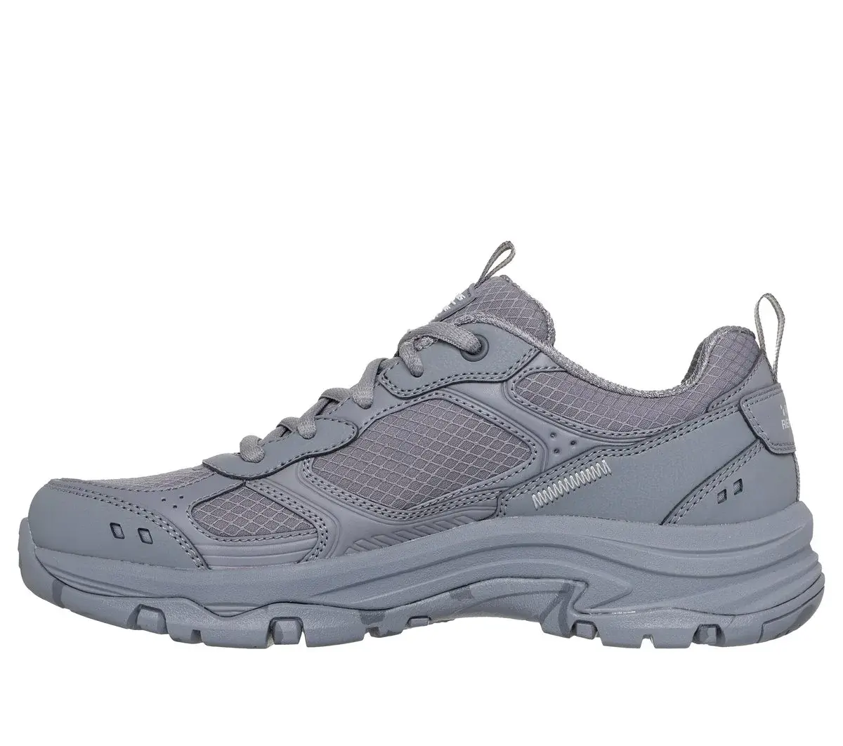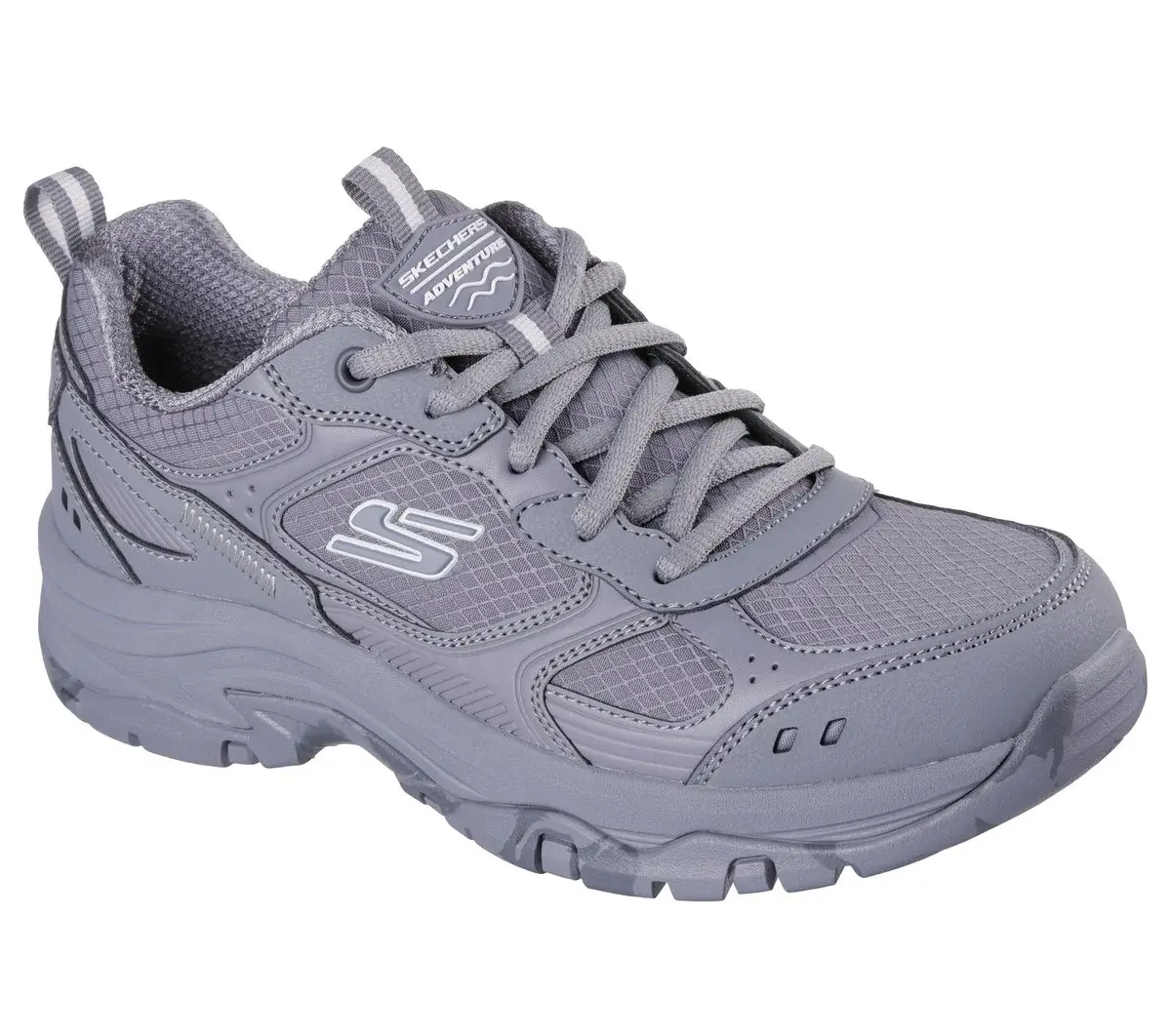 Enjoy the great outdoors in comfort made to go the extra mile wearing Skechers Relaxed Fit®: Trego – Reeds Mill Road. This water-repellent outdoor style features a roomy mesh and synthetic overlay upper with a lace-up front and our signature Skechers Air-Cooled Memory Foam® insole.