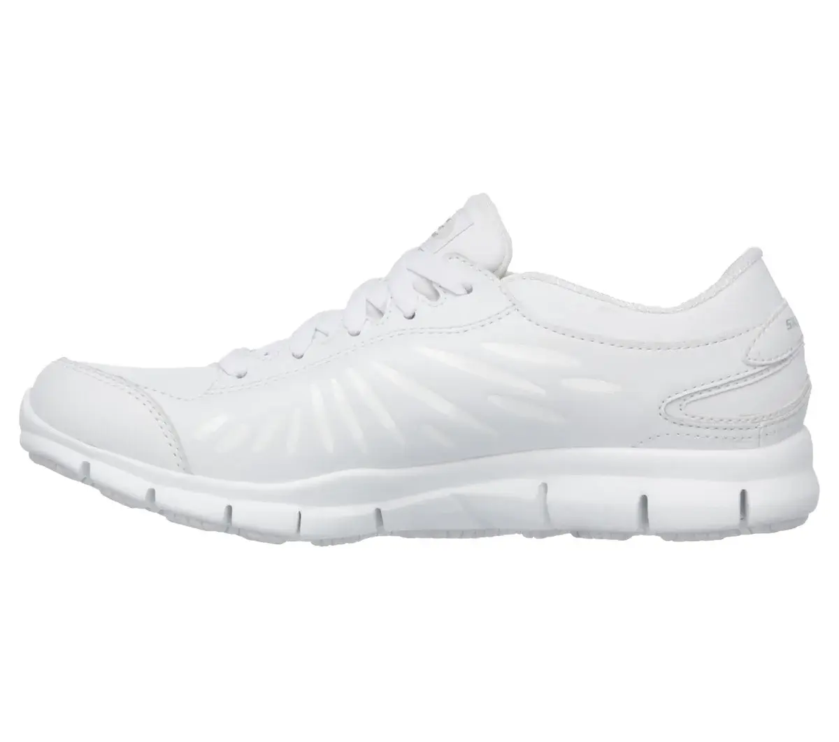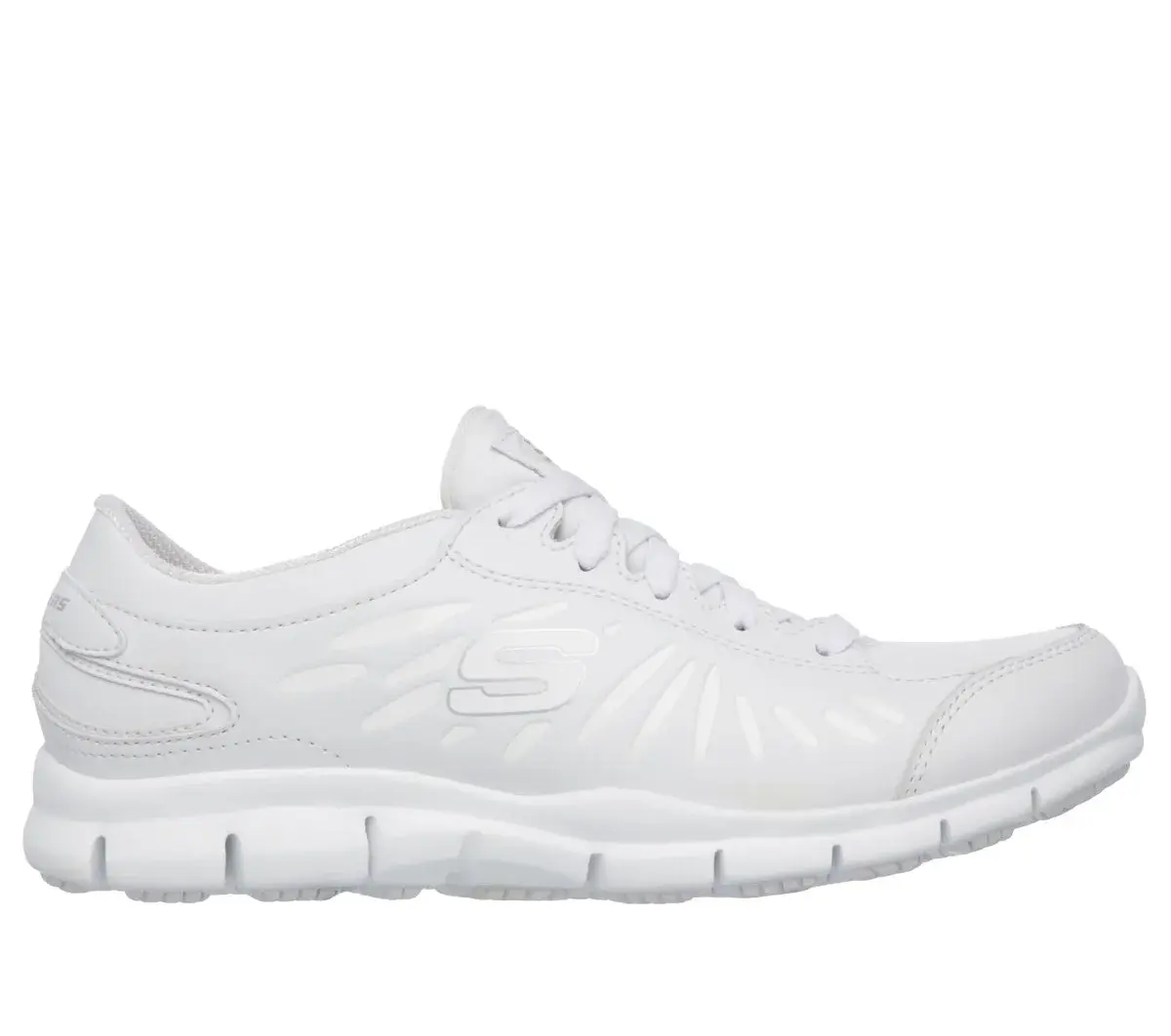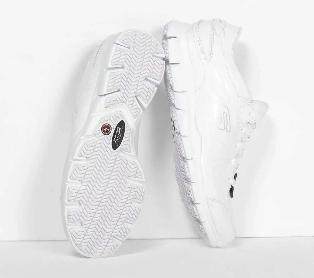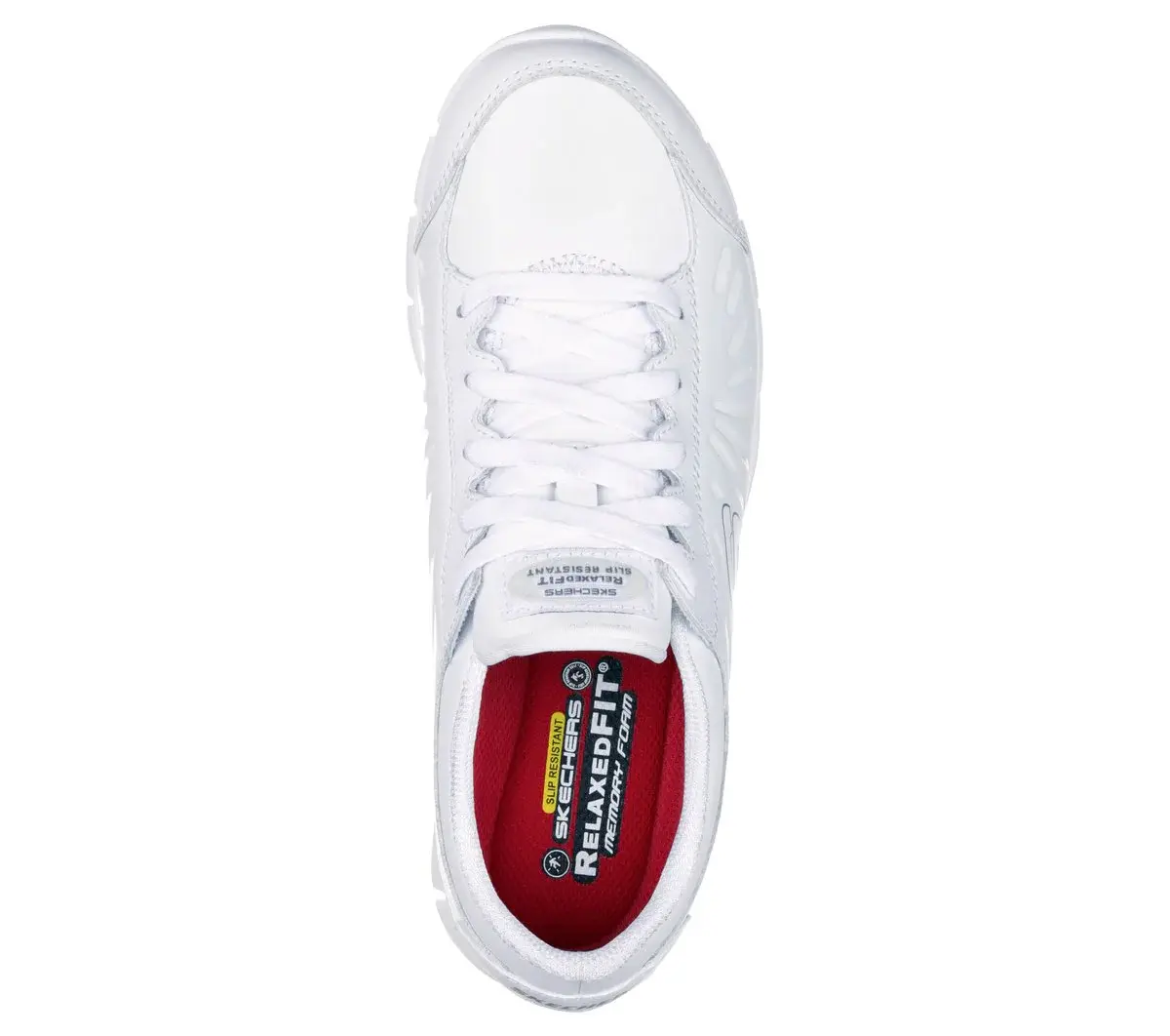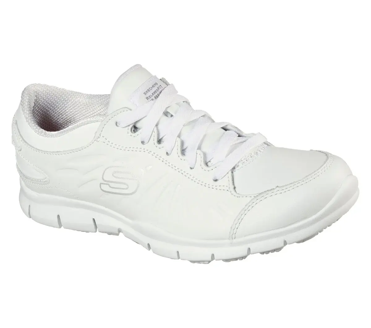 Good looks combine with comfort and safety in Skechers Work Relaxed Fit®: Eldred – Dewey SR. This lace-up features a smooth leather and synthetic upper with a Skechers Memory Foam™ insole and slip-resistant outsole.