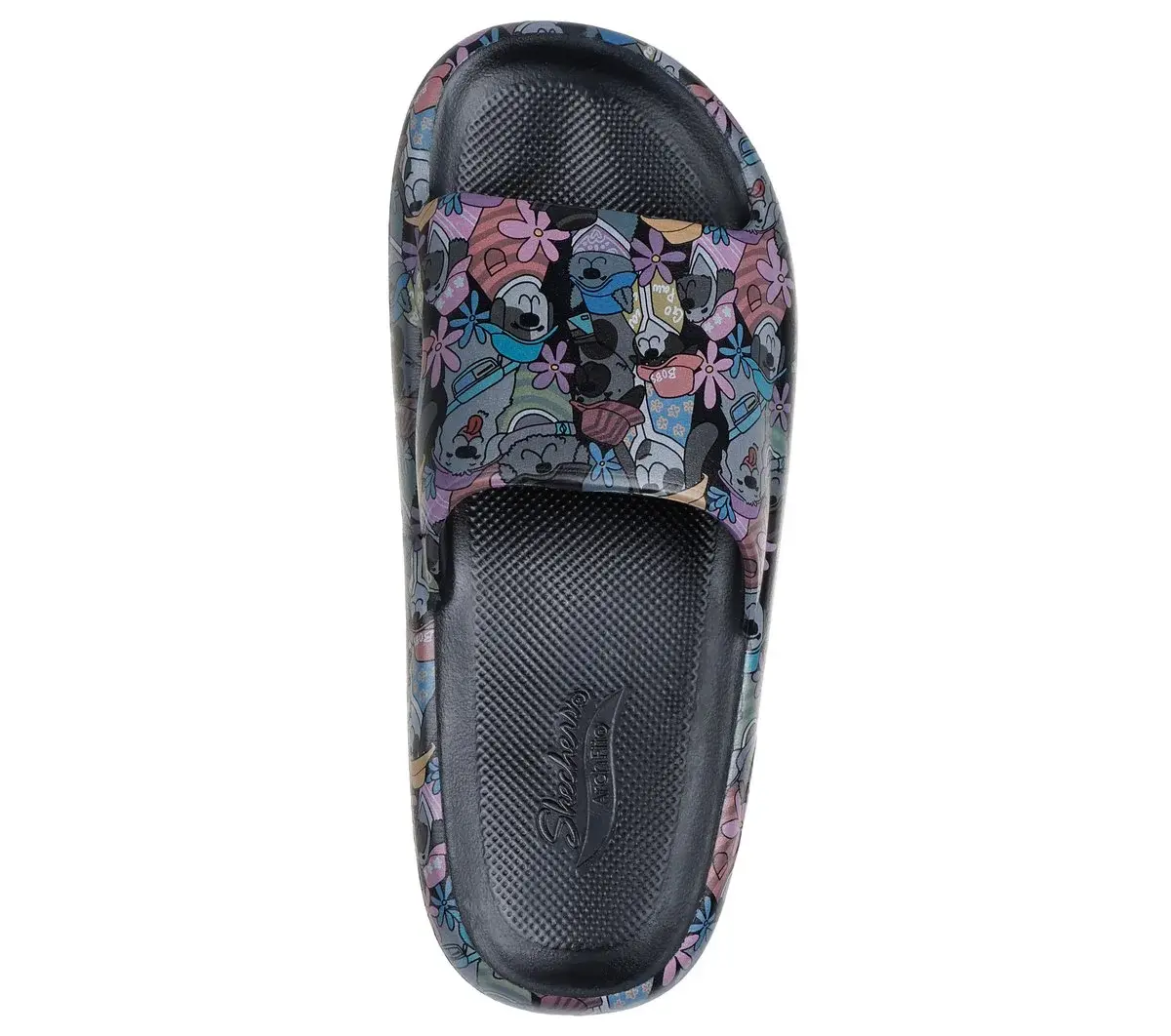 Slide into supportive comfort and on-trend sculpted style wearing Skechers Foamies®: Arch Fit® Horizon – Pawsitively Cute. Designed with an Arch Fit® contoured footbed, this slide sandal has been granted the APMA Seal of Acceptance and features a cute allover BOBS® “Bucket Hat Dogs” print on a Foamies® EVA single band upper. For every BOBS® purchase, a donation is made to animals in need.
