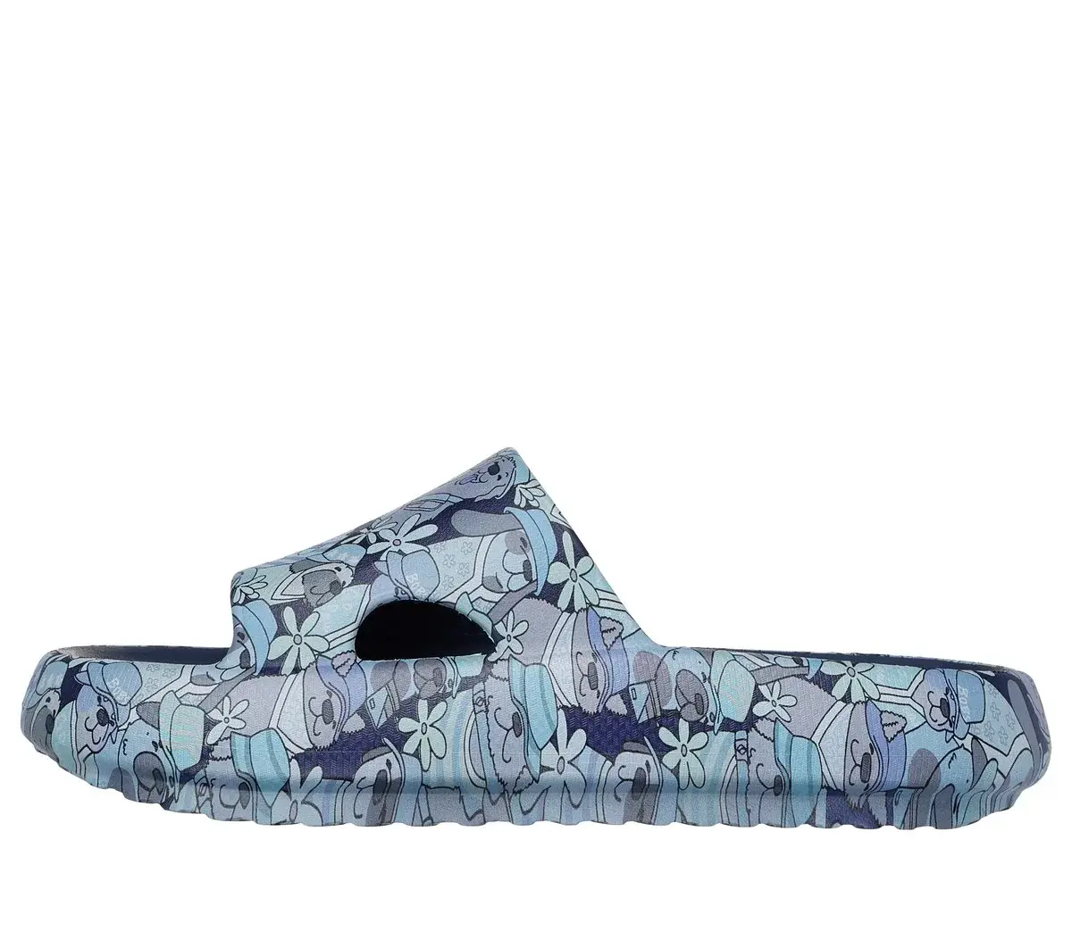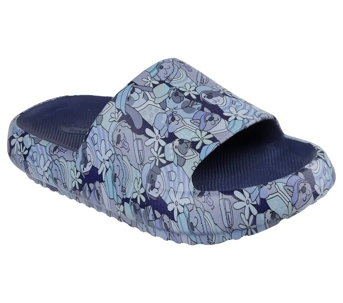 Slide into supportive comfort and on-trend sculpted style wearing Skechers Foamies®: Arch Fit® Horizon – Pawsitively Cute. Designed with an Arch Fit® contoured footbed, this slide sandal has been granted the APMA Seal of Acceptance and features a cute allover BOBS® “Bucket Hat Dogs” print on a Foamies® EVA single band upper. For every BOBS® purchase, a donation is made to animals in need.