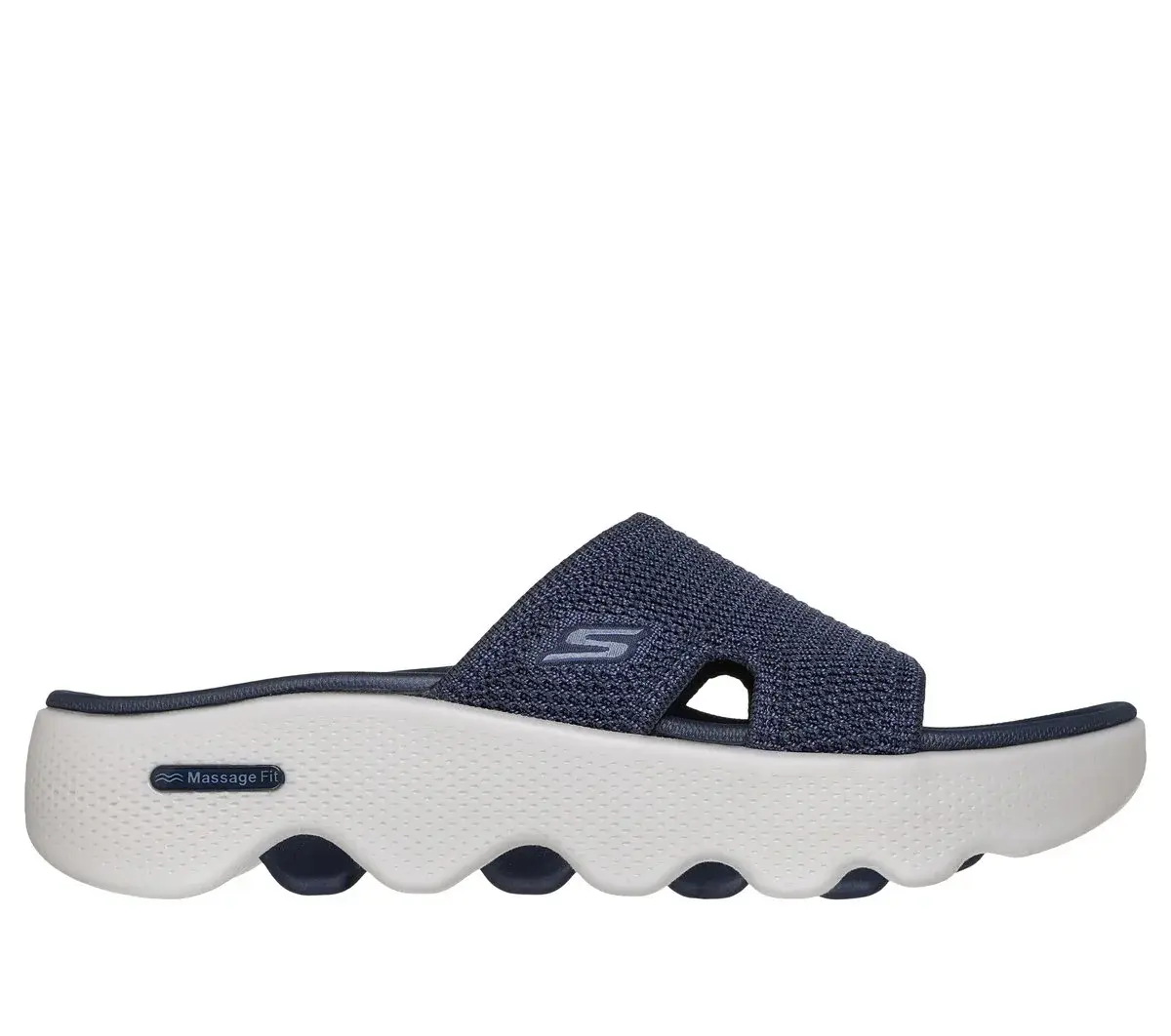 Feel cloud-like comfort with every step in Skechers Massage Fit™ Revive – Roxie. This innovative vegan recovery sandal features a knit upper with cutout details, an ultra-lightweight, responsive HYPER BURST® cushioned midsole, and a contoured Goga Mat® footbed with Arch Comfort® for added support.