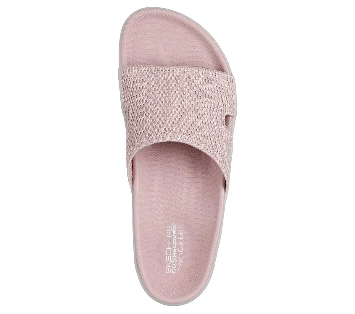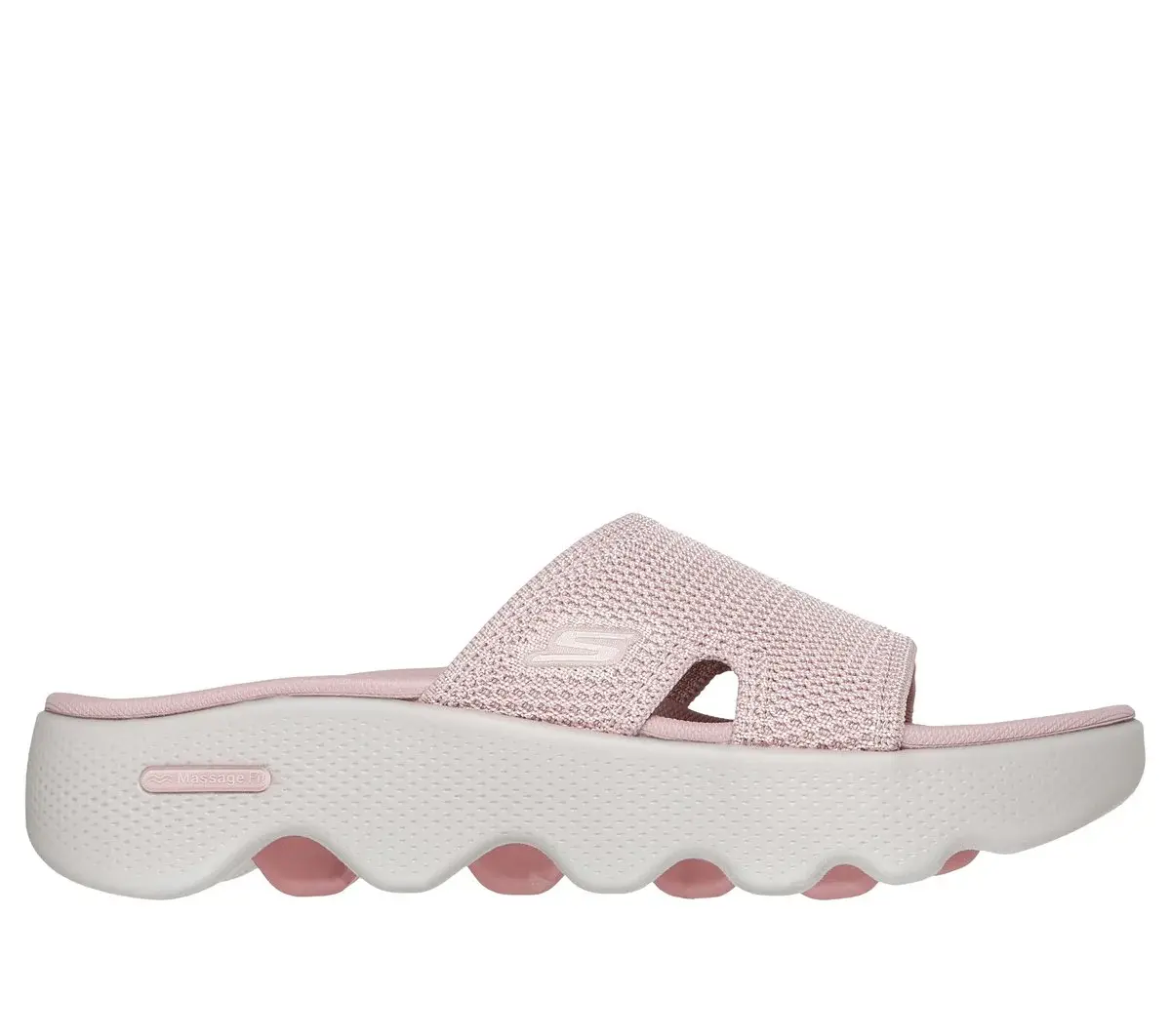 Feel cloud-like comfort with every step in Skechers Massage Fit™ Revive – Roxie. This innovative vegan recovery sandal features a knit upper with cutout details, an ultra-lightweight, responsive HYPER BURST® cushioned midsole, and a contoured Goga Mat® footbed with Arch Comfort® for added support.