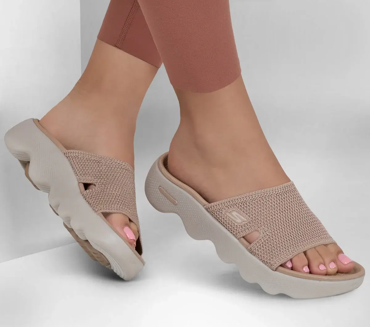 Feel cloud-like comfort with every step in Skechers Massage Fit™ Revive – Roxie. This innovative vegan recovery sandal features a knit upper with cutout details, an ultra-lightweight, responsive HYPER BURST® cushioned midsole, and a contoured Goga Mat® footbed with Arch Comfort® for added support.