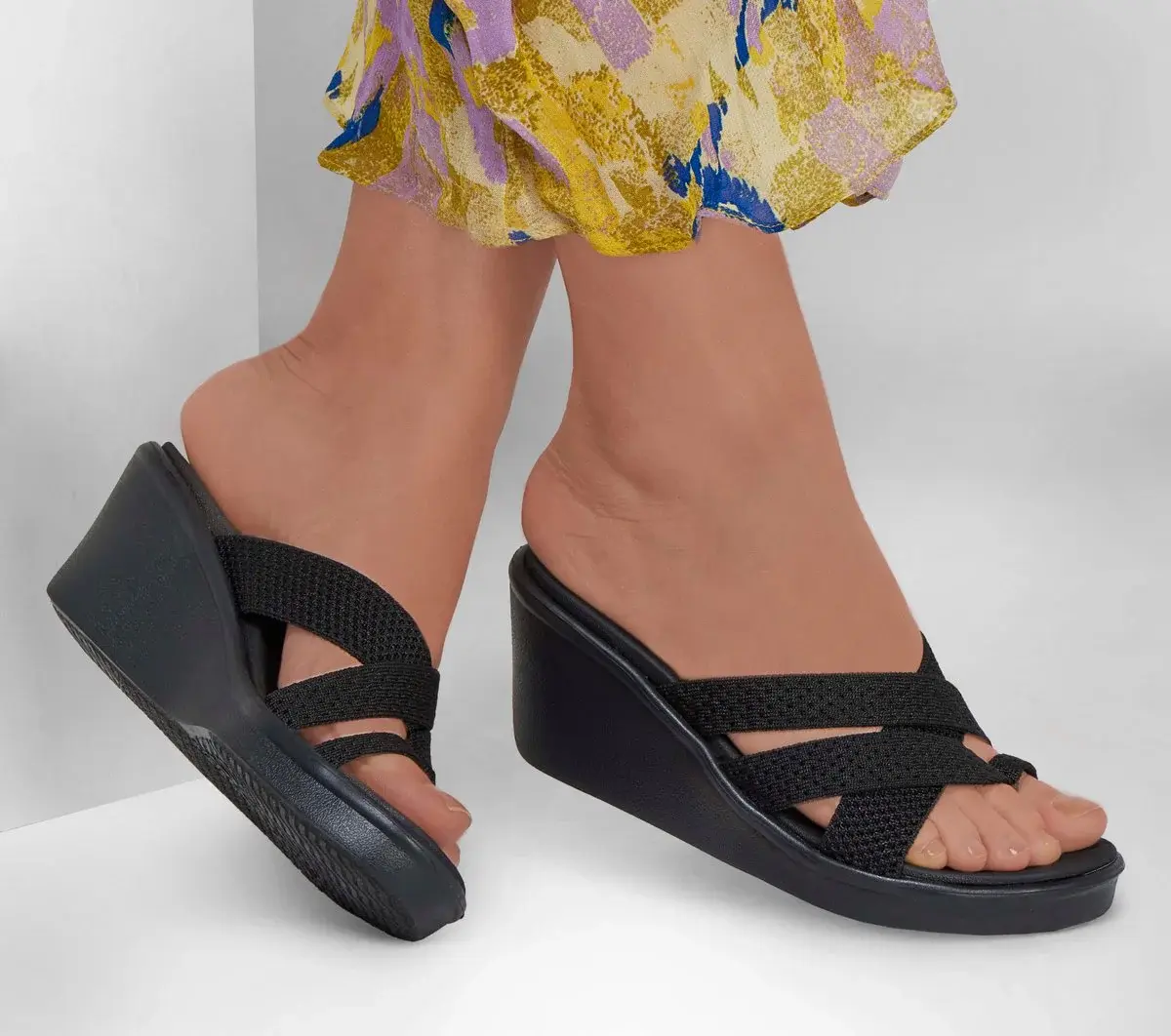 Sunny-weather style combines with easygoing comfort in Skechers Cali® Rumble On – Heat Maze. This classic wedge sandal features a multi-strap fabric knit upper with a cushioned Luxe Foam® footbed.