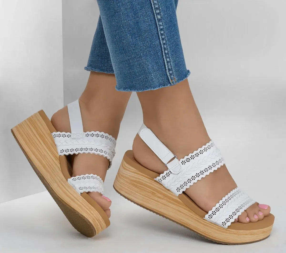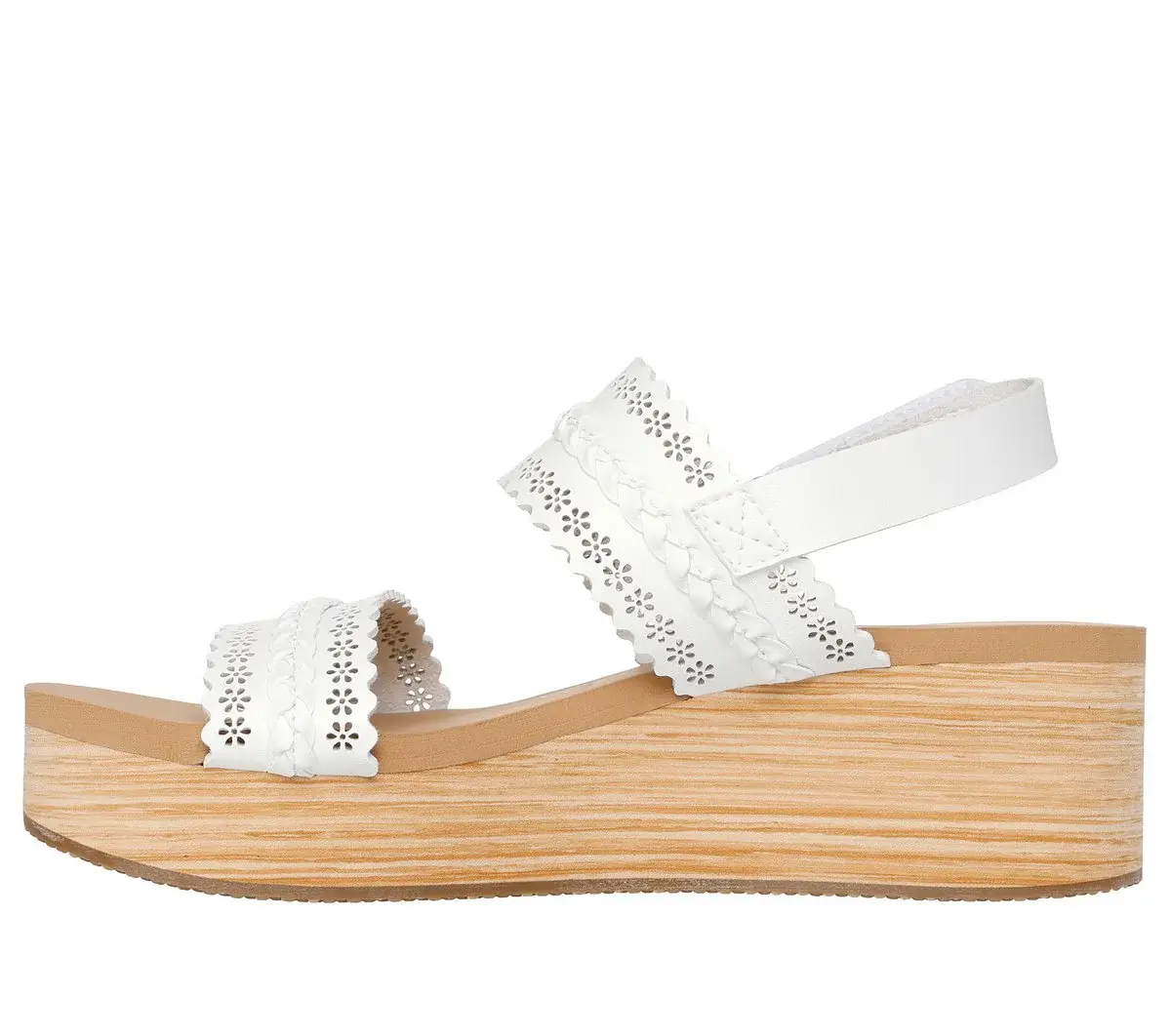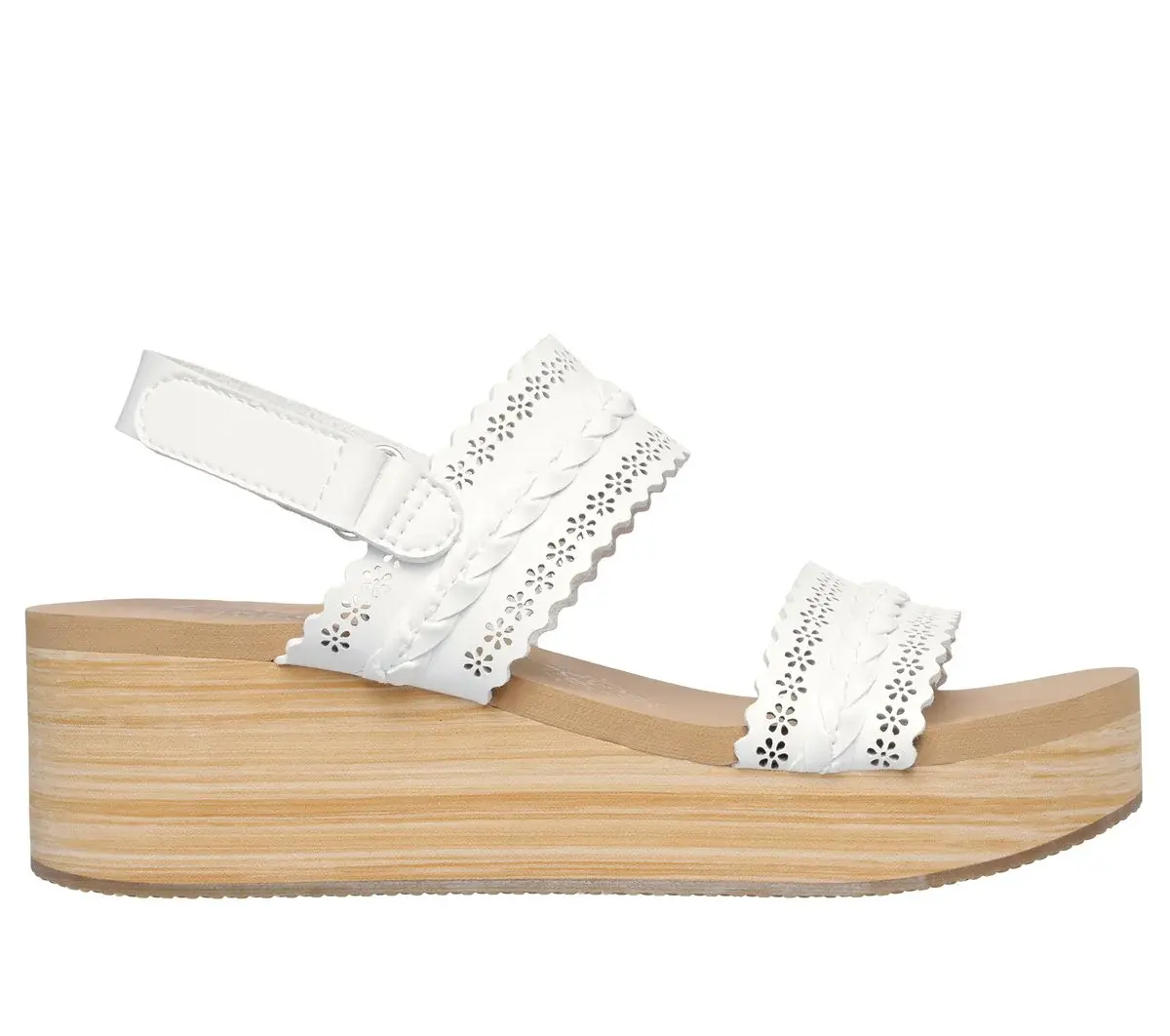Dazzle your steps in floral style and comfort with Skechers Cali® Summers – Coastal Stroll. This vegan wedge sandal features a floral cutout synthetic upper with an adjustable back strap and a cushioned Luxe Foam® comfort footbed.