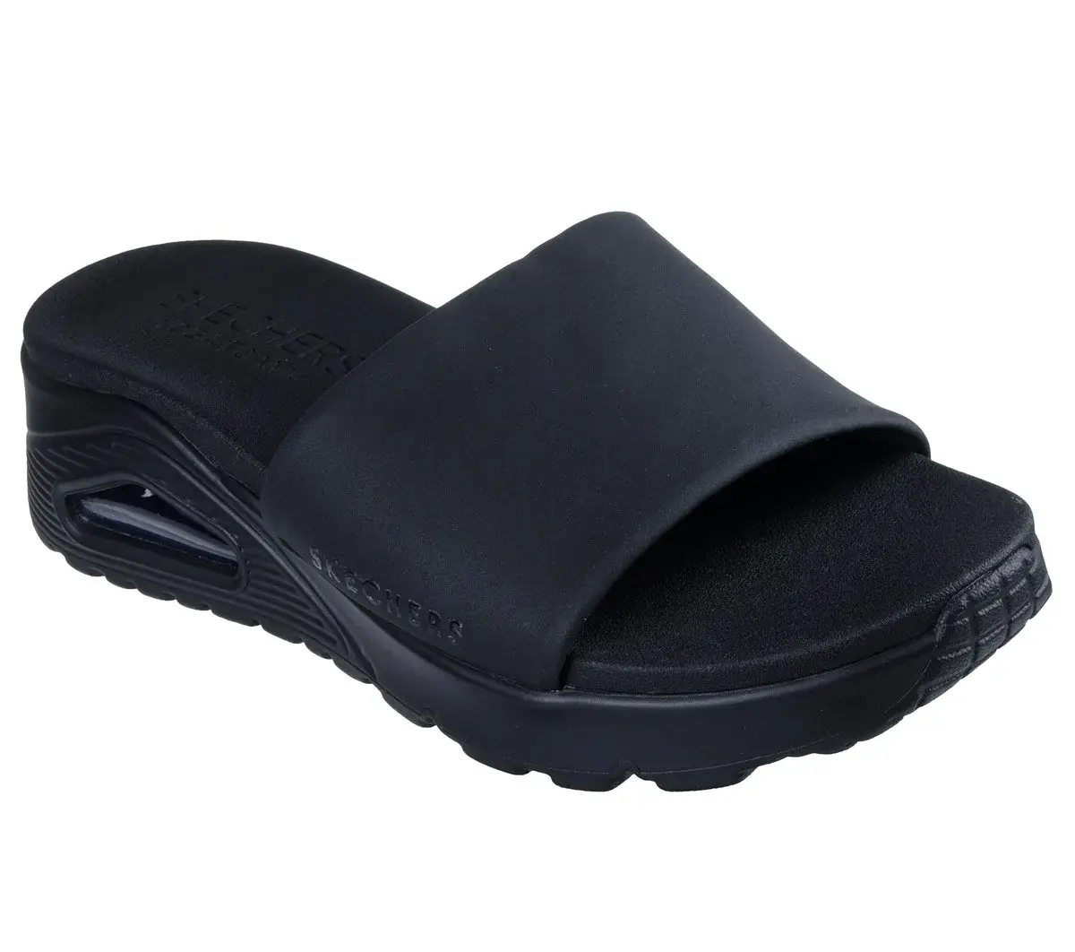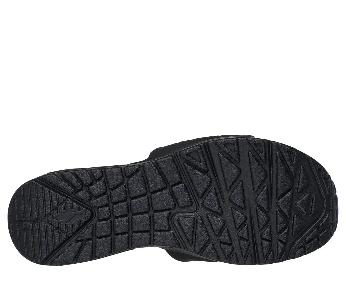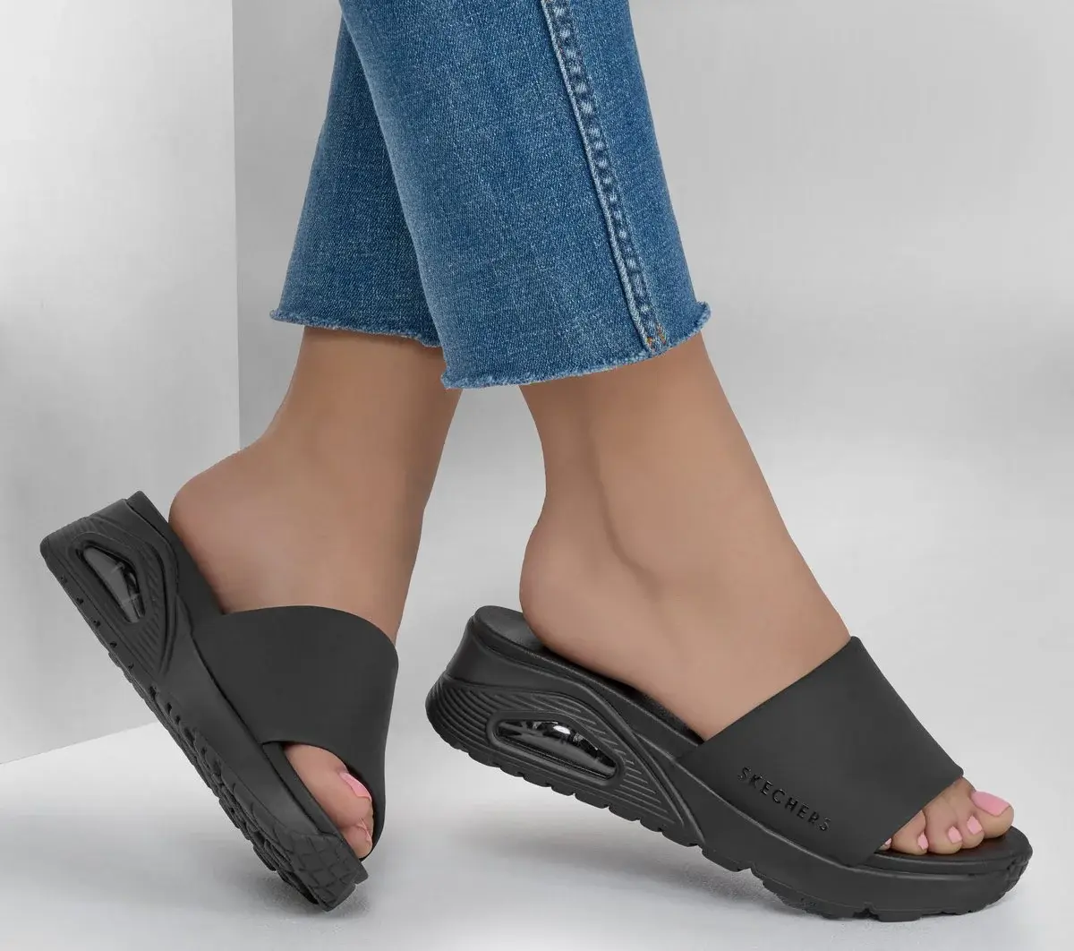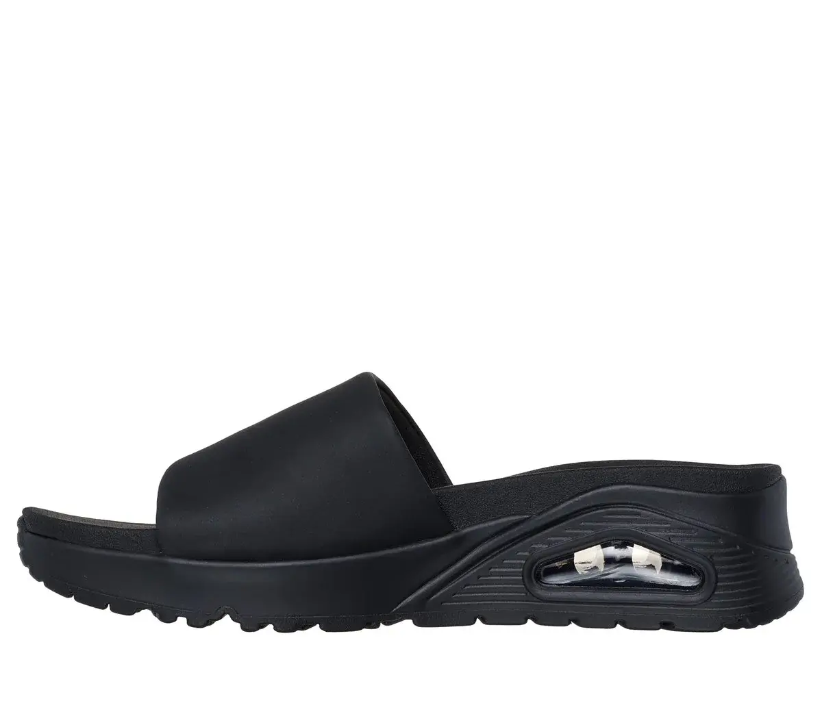 Heat up your sunny day style wearing Skechers Uno – Stand Together. Inspired by our iconic Uno silhouette, this vegan slide features a cushioned Yoga Foam® footbed and a visible Skech-Air® airbag midsole.