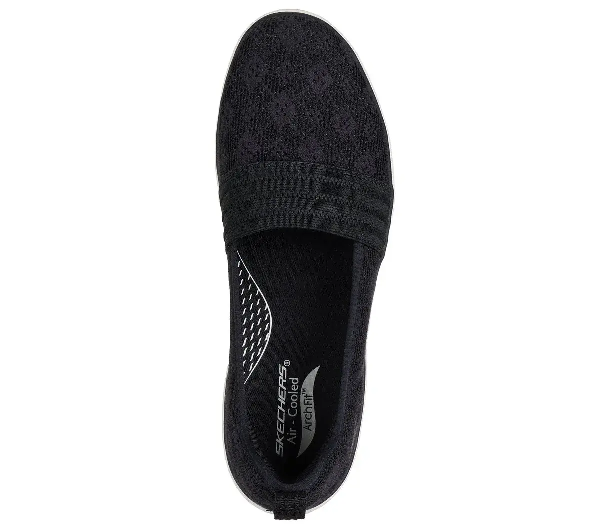 Bloom with style and comfort in Skechers Arch Fit Inspire – Nova. This vegan skimmer has been granted the APMA Seal of Acceptance and features a lace mesh upper, lightweight ULTRA GO® cushioning, and a removable Arch Fit® insole.