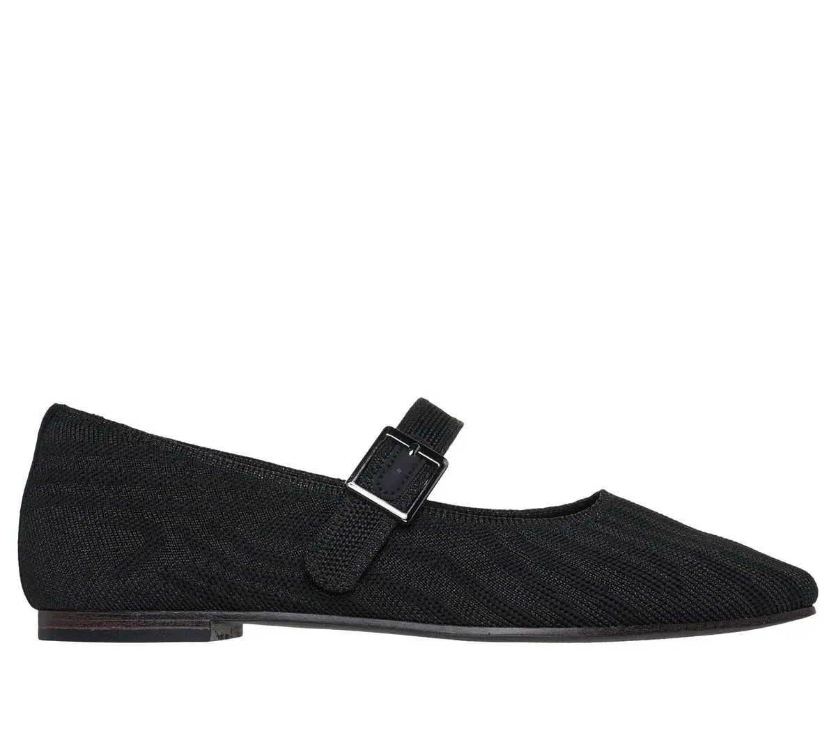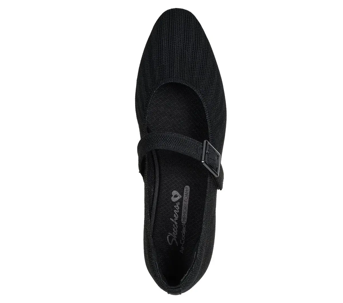Go green in sparkly eco-friendly style wearing Skechers Cleo® Snip – Glamorous. Designed with recycled materials, this pull-on Mary Jane style features a Stretch Fit® engineered knit upper with a buckle accent and a cushioned Skechers Air-Cooled Memory Foam® insole. Our Planet Matters®: Good for your feet. Good for the world.®