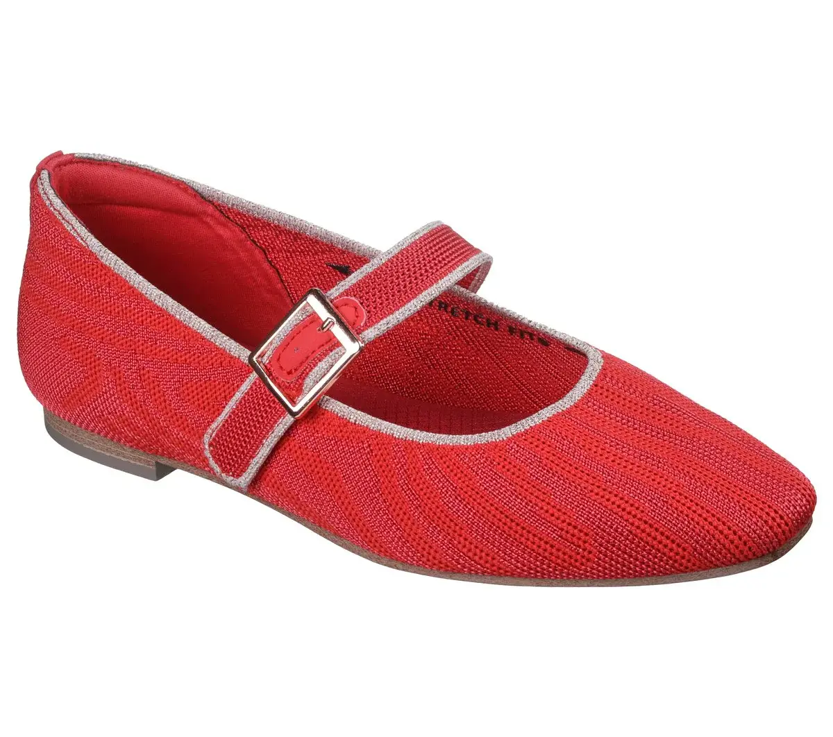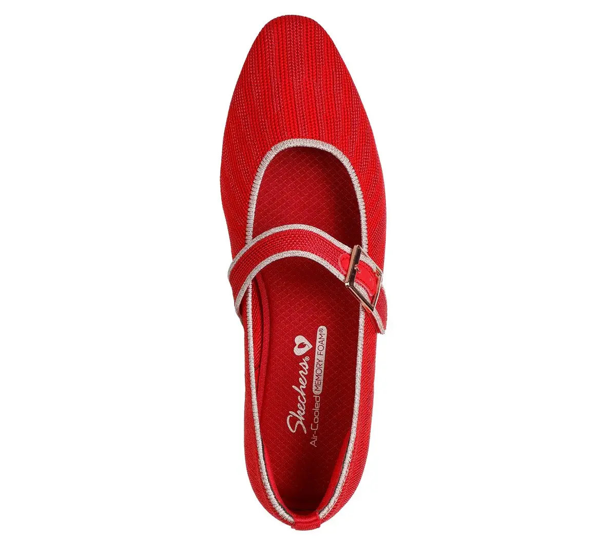 Go green in sparkly eco-friendly style wearing Skechers Cleo® Snip – Glamorous. Designed with recycled materials, this pull-on Mary Jane style features a Stretch Fit® engineered knit upper with a buckle accent and a cushioned Skechers Air-Cooled Memory Foam® insole. Our Planet Matters®: Good for your feet. Good for the world.®