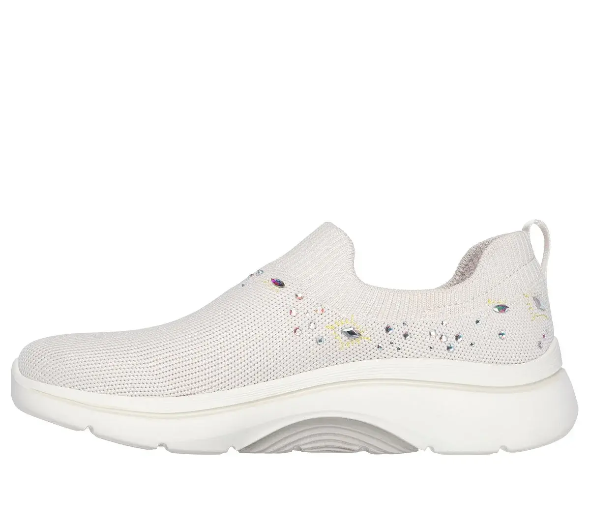 Experience ultimate comfort and support wearing Skechers GO WALK® Arch Fit® 2.0 – Ayla. This laceless walking design has been granted the APMA Seal of Acceptance and features a Stretch Fit® engineered knit upper with rhinestone embellishments, a removable Arch Fit® insole, lightweight ULTRA GO® cushioning, plus Comfort Pillar Technology® for added support.