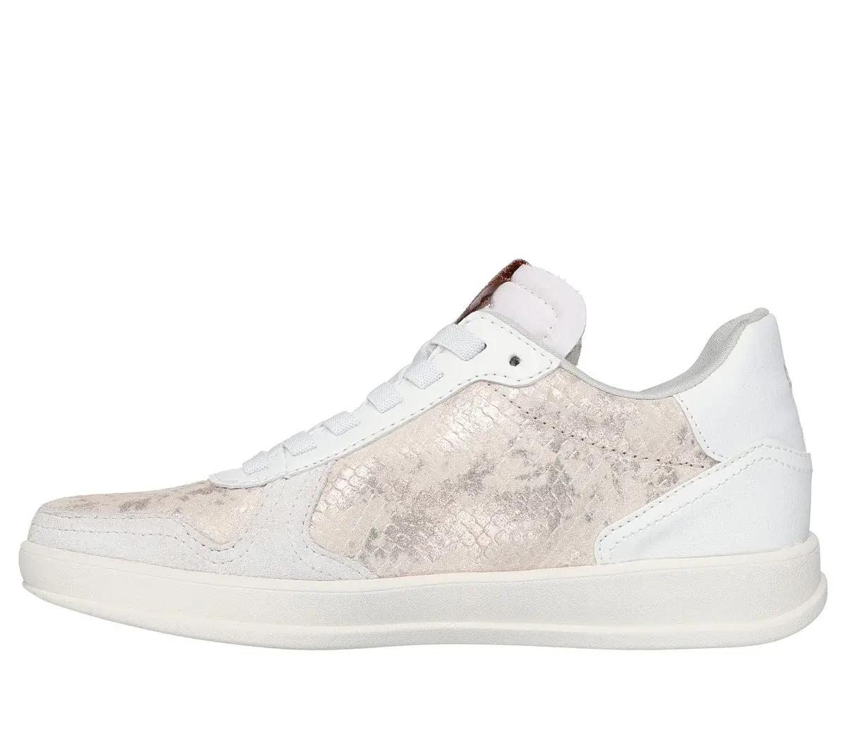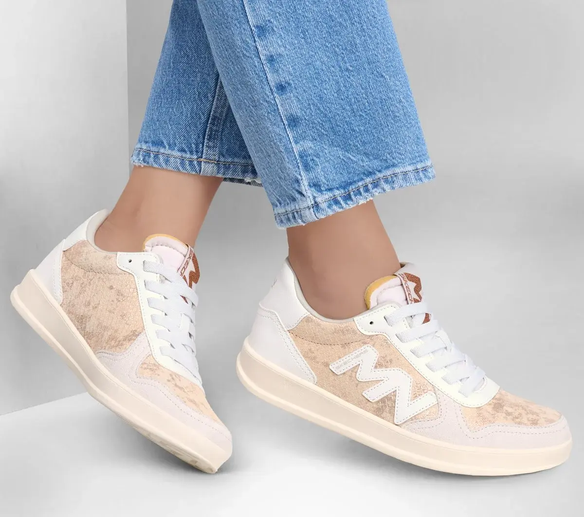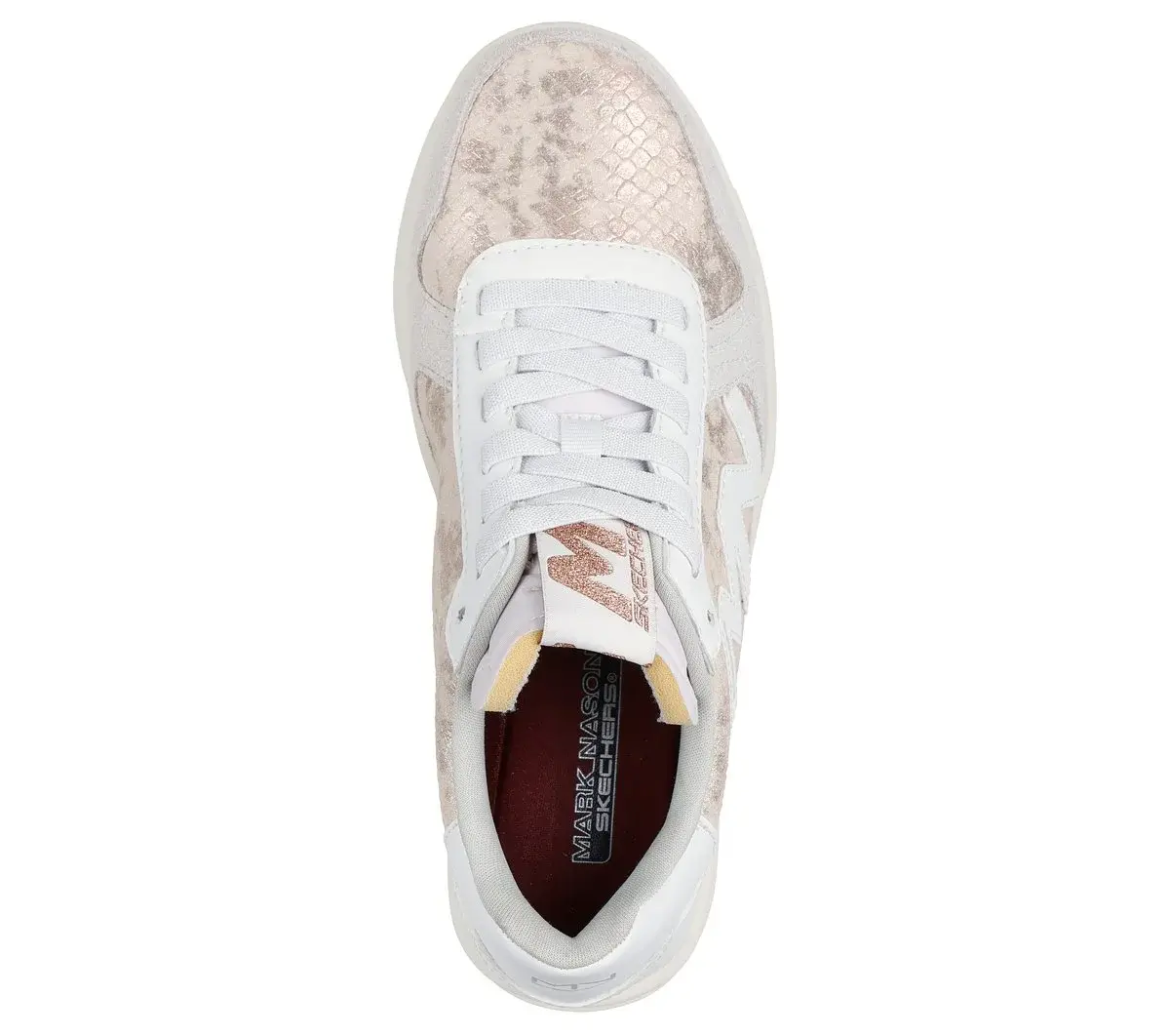 Stay comfortable in modern classic vibes wearing the stylish Mark Nason® Skechers: New Wave Cup – Palms. This retro court style features a contrast textile and leather upper, stretch laces and a cushioned Memory Foam Lux comfort insole.