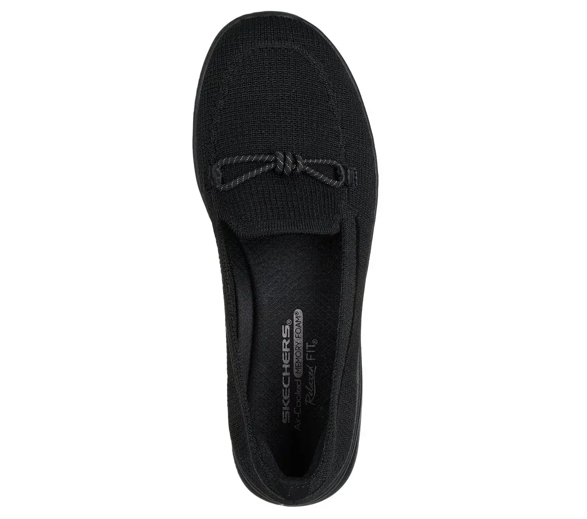 Less is more with Skechers Relaxed Fit®: Lightly. This low profile loafer style features a roomy Stretch Fit® woven upper with knot detail at the vamp and a Skechers Air-Cooled Memory Foam® cushioned comfort insole.