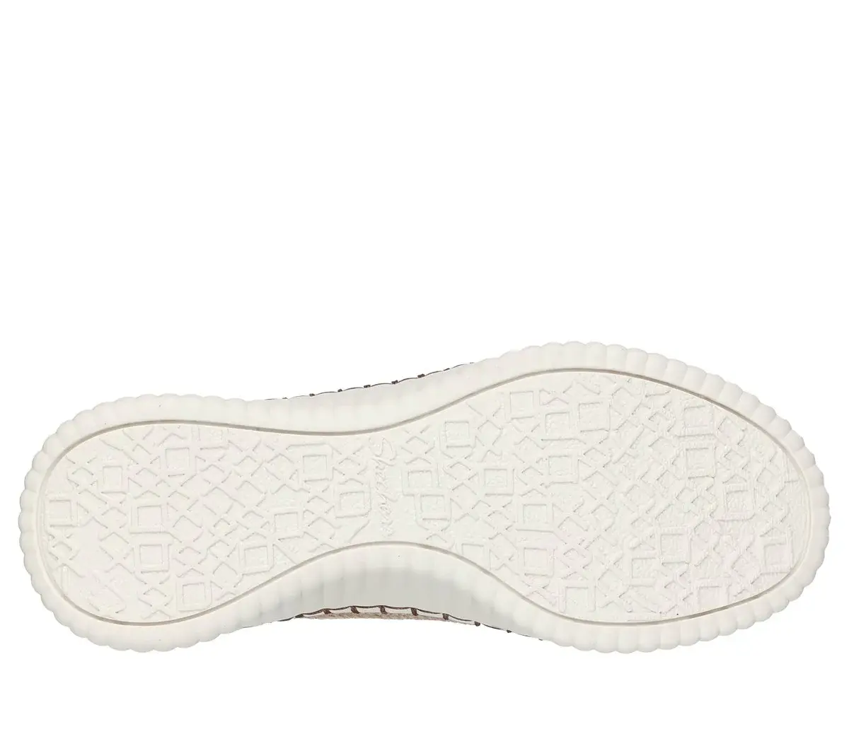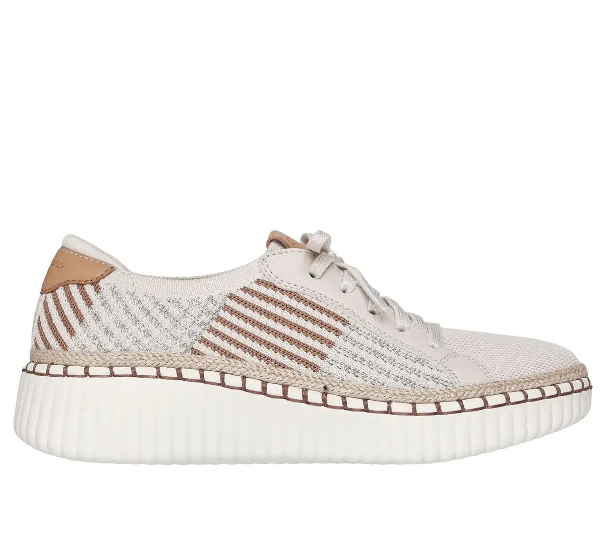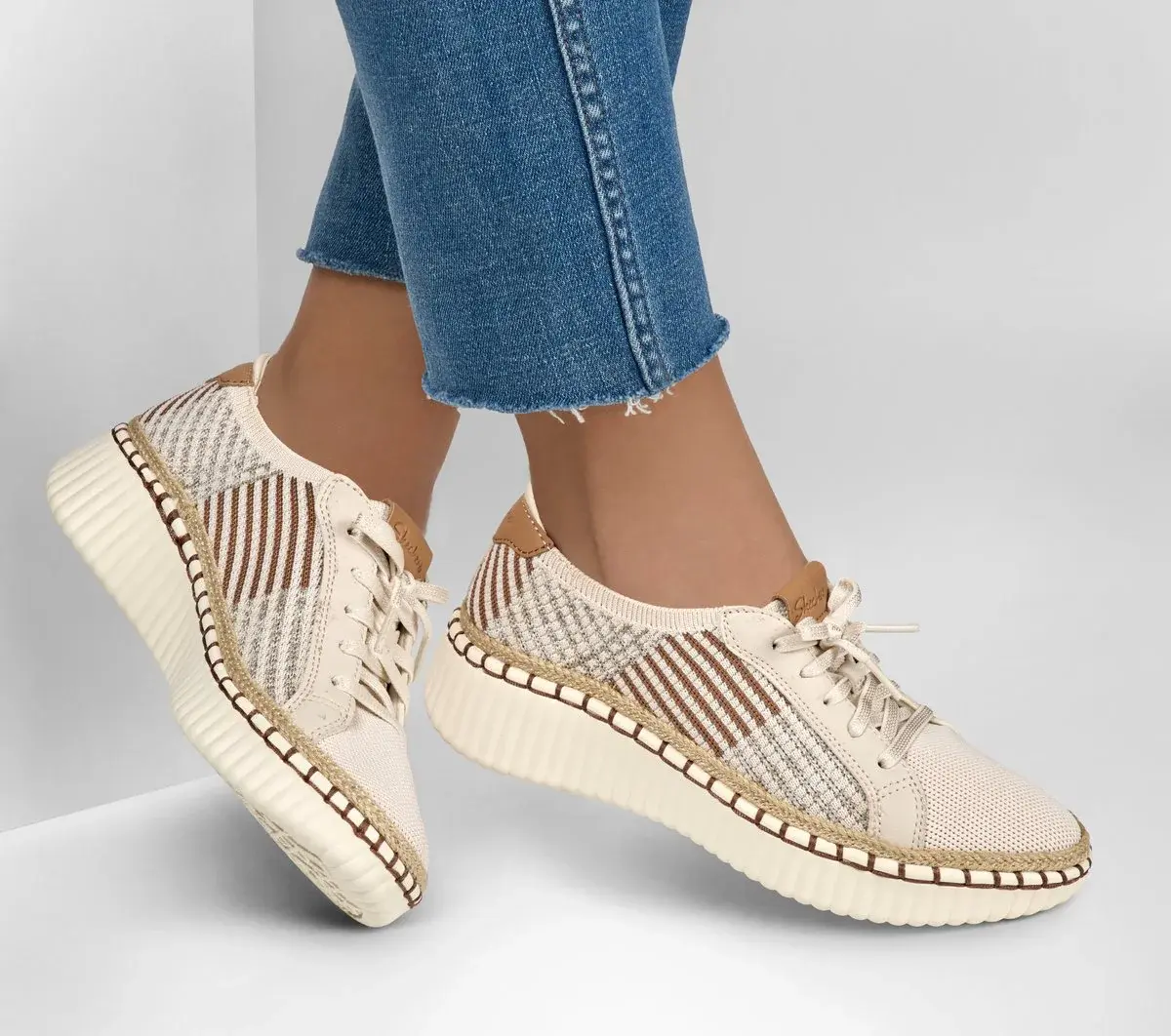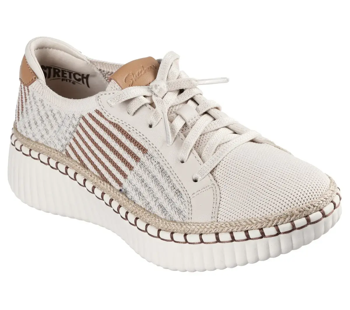Take a walk on the stylish side in easy-wearing comfort with Skechers Wilshire Blvd – Breezy Stroll. This vegan Skechers No Tie Fit® design features a knit and synthetic leather upper with faux laces, jute trim along the midsole, a Comfort Pillow at the heel, and a cushioned Skechers Air-Cooled Memory Foam® insole.