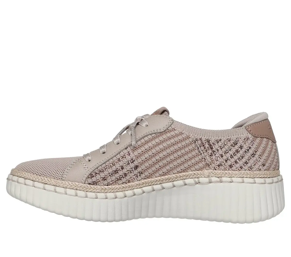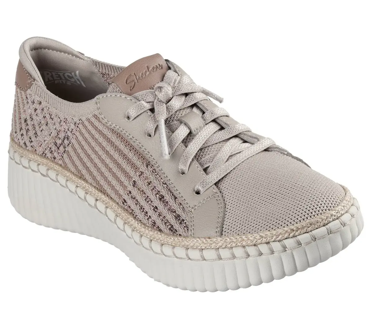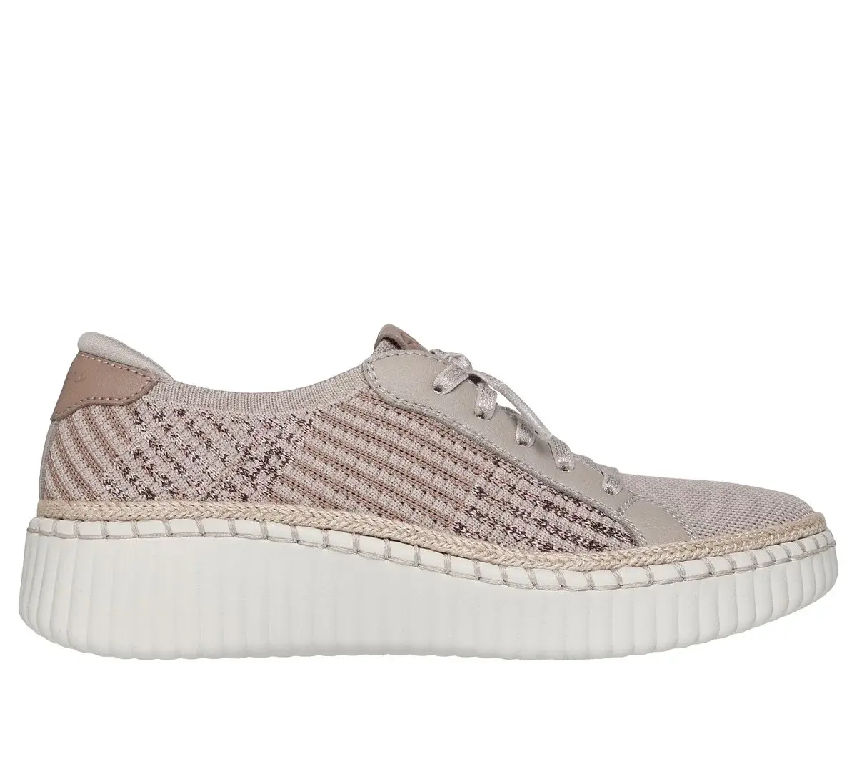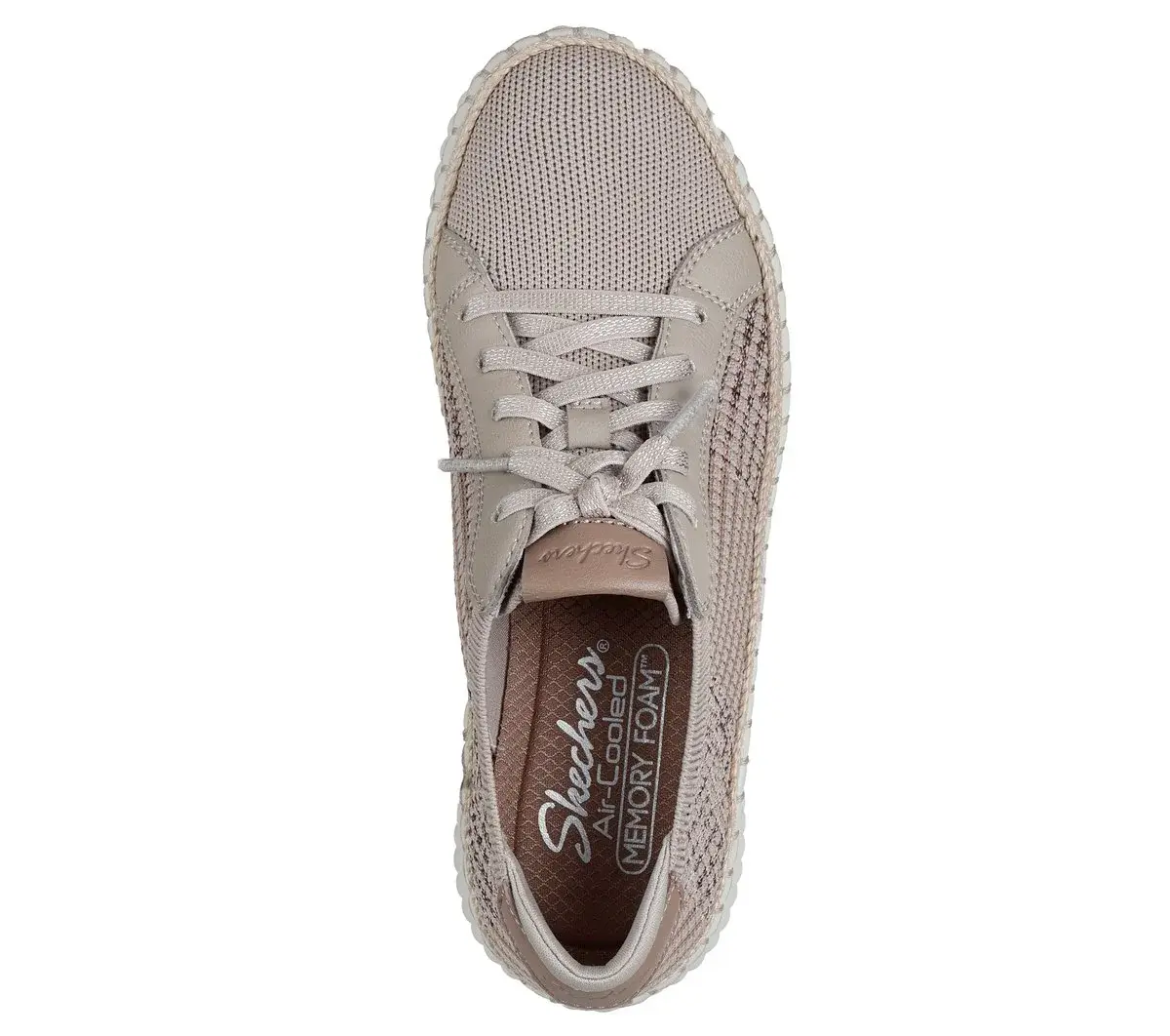 Take a walk on the stylish side in easy-wearing comfort with Skechers Wilshire Blvd – Breezy Stroll. This vegan Skechers No Tie Fit® design features a knit and synthetic leather upper with faux laces, jute trim along the midsole, a Comfort Pillow at the heel, and a cushioned Skechers Air-Cooled Memory Foam® insole.