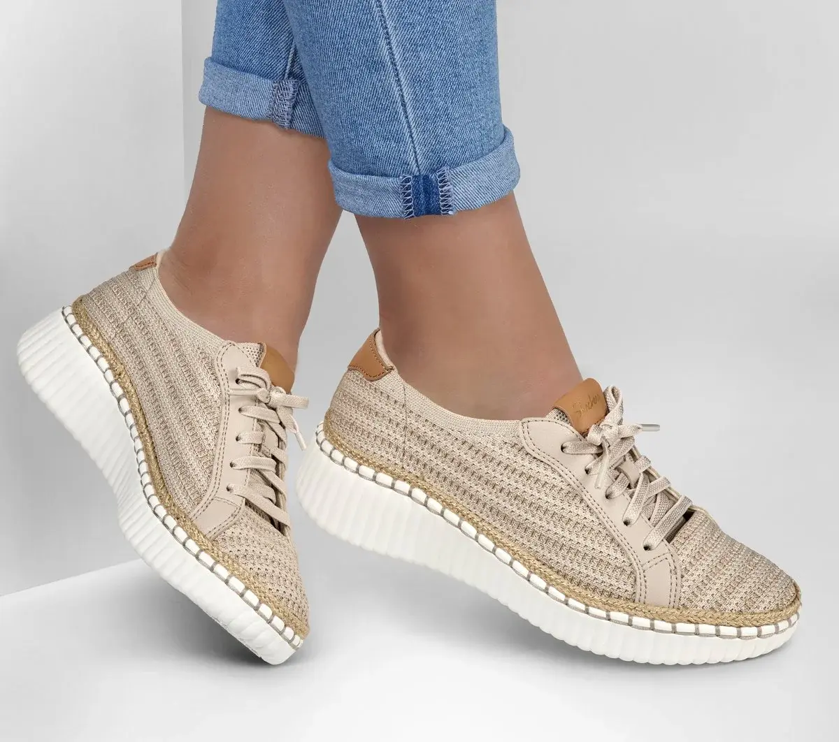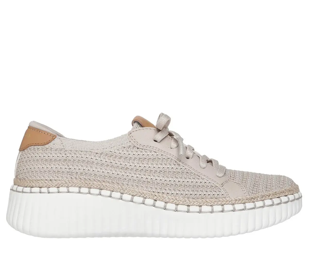 Take a walk on the stylish side in machine-washable comfort with Skechers Wilshire Blvd – Passion Play. This vegan Skechers No Tie Fit® design features a sweater knit upper with faux laces, jute midsole trim, a Comfort Pillow at the heel, and a cushioned Skechers Air-Cooled Memory Foam® insole.