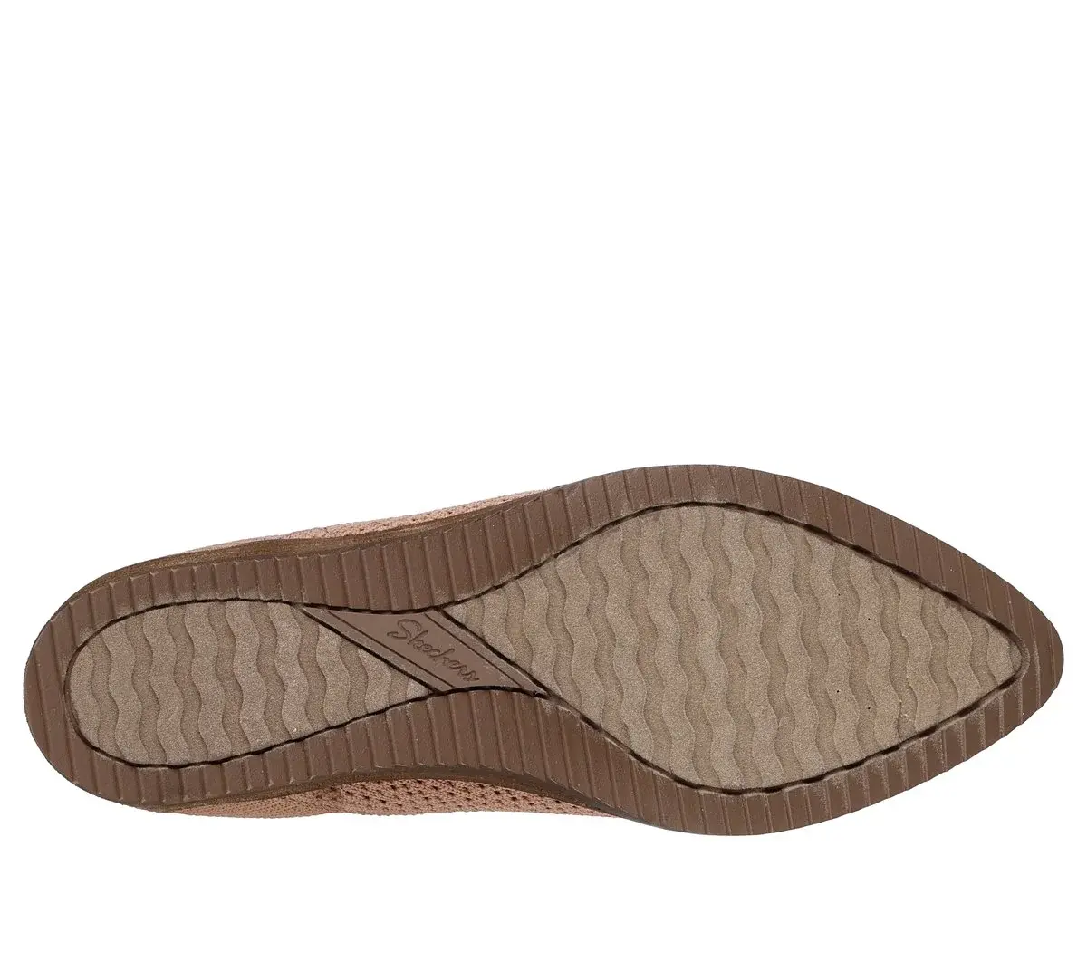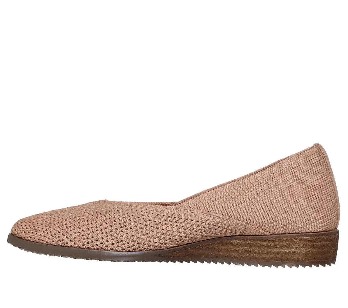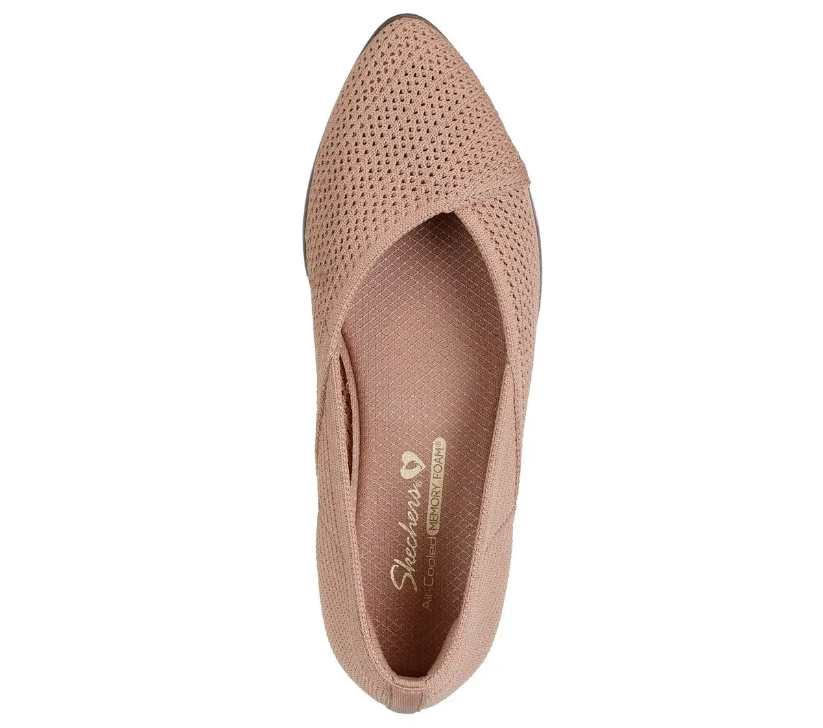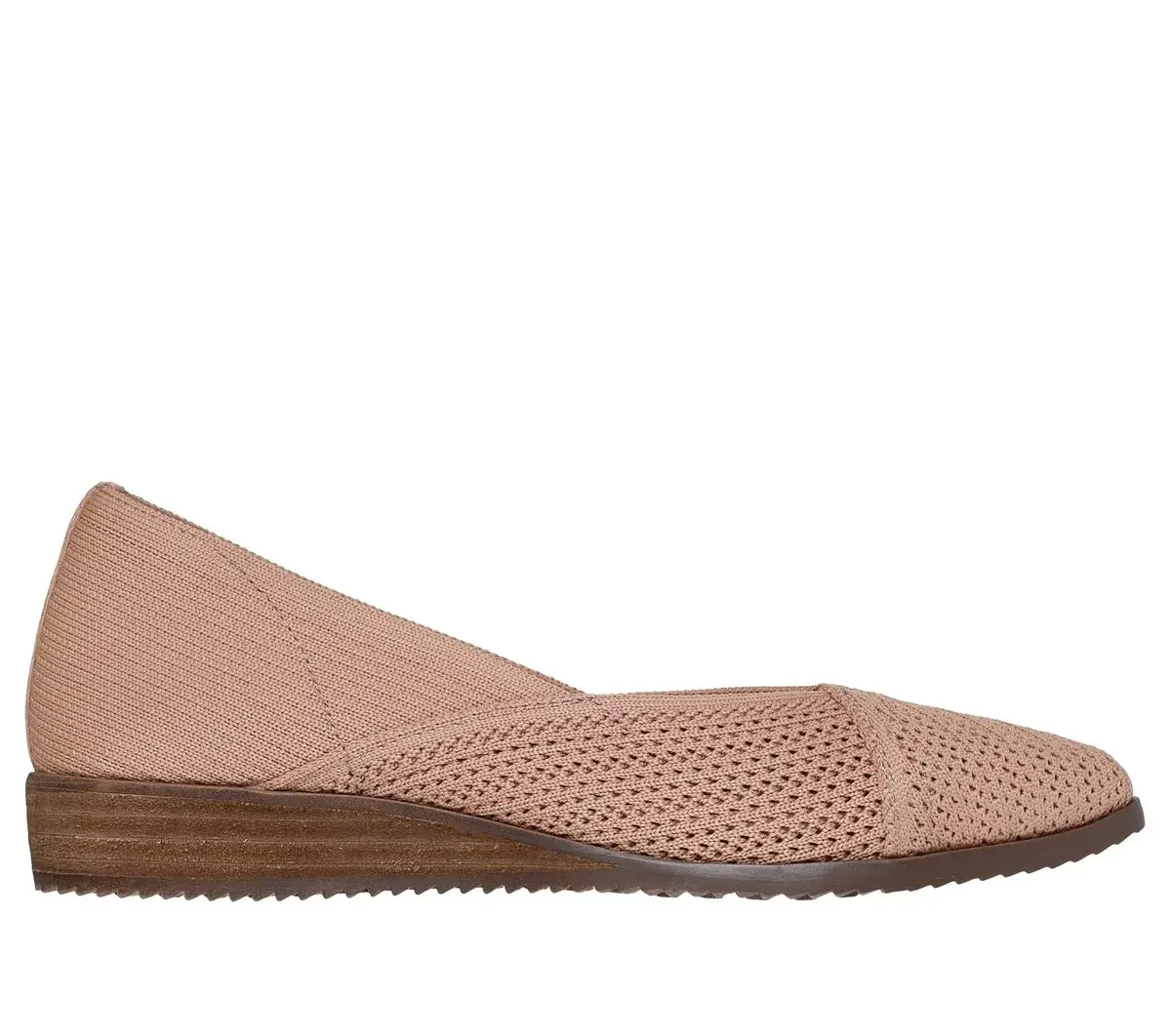 Versatile style mixes with stretchable comfort in Skechers Cleo® Sawdust – Sweet Sensation. Designed with recycled materials, this Stretch Fit® features a sparkled open knit upper with a cushioned Skechers Air-Cooled Memory Foam® insole and a low wedge heel. Our Planet Matters®: Good for your feet. Good for the world.®